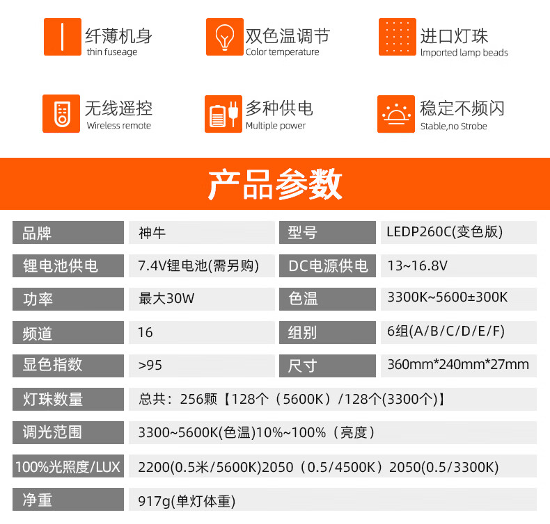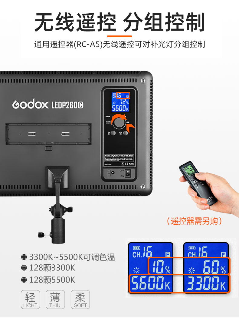 Godox LEDP260C fill light clothing live broadcast fill light anchor live photo video photography light soft light studio news fill light adjustable color temperature