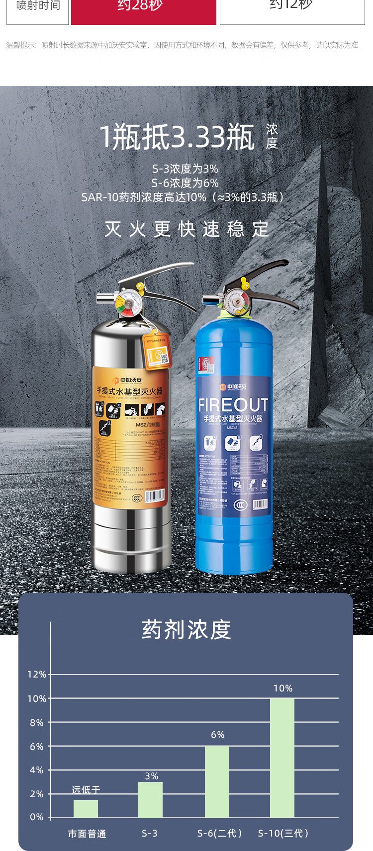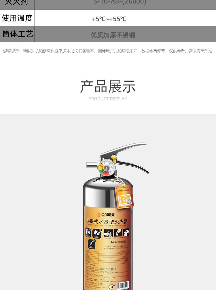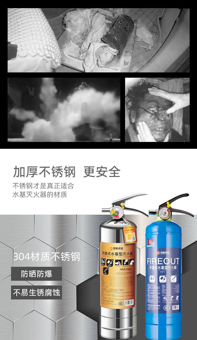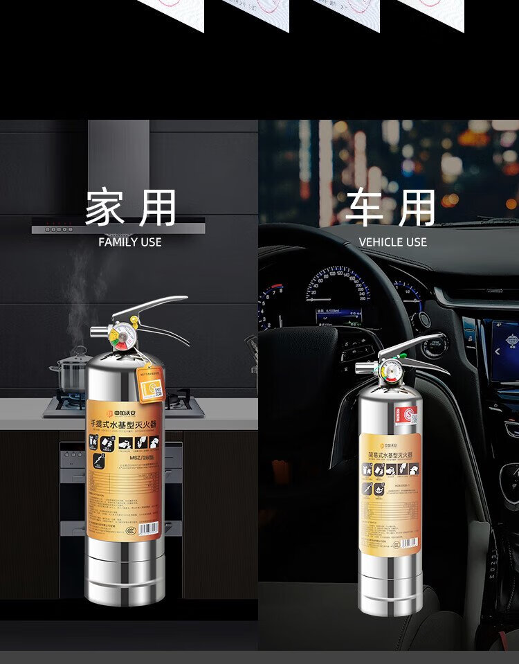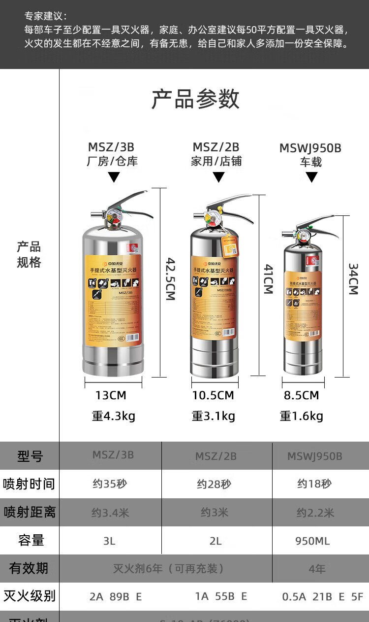 Zhongjia Woan vehicle-mounted water-based fire extinguisher stainless steel portable fire extinguishing bottle private car annual inspection fire-fighting 950ml water-based vehicle-mounted fire extinguisher 4 years 1
