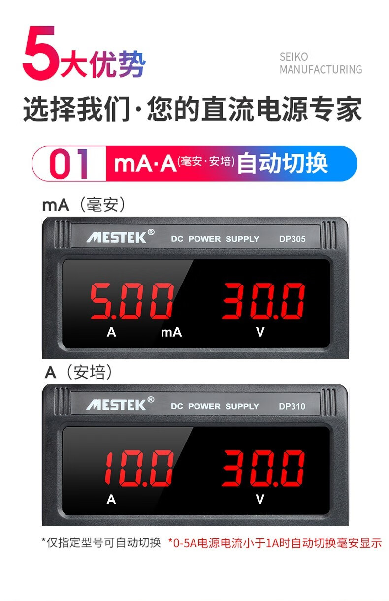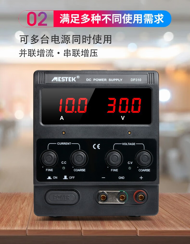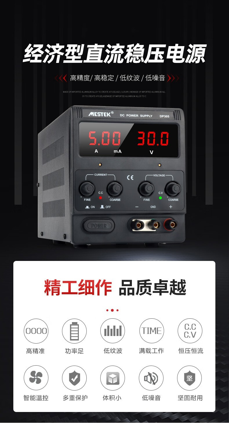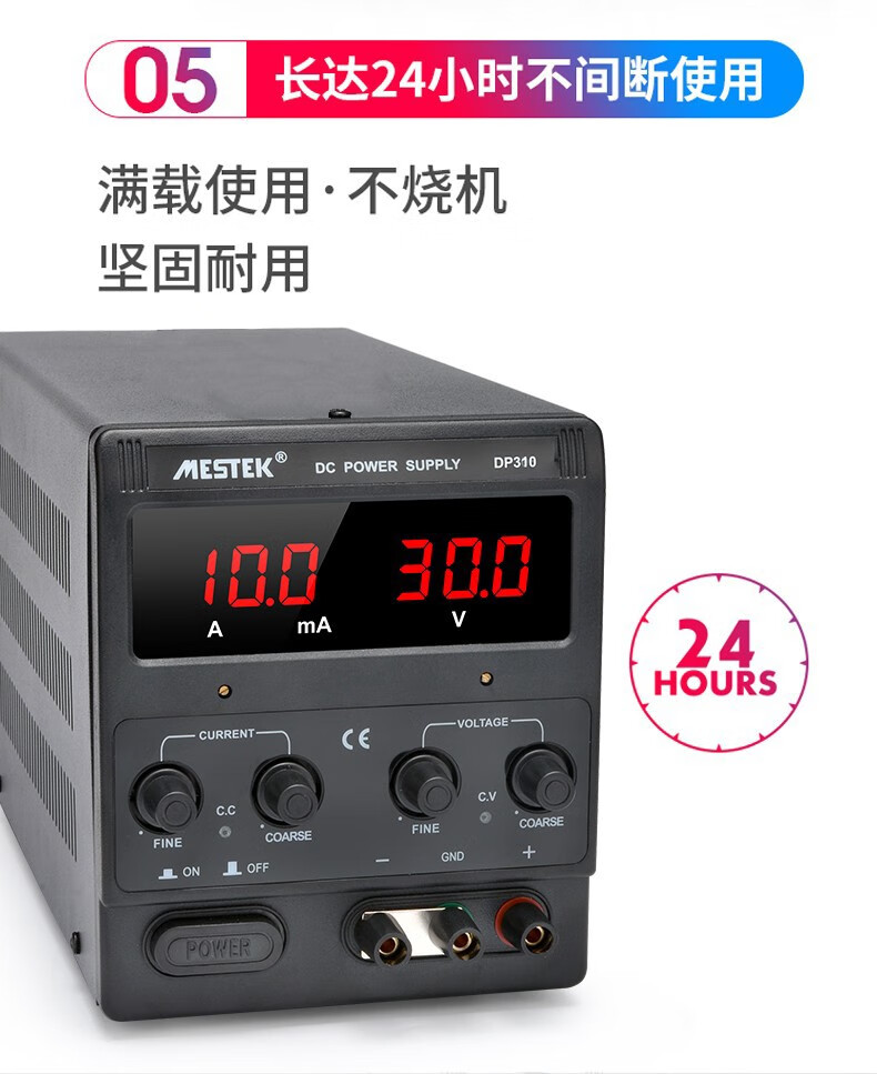 MESTEK High-precision adjustable DC power supply 30V12V5A regulated constant current mobile phone repair DC regulator DP310 (30V10A) 3-digit display