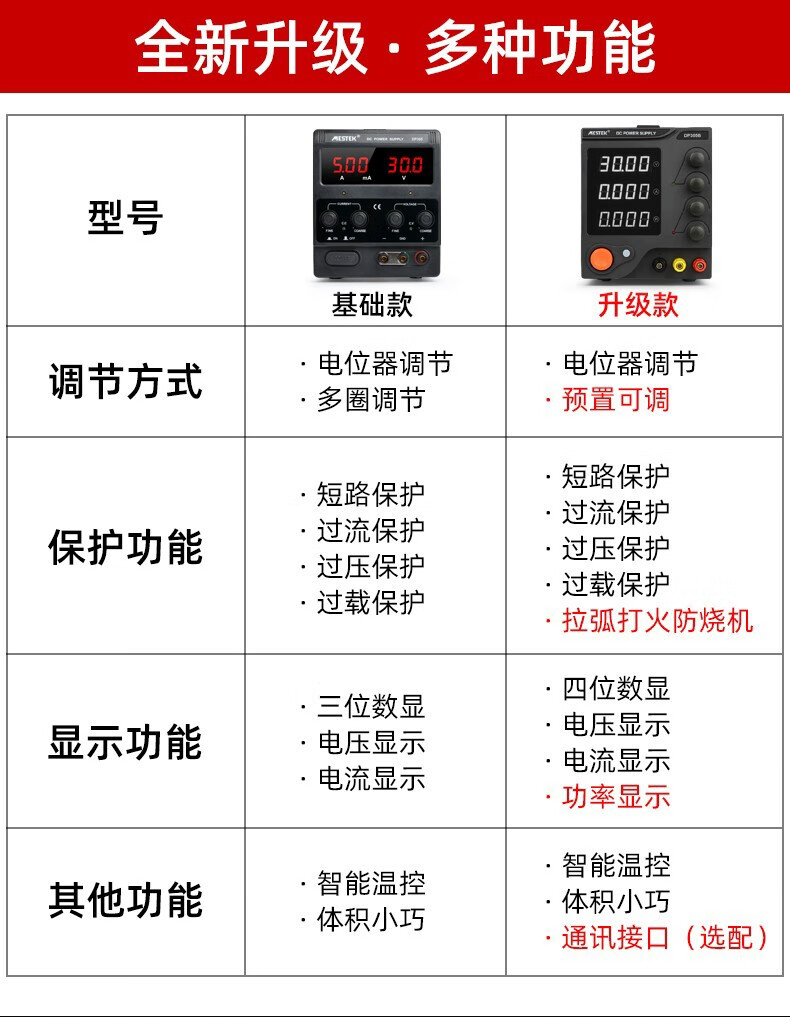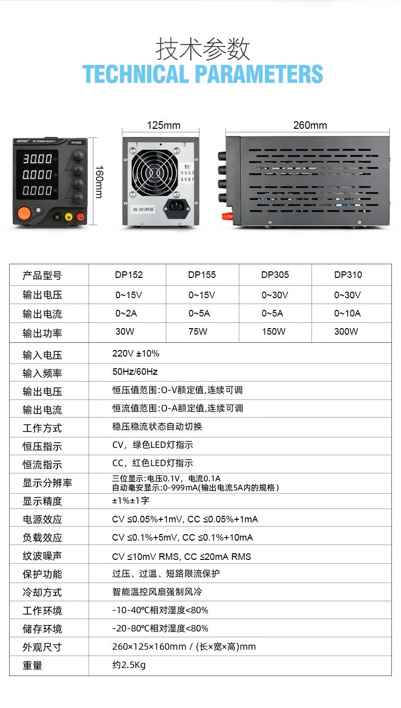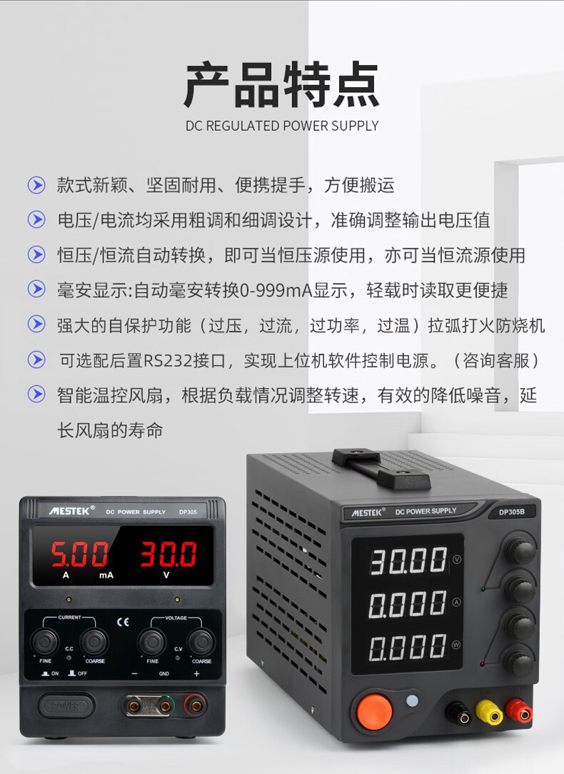 MESTEK High-precision adjustable DC power supply 30V12V5A regulated constant current mobile phone repair DC regulator DP310 (30V10A) 3-digit display