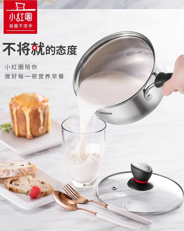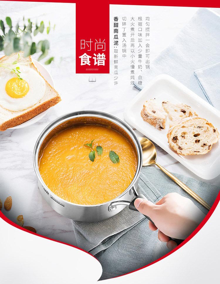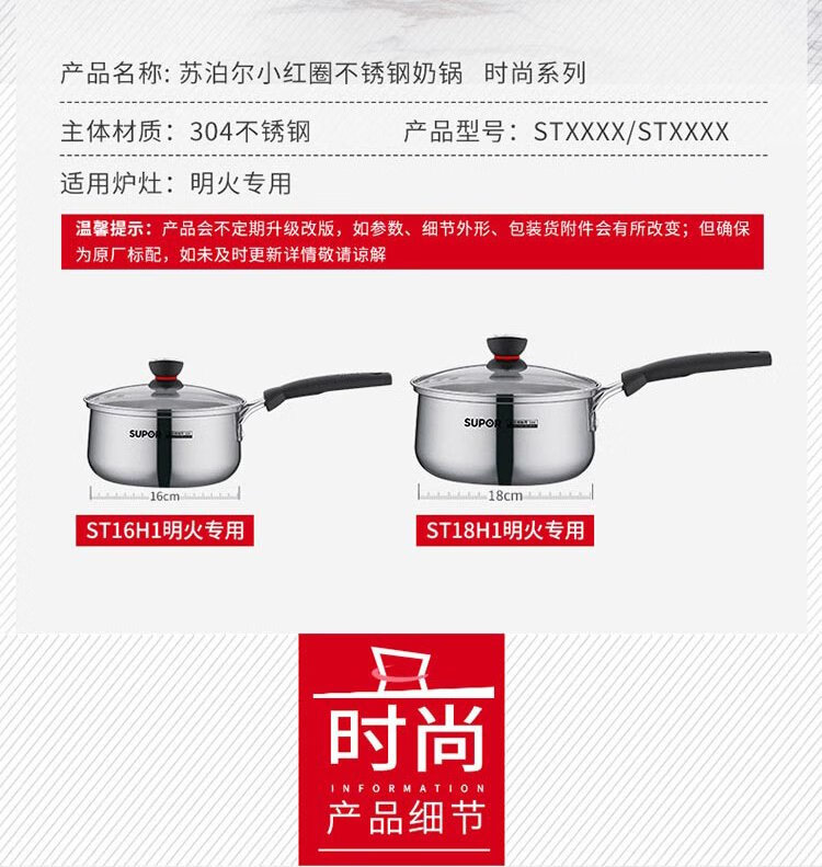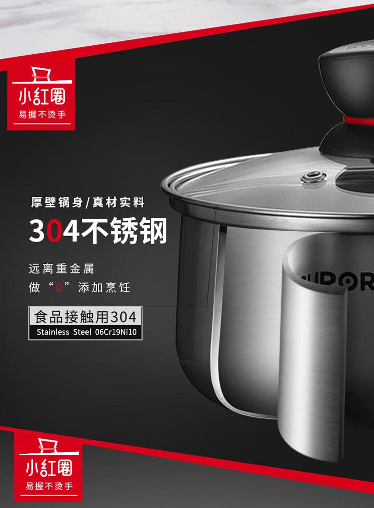 SUPOR small red circle 304 stainless steel soup pot milk pot noodle pot 18cm open flame special ST18H1