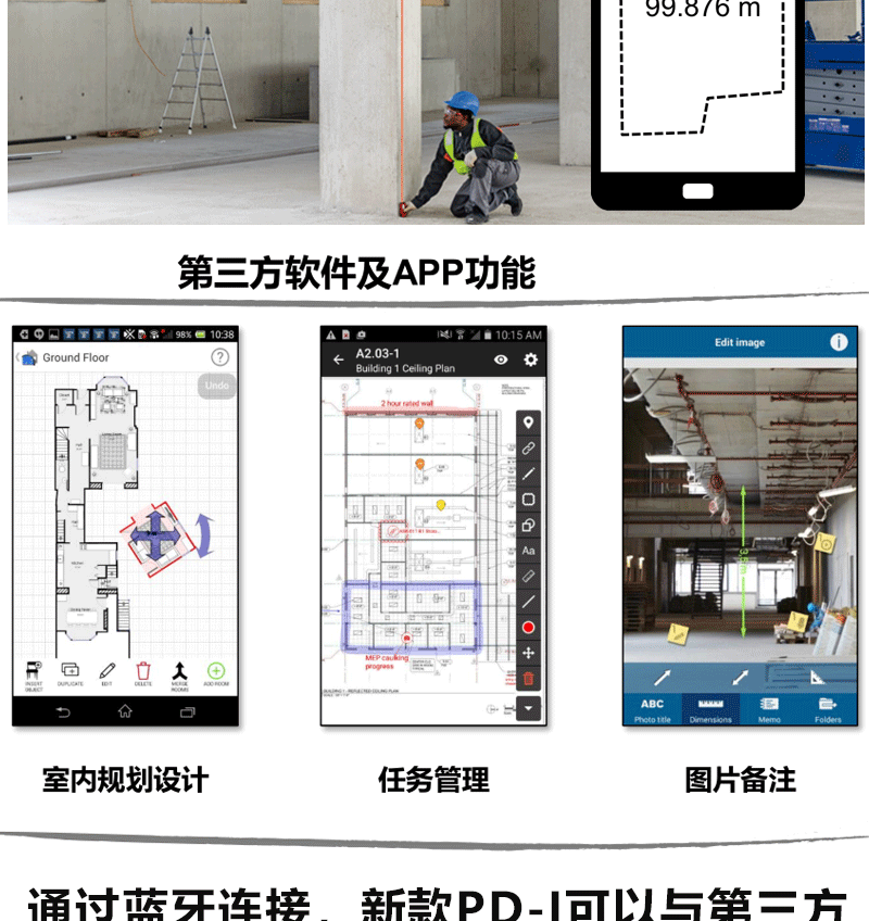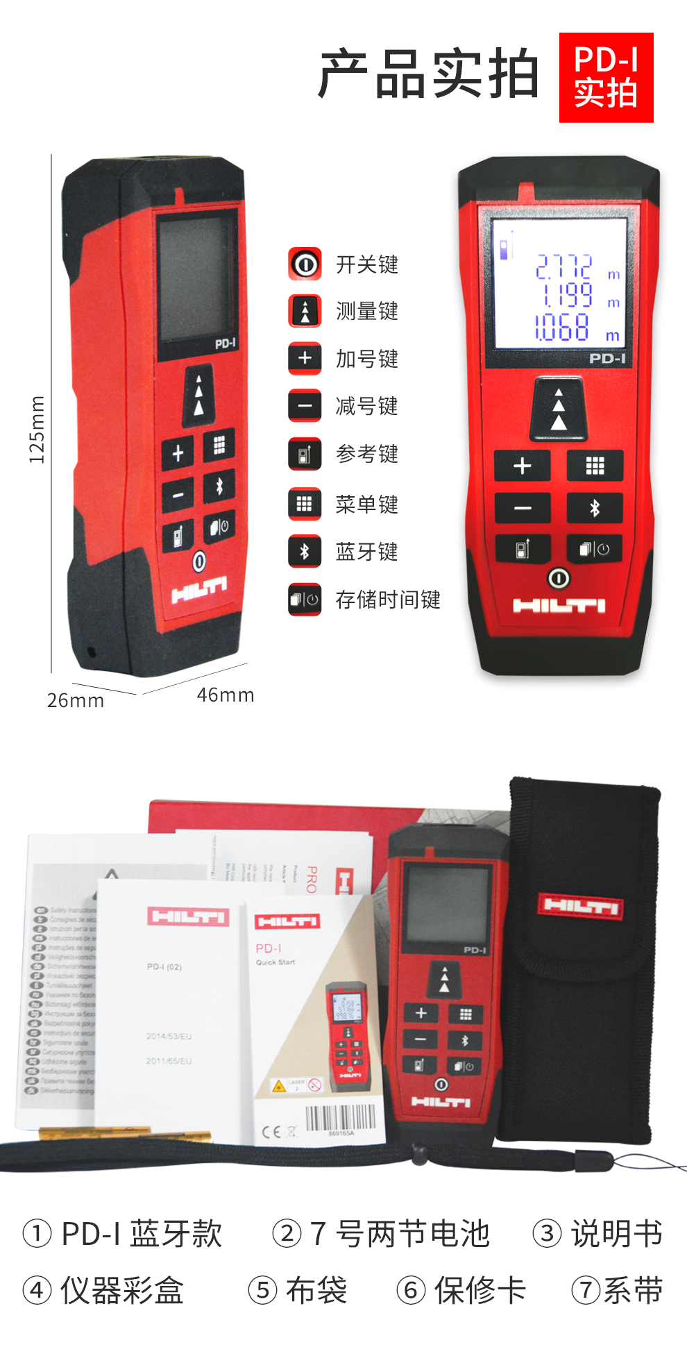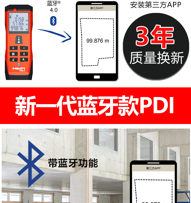Hilti distance meter laser with Bluetooth high-precision measuring room outdoor handheld Hilti 100 meters PDI indoor 100 meters electric Bluetooth model Hilti PDI (100 meters)