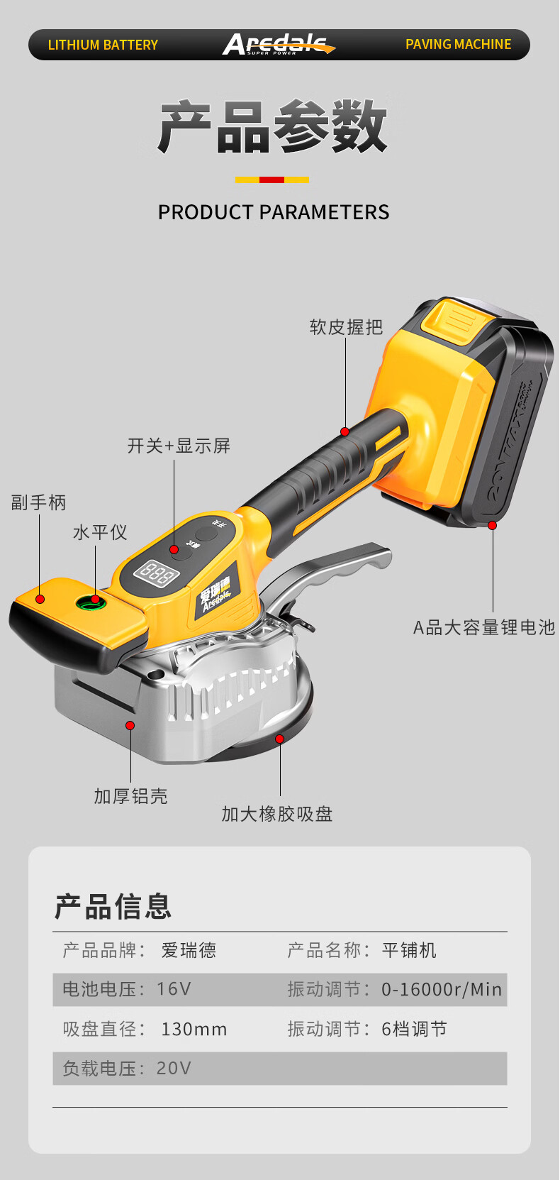 Aided lithium battery tile tiling machine tiling machine floor tile tiling tool vibration tiling artifact power tool 16V Xingyao style tiling machine (two batteries and one charge)