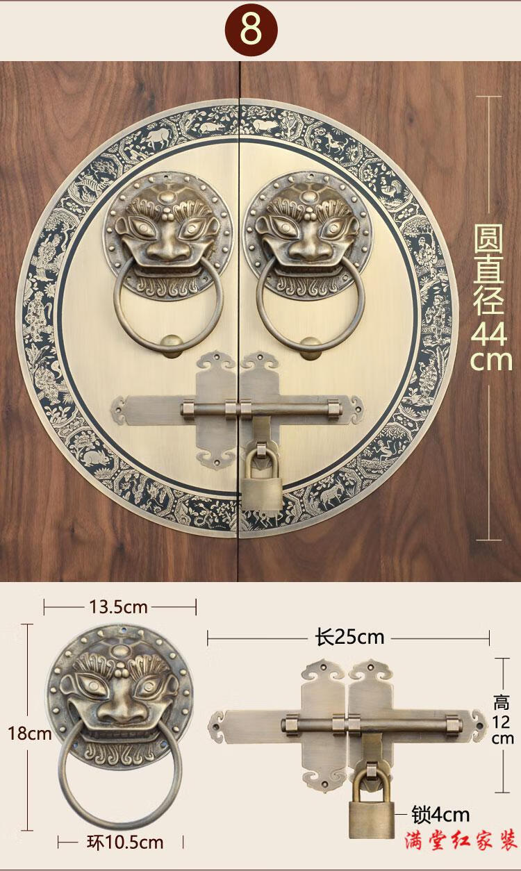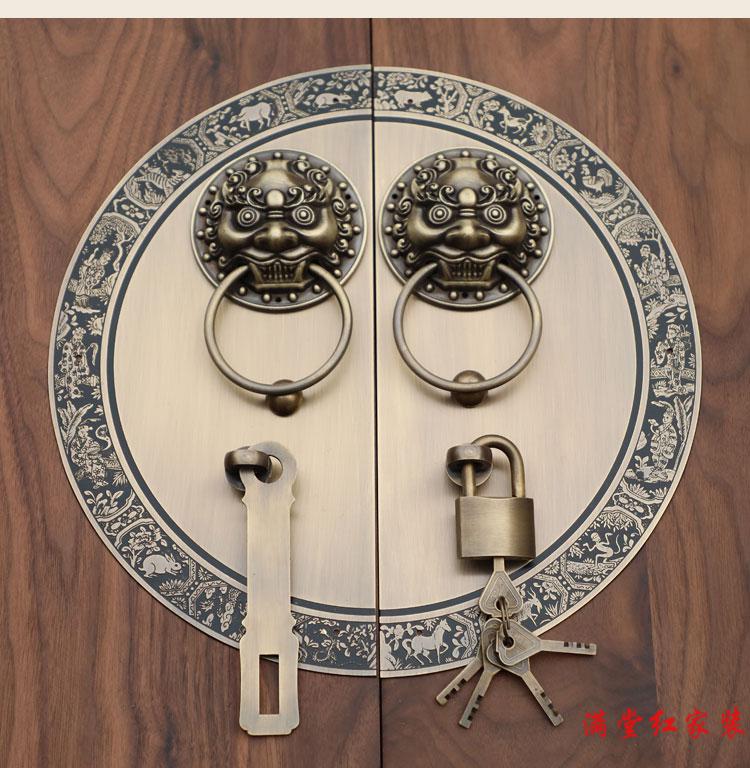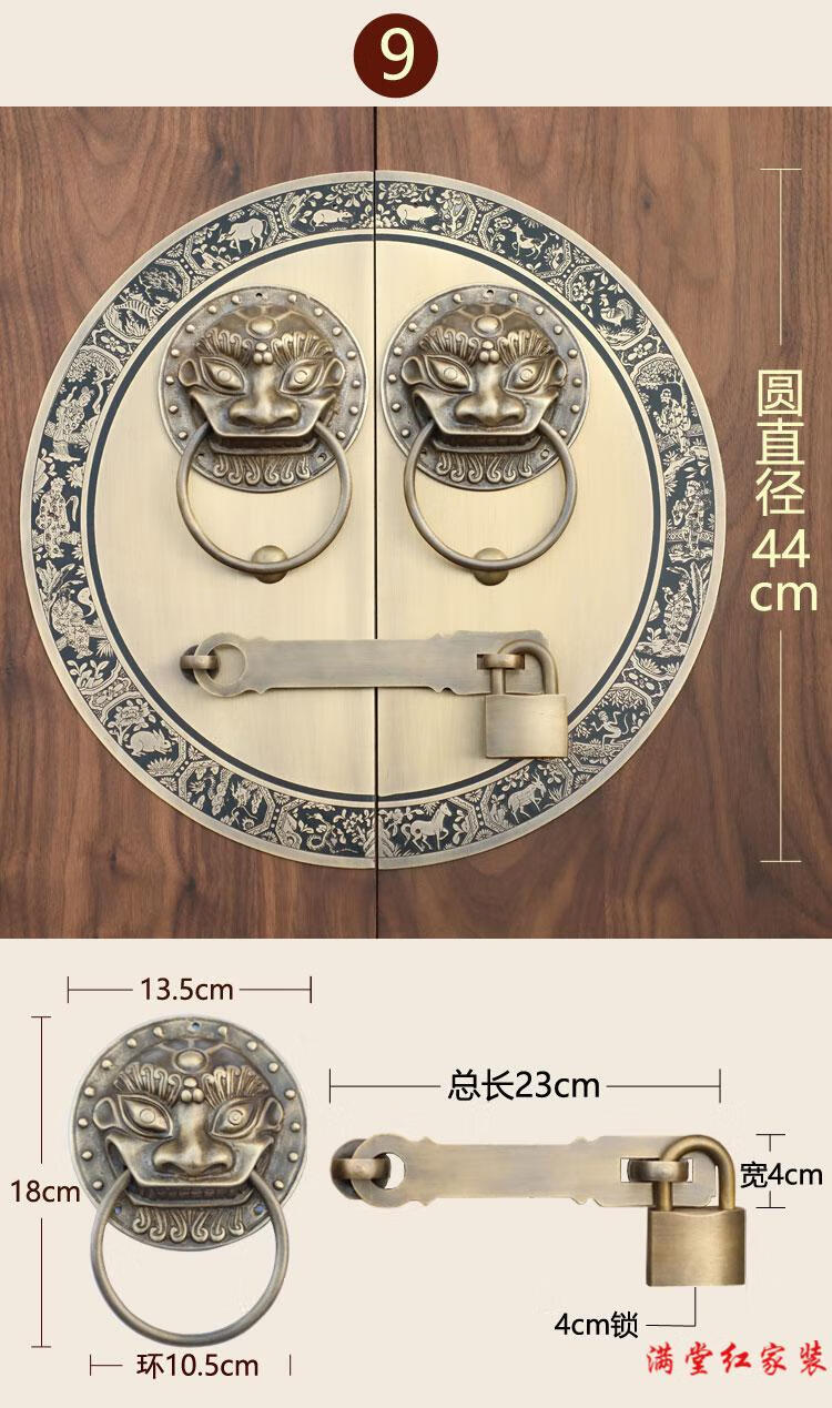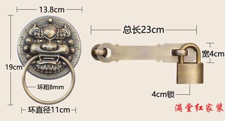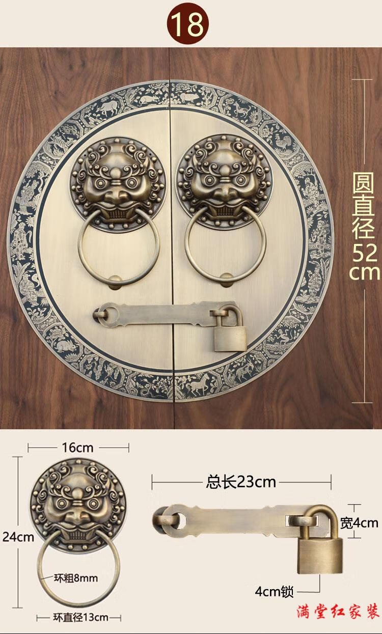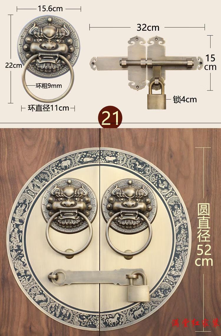Jingsuo antique door lock handle hand-style copper door knocker villa courtyard wooden door bolt latch handle 44cmA style-2