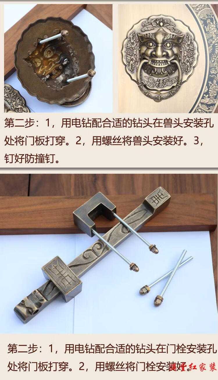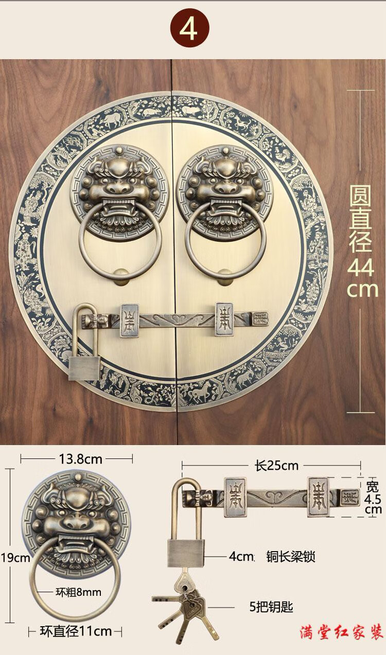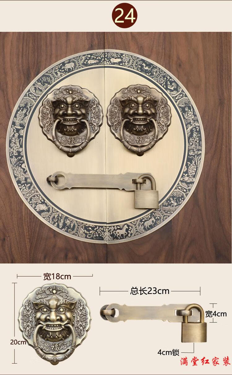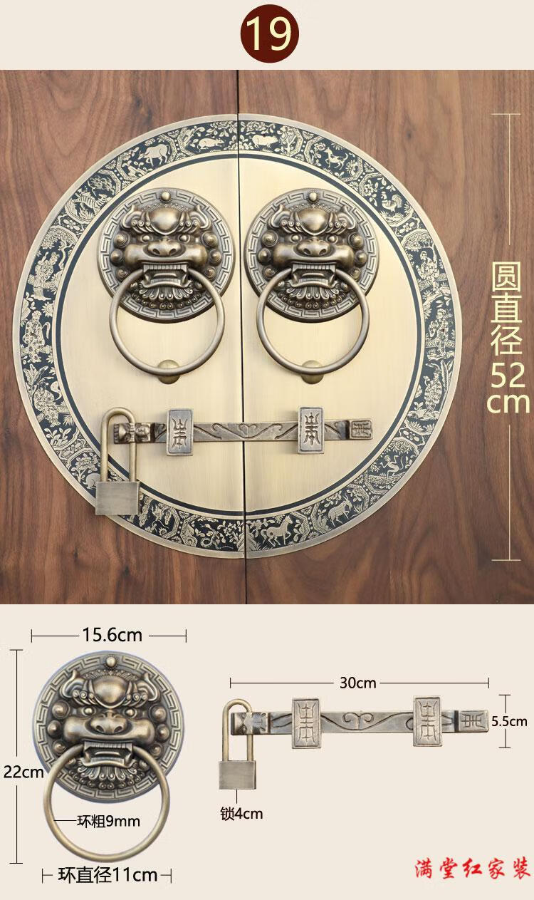 Jingsuo antique door lock handle hand-style copper door knocker villa courtyard wooden door bolt latch handle 44cmA style-2