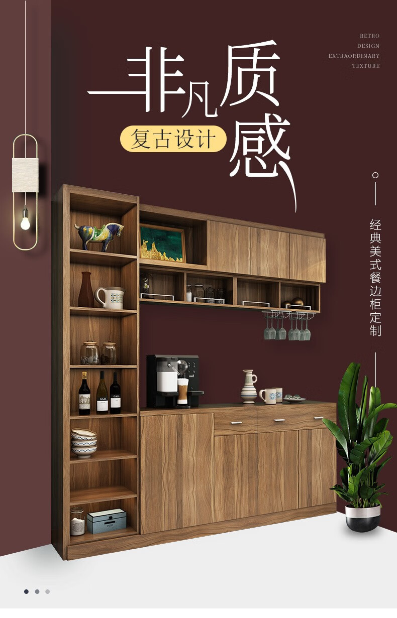 Sophia retro sideboard wine cabinet wall-mounted multi-functional storage economical entryway shoe cabinet American wooden red wine cabinet custom gold