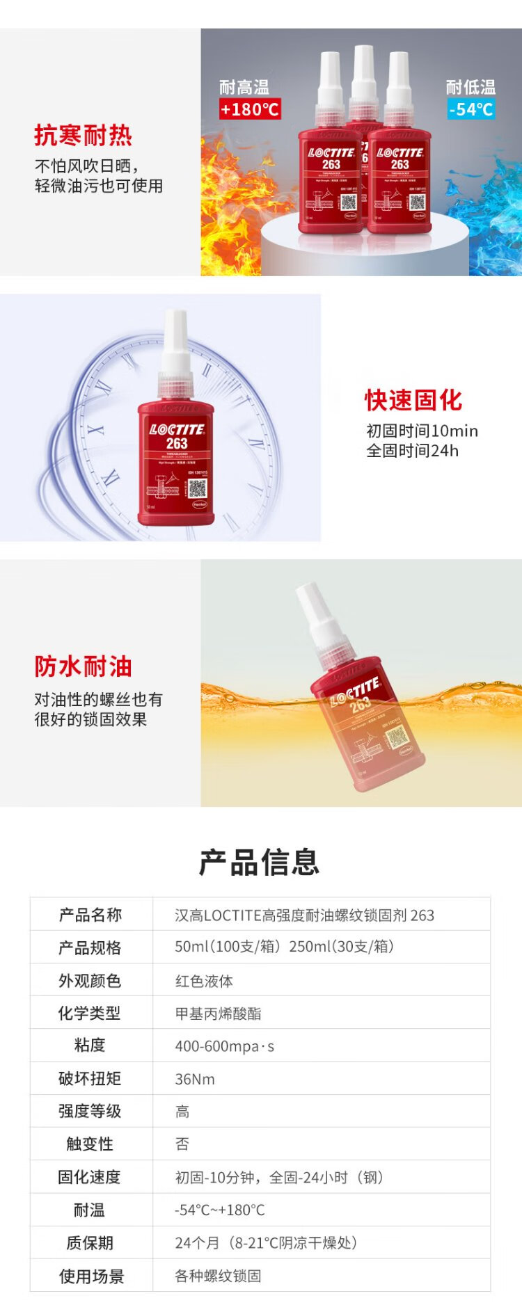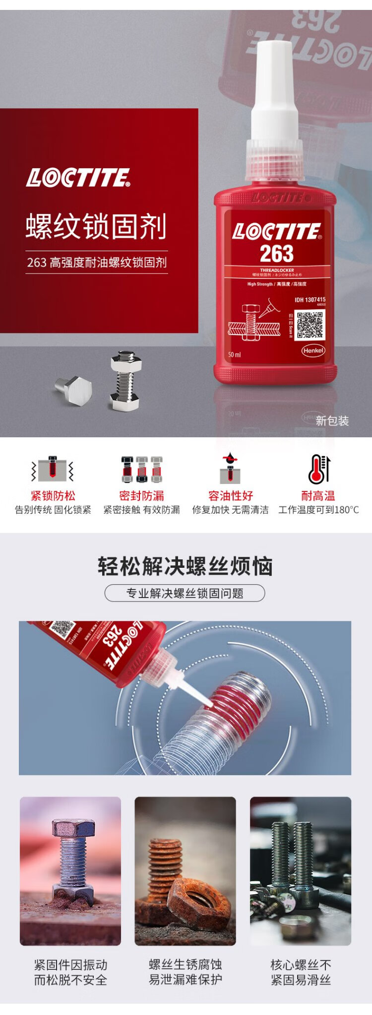 Loctite/loctite 263 screw glue thread locking agent high strength and high temperature resistant sealing one-component anaerobic super glue red 50ml/1 piece