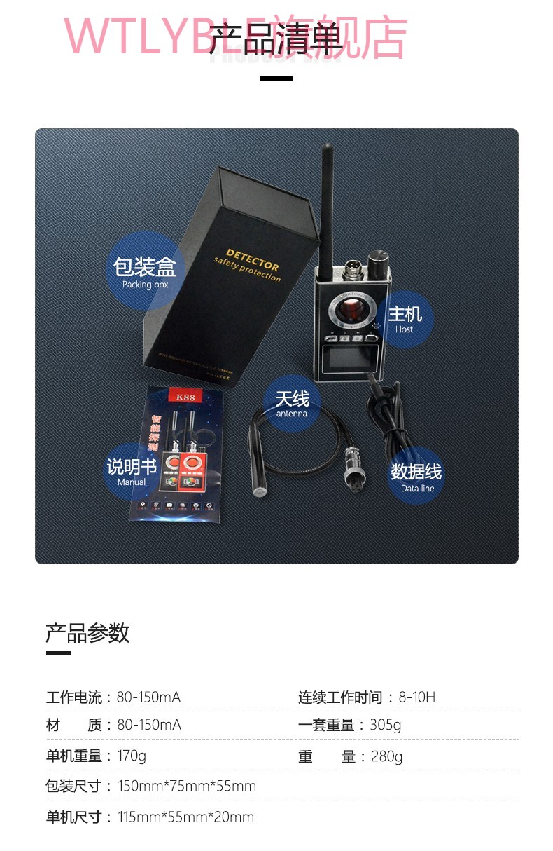 Midian GPS detector hotel anti-theft camera detector anti-positioning anti-theft anti-monitoring detector K88