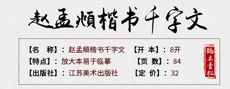 Zhao Mengfu's Thousand-Character Regular Script, 8-format, high-definition enlarged version of the full text in rice format, selected calligraphy treasures from past dynasties, Zhao Ti Xing Kai calligraphy beginners' introductory brush practice calligraphy book, Jiangsu Phoenix Art Publishing House