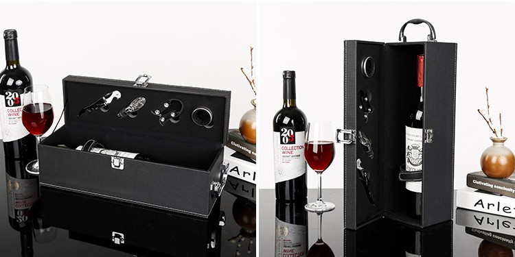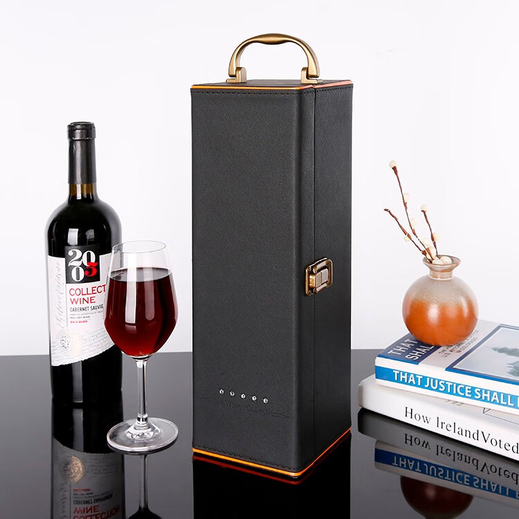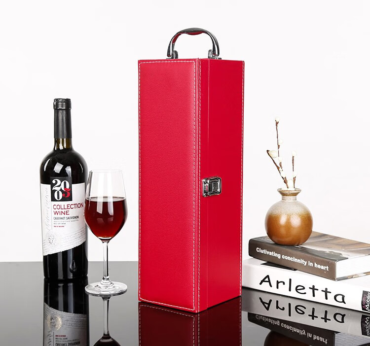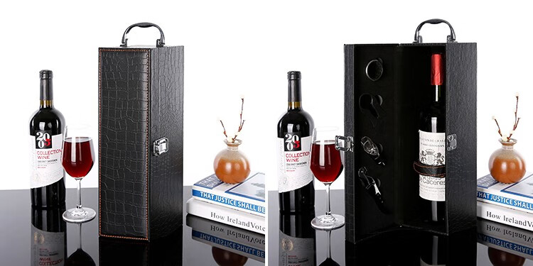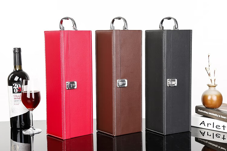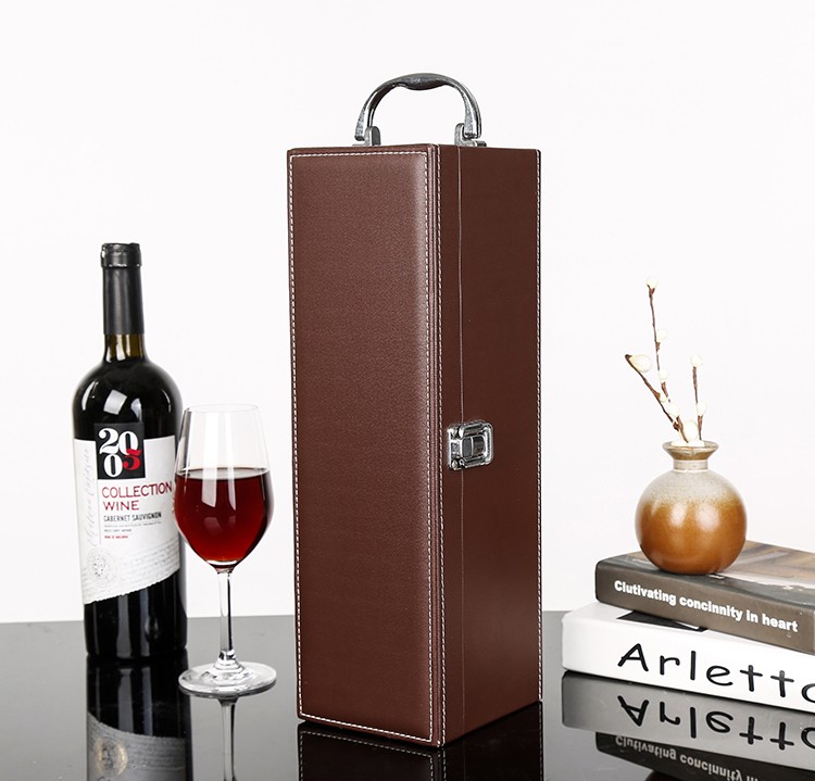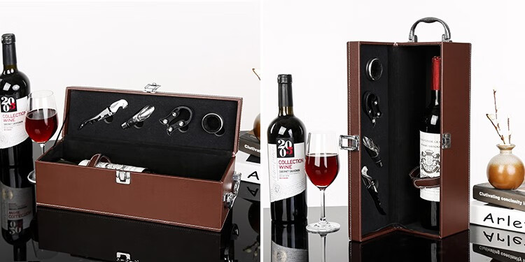 Chuangweiyue red wine leather box packaging box empty box wine gift box wine set high-end red wine leather case portable wine box gift box brown single leather box with wine set