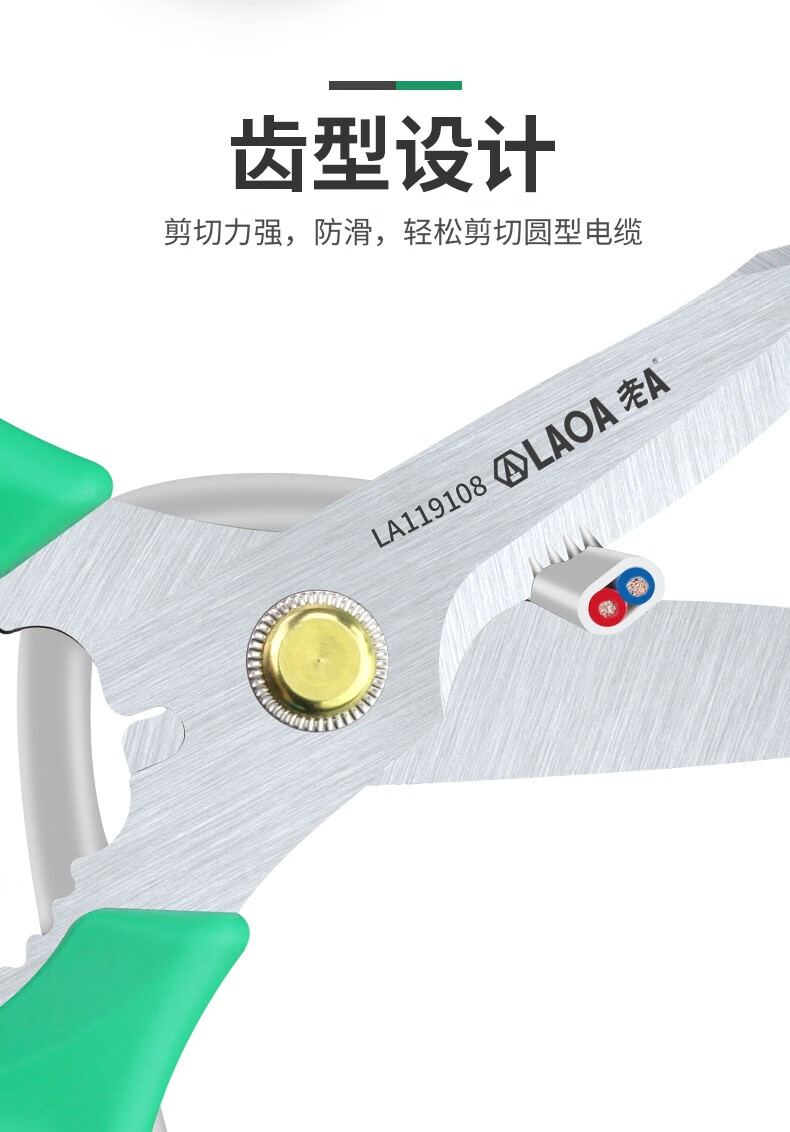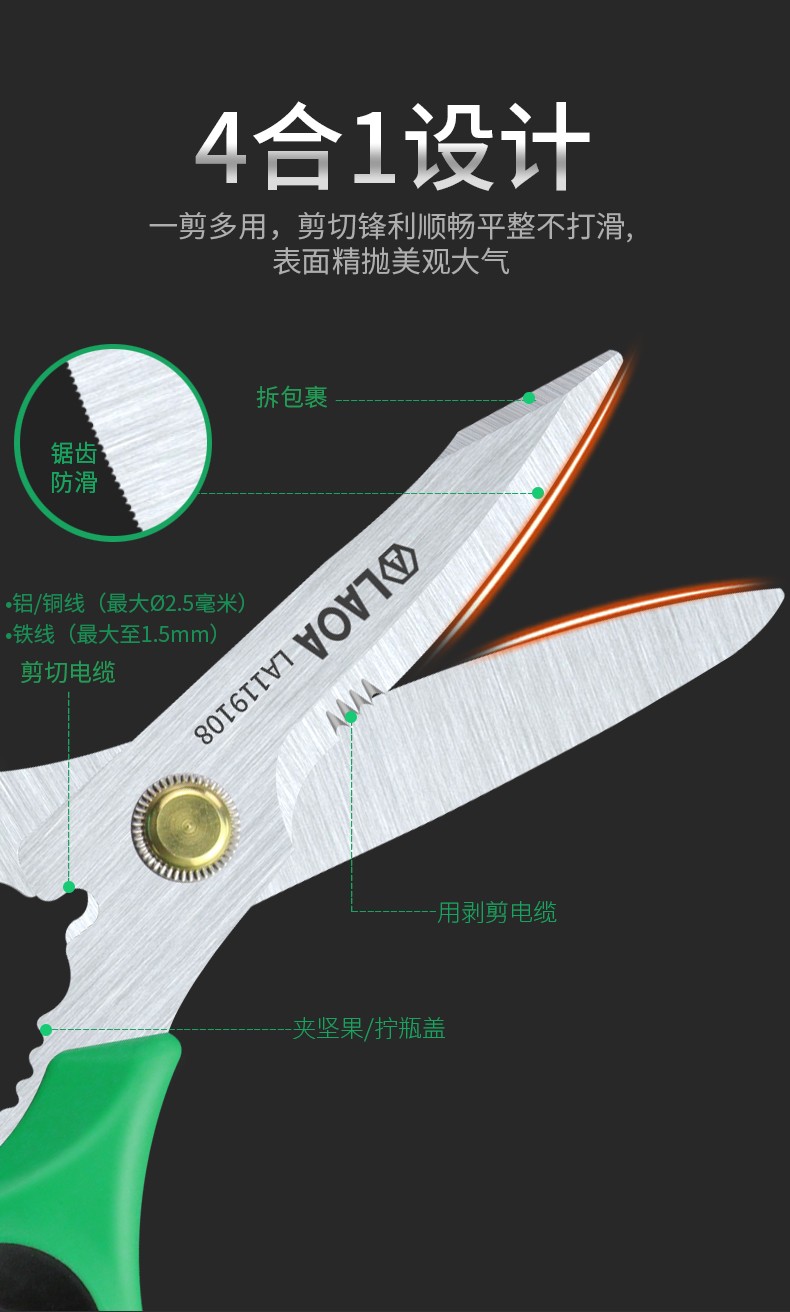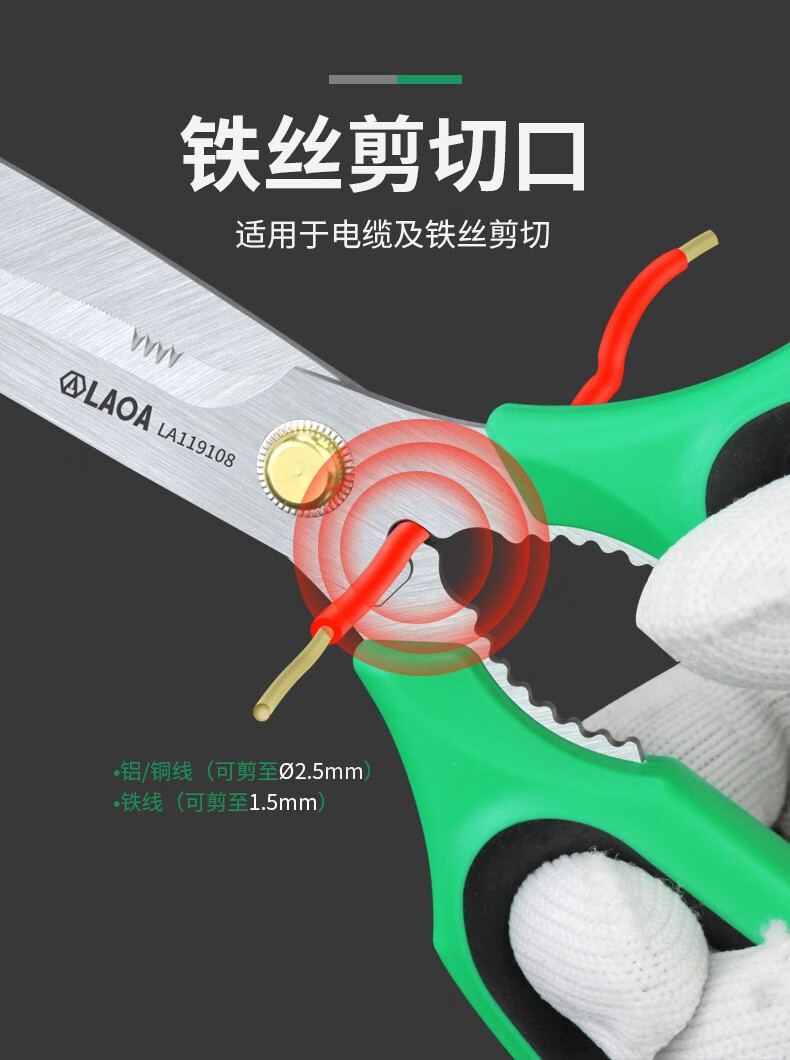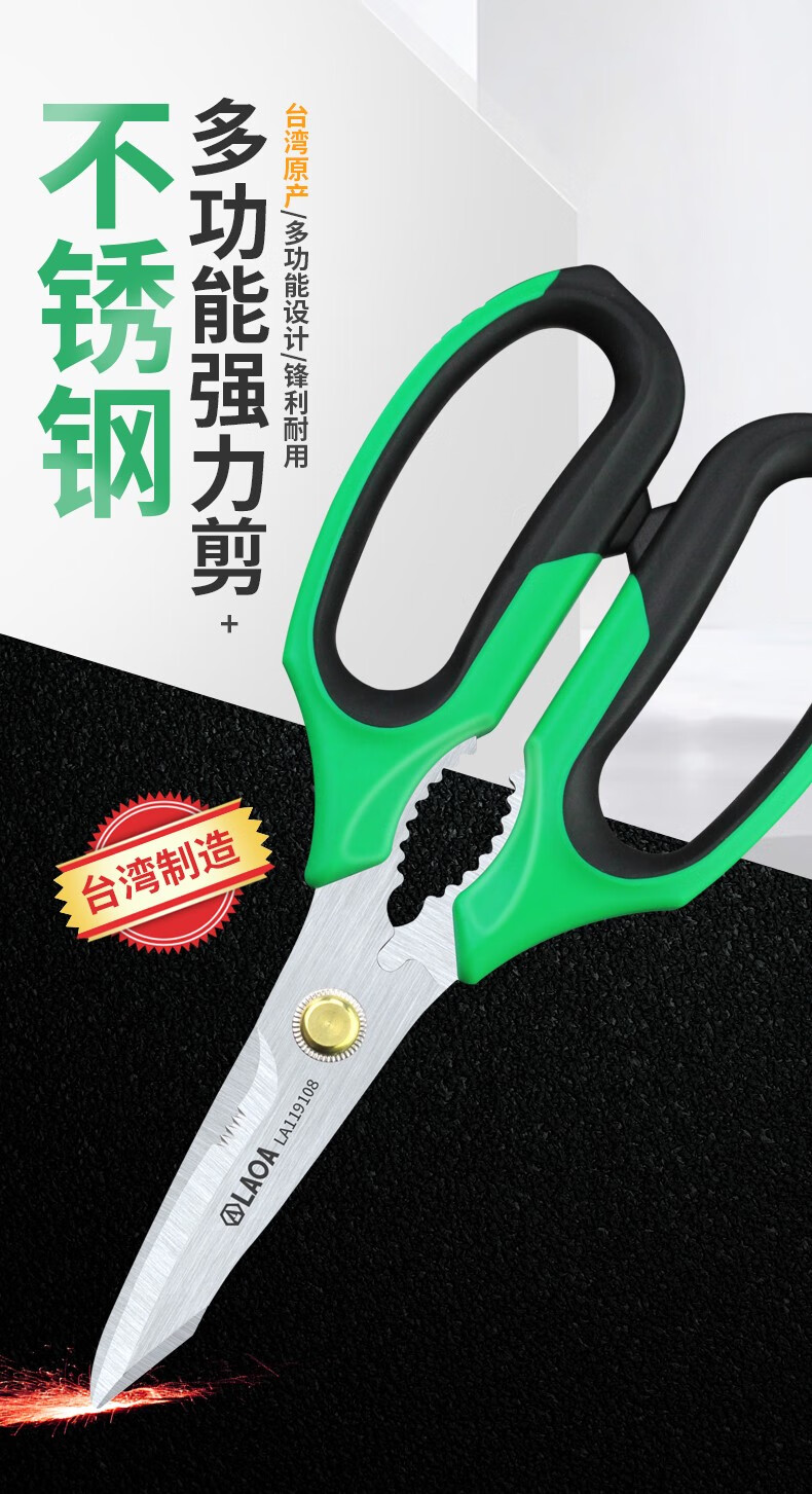 LAOA multifunctional stainless steel electrician's wire trimmer made in Taiwan, office and home kitchen pruning and tailoring scissors LA119108 multifunctional powerful scissors LA119108