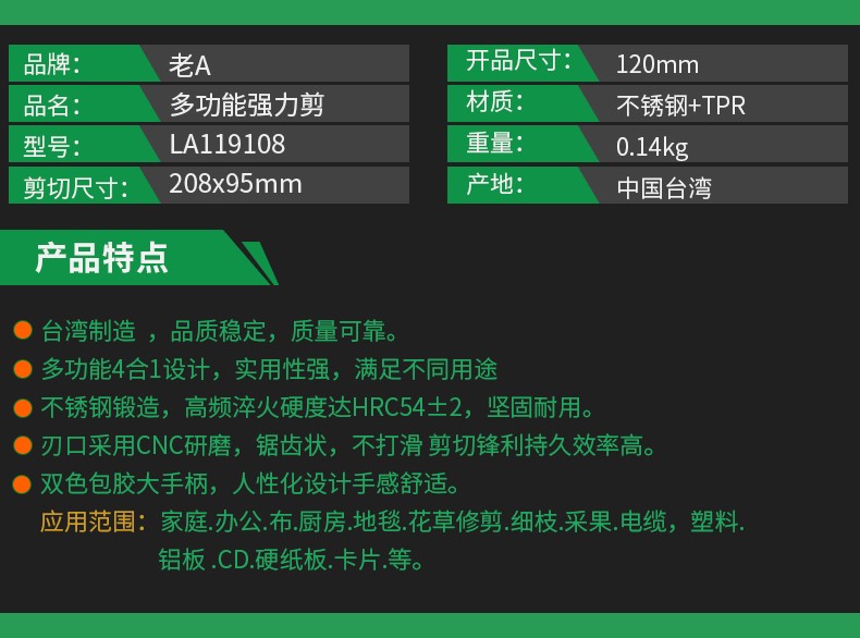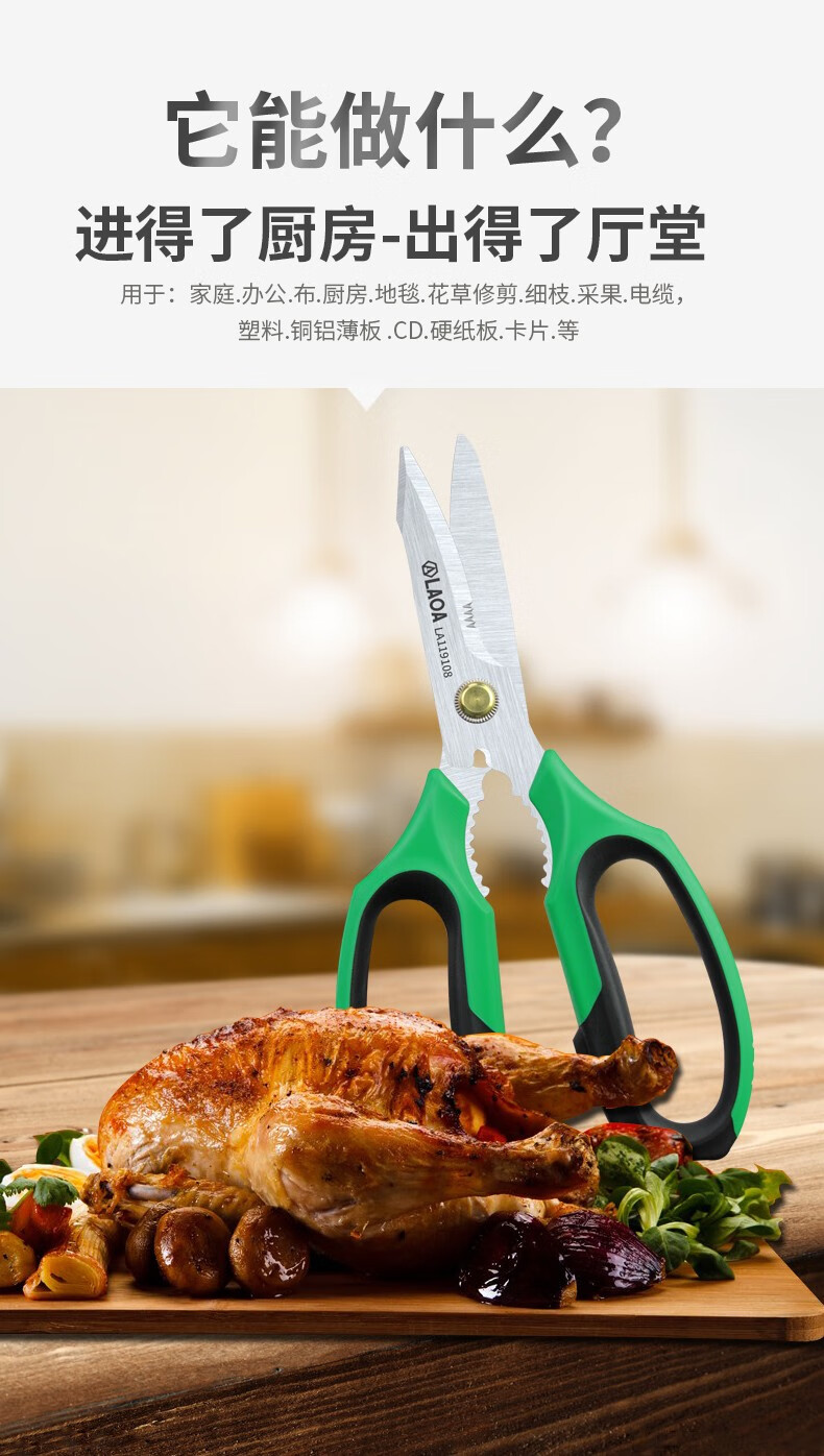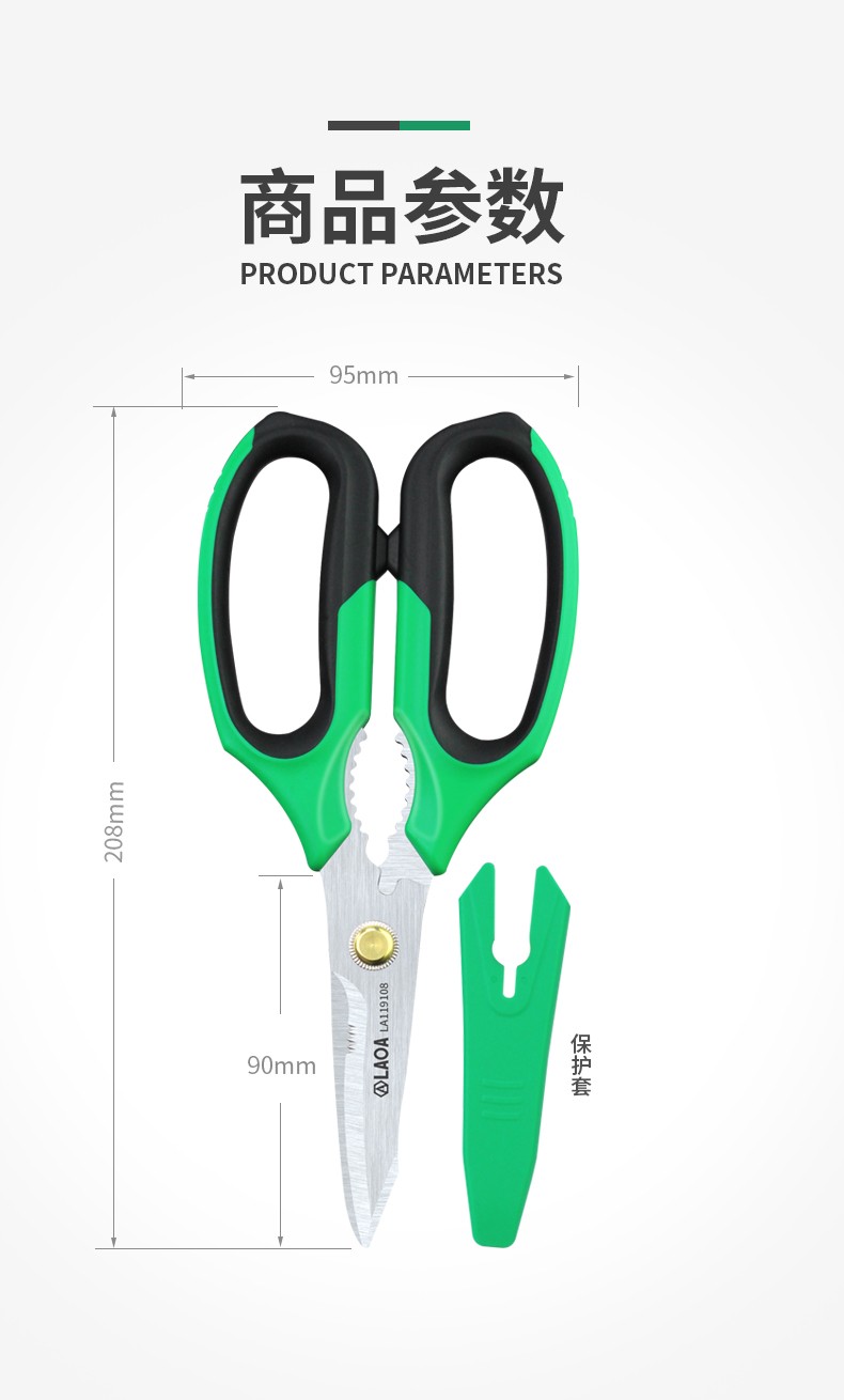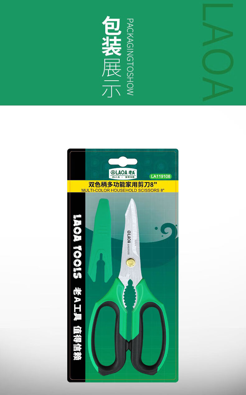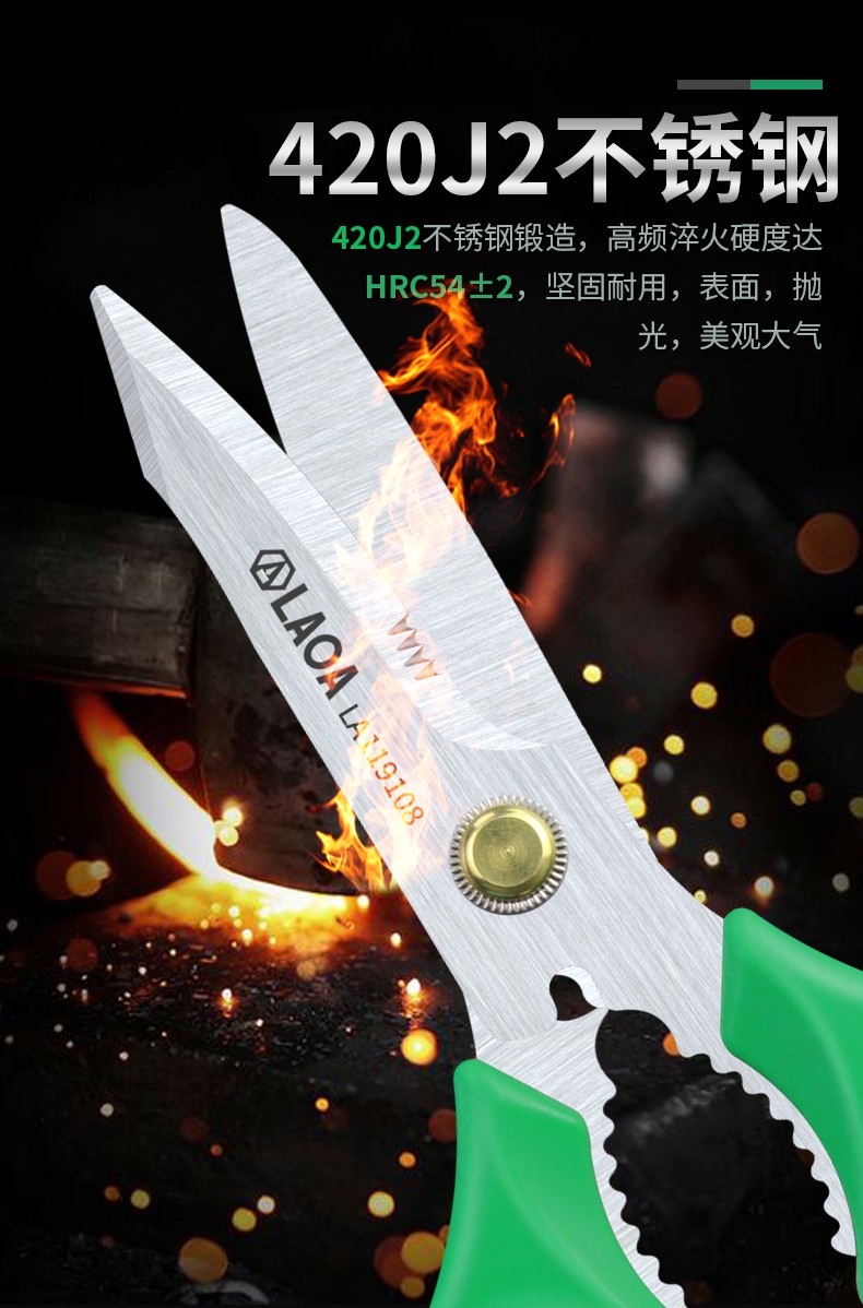 LAOA multifunctional stainless steel electrician's wire trimmer made in Taiwan, office and home kitchen pruning and tailoring scissors LA119108 multifunctional powerful scissors LA119108