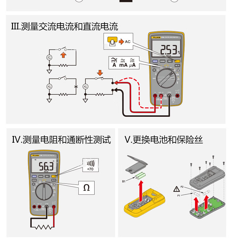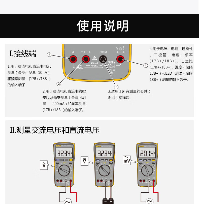 FLUKE digital multimeter high-precision handheld multimeter automatic range multimeter 17B MAX 01 with i400E can measure AC 400A