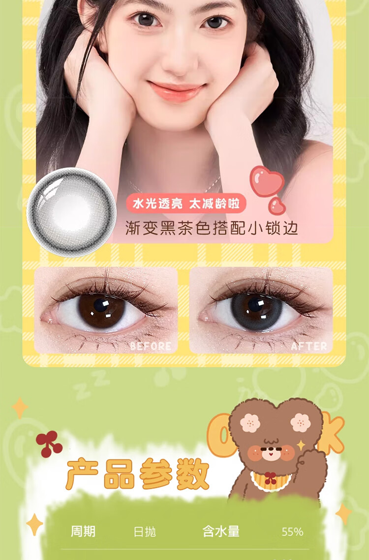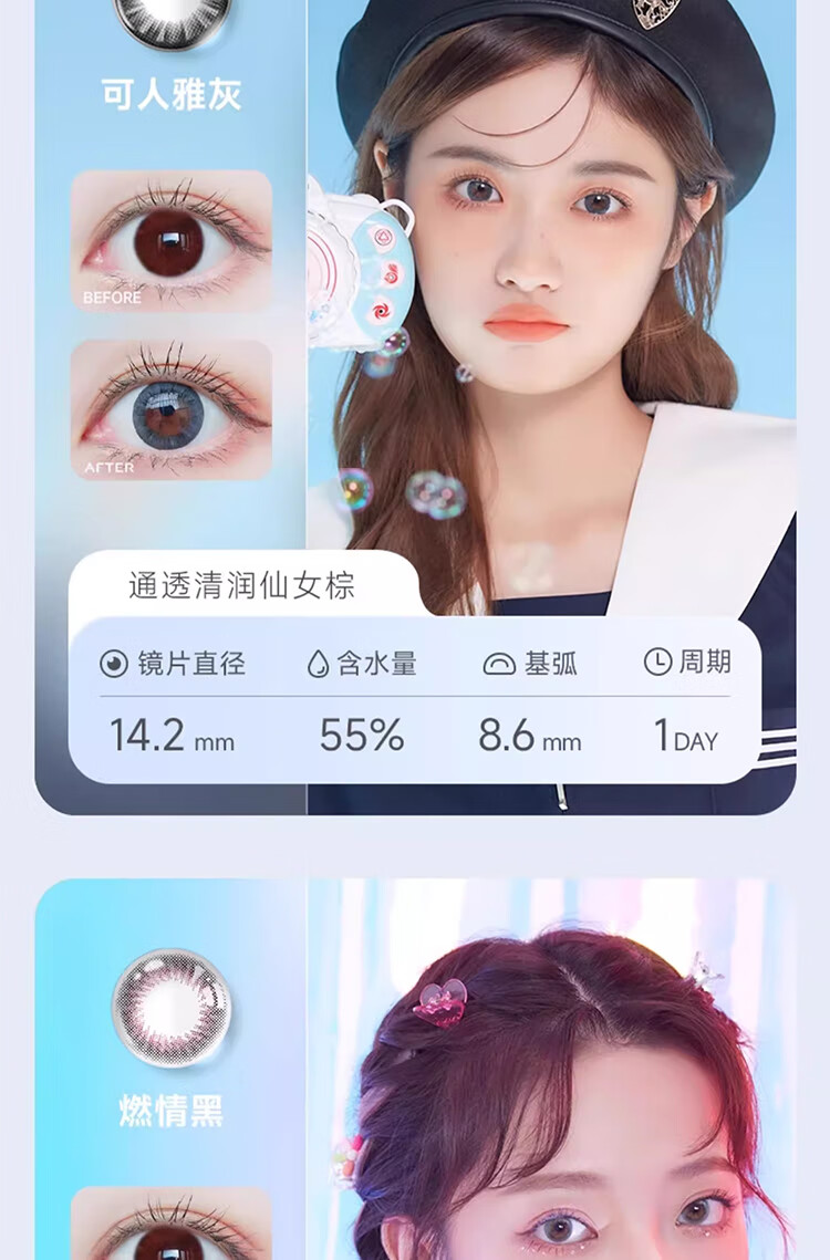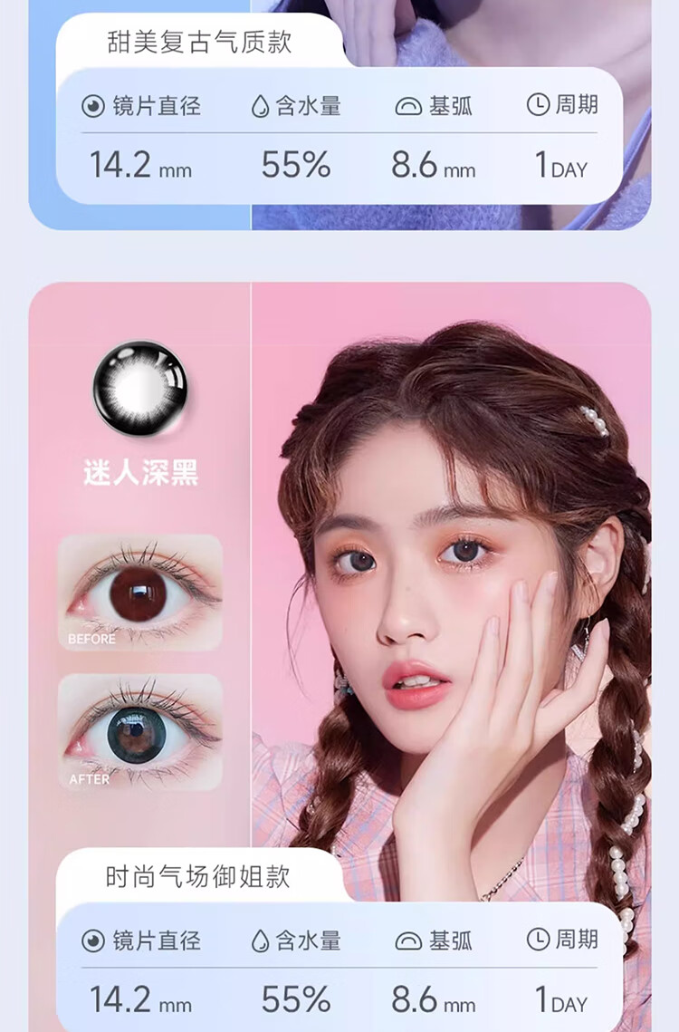 Hailien Color Contact Lenses Daily Disposable 30 Pieces Boxed Color Contact Lenses Myopia Size Diameter Natural Sandwich Craft Color Lenses Charming Dark Black *30 Pieces 800 Degrees