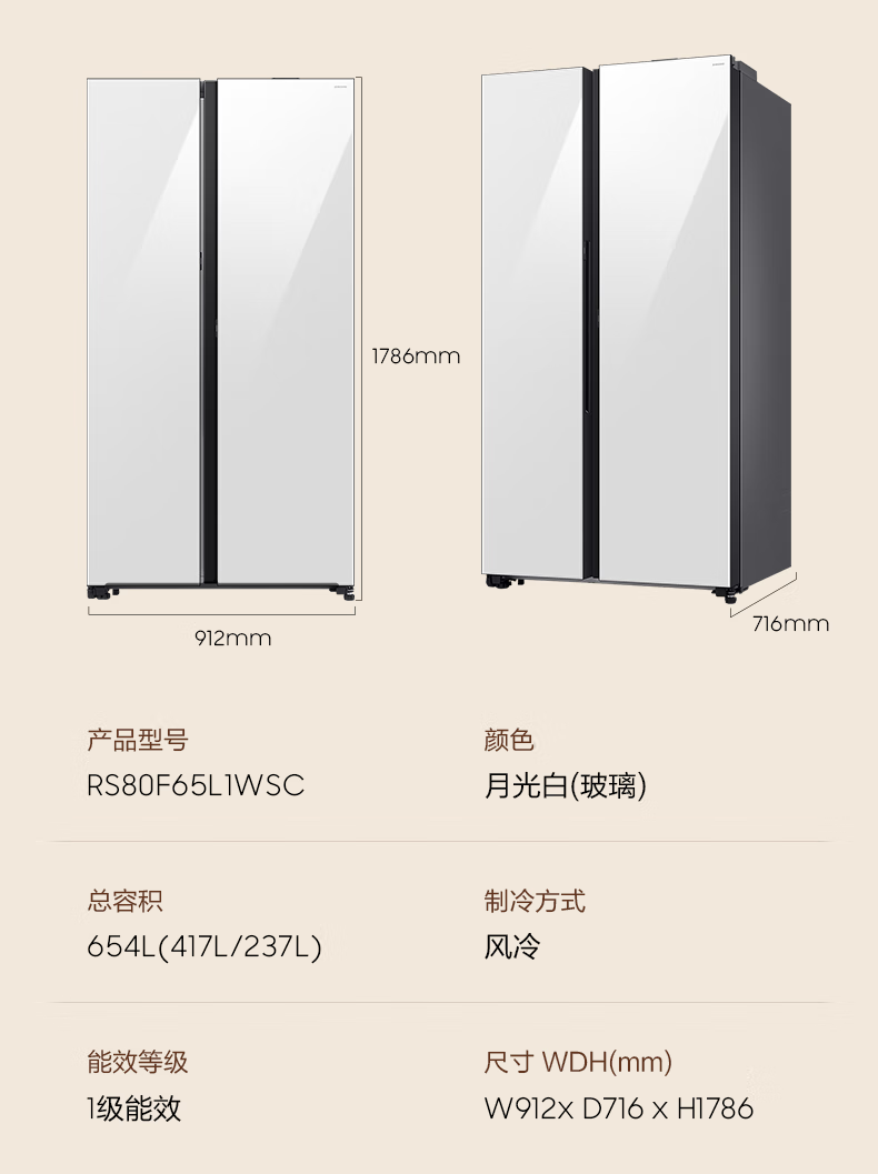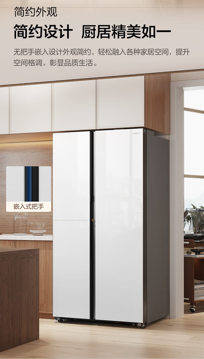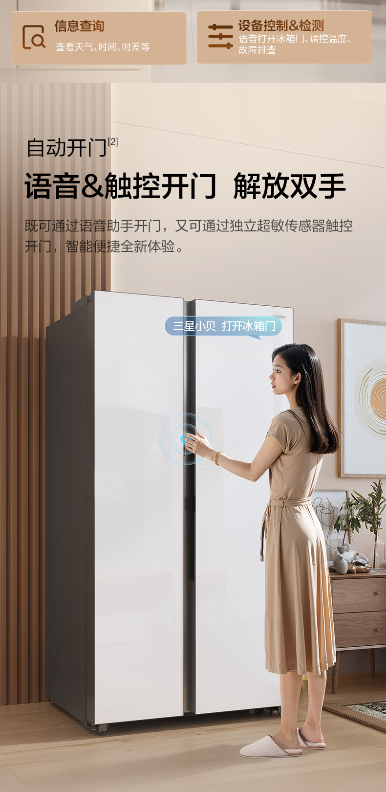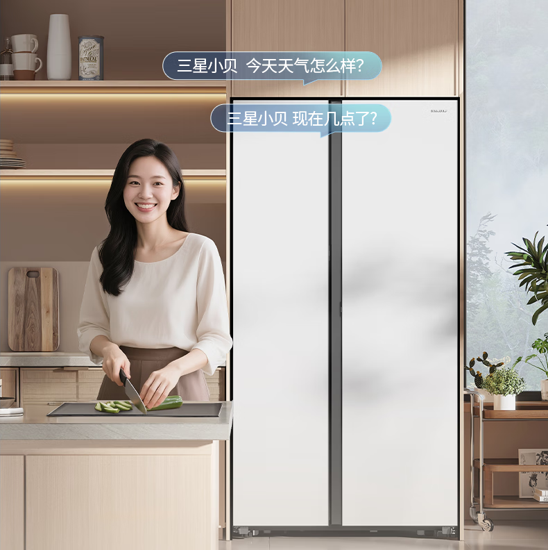 Samsung (SAMSUNG) 2025 new product household 654L ultra-large capacity sound-touch dual-control automatic door opening Bixby voice assistant AI energy-saving wet and dry storage side-by-side door refrigerator trade-in Moonlight White RS80F65L1WSC
