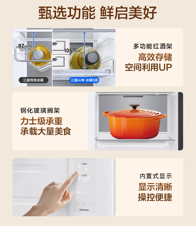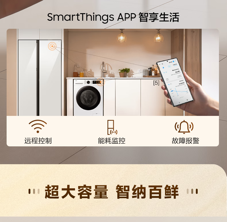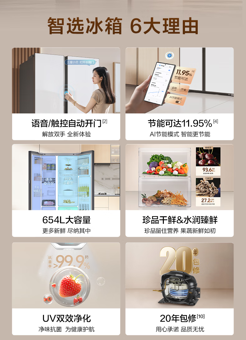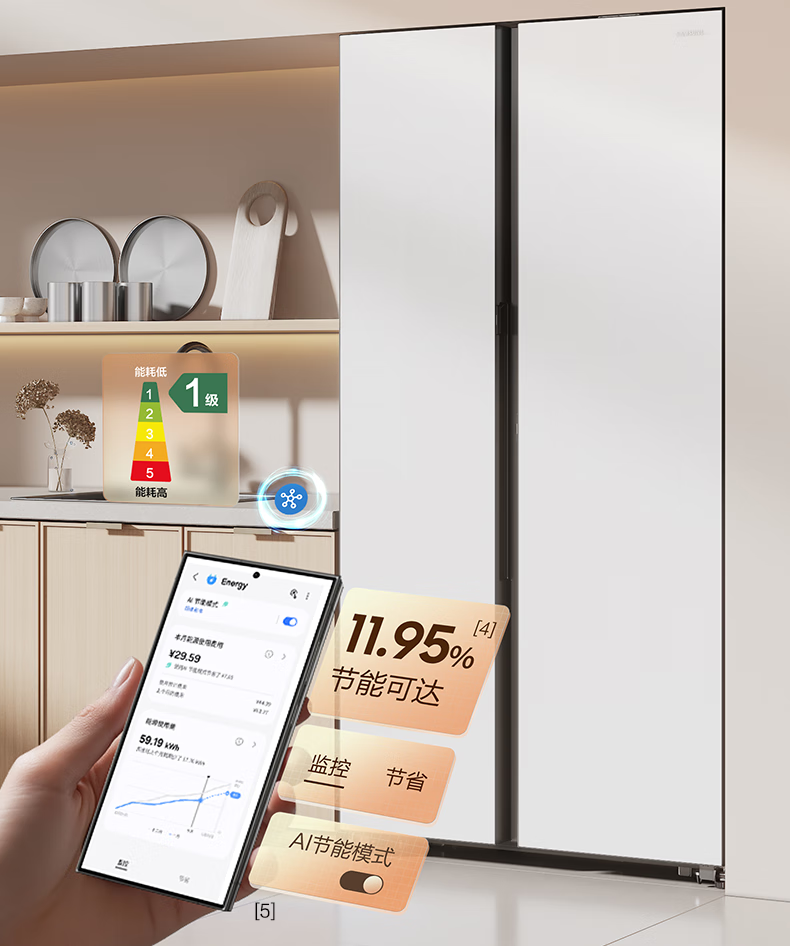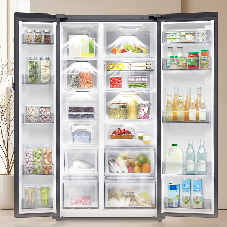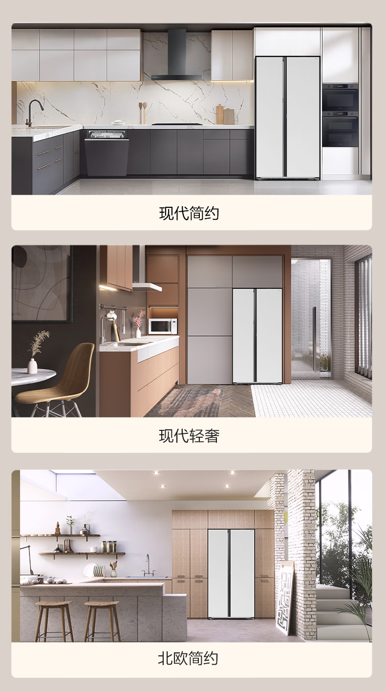 Samsung (SAMSUNG) 2025 new product household 654L ultra-large capacity sound-touch dual-control automatic door opening Bixby voice assistant AI energy-saving wet and dry storage side-by-side door refrigerator trade-in Moonlight White RS80F65L1WSC