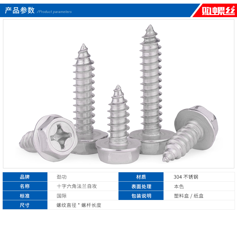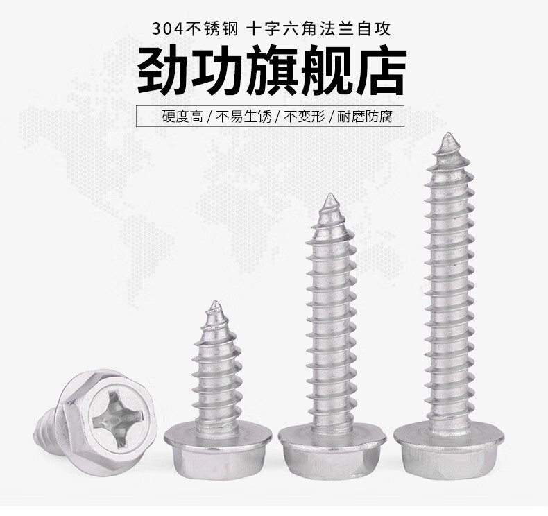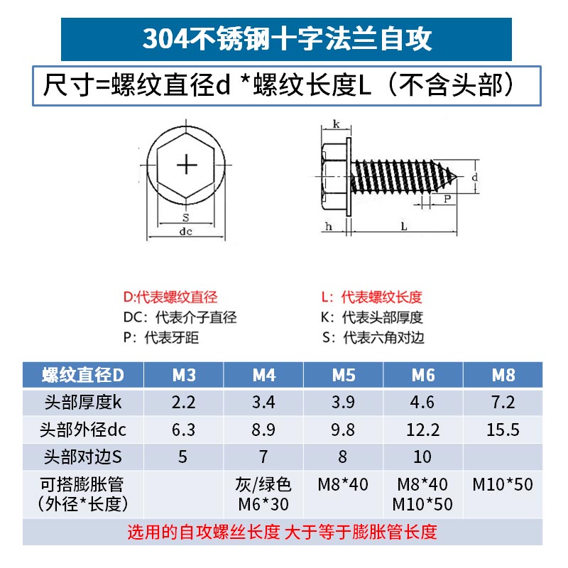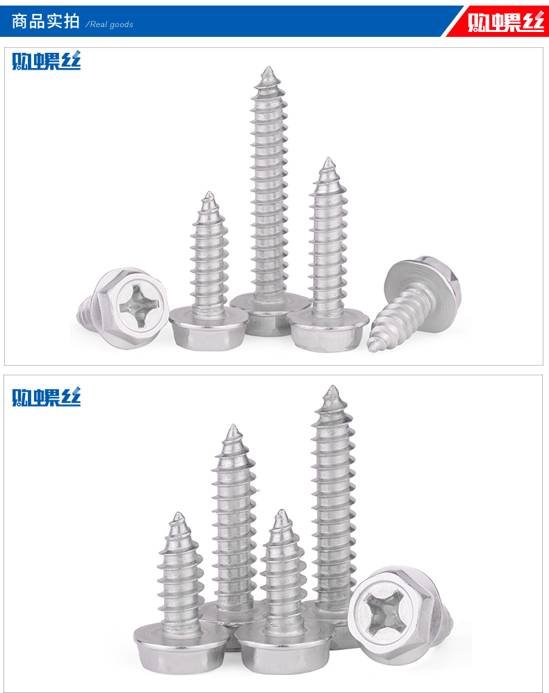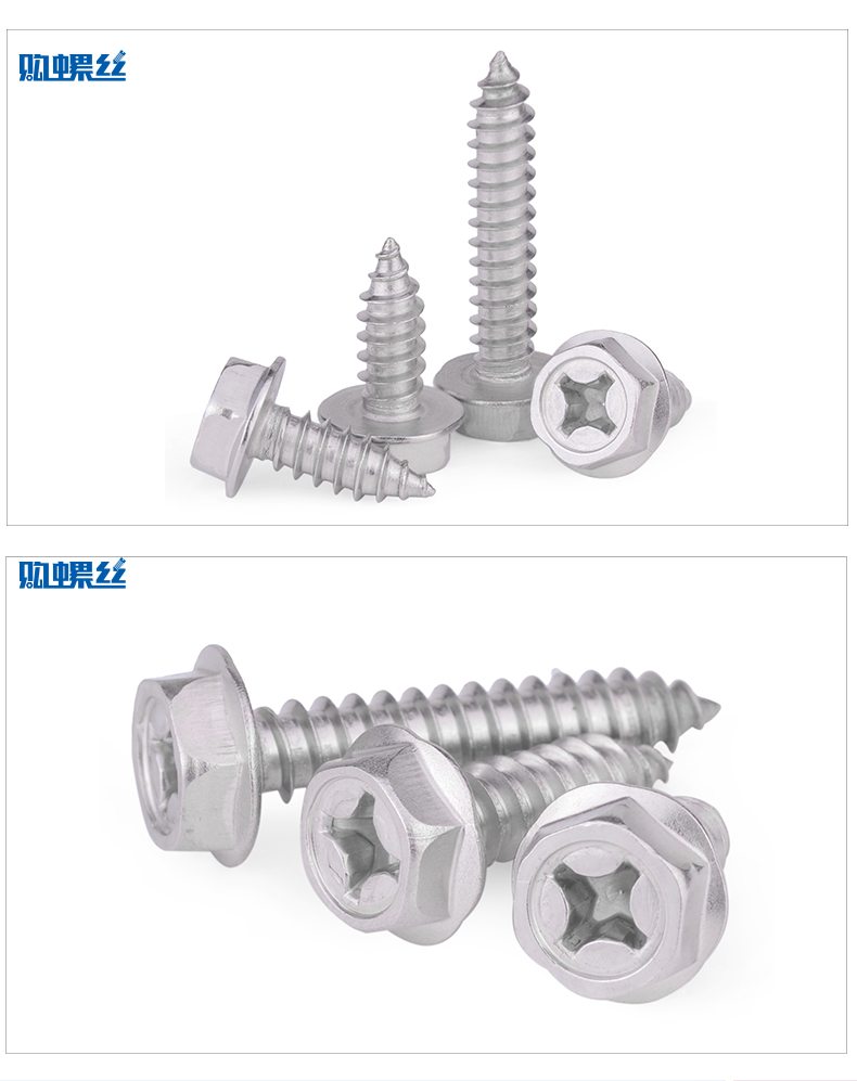 Jinggong 304 stainless steel cross flange self-tapping screws and bolts Cross external hexagonal padded self-tapping screws M6*16 (5 pieces)