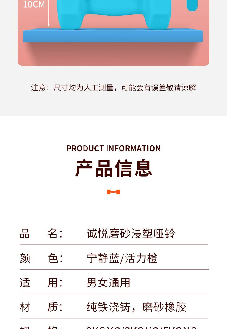 Chengyue color dipped dumbbells for men and women home fitness shaping equipment combination set 3kg*2 tranquil blue CY-136