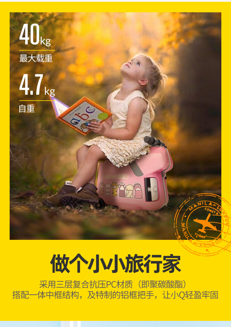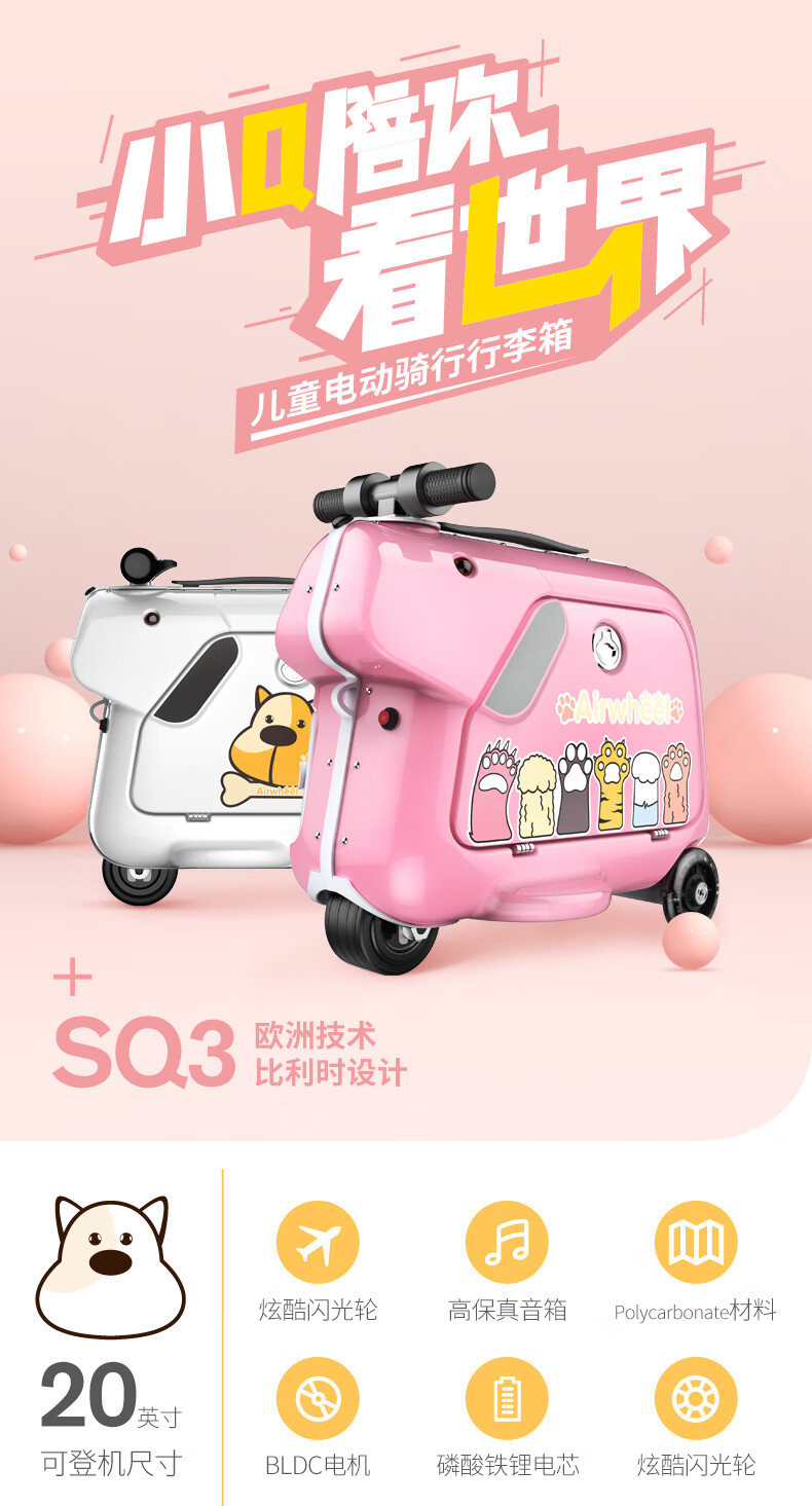 Airwheel children's suitcase, electric suitcase, can ride, sit, walk, board, and travel, men's and women's trolley case, Prince Blue