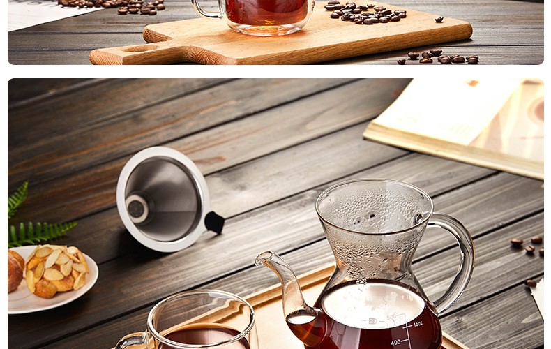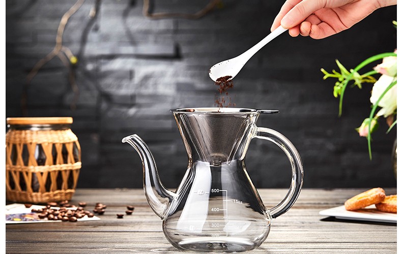 Mesni glass coffee pot with filter coffee set stainless steel drip filter cup filter paper free home use with scale hourglass pot 820ml