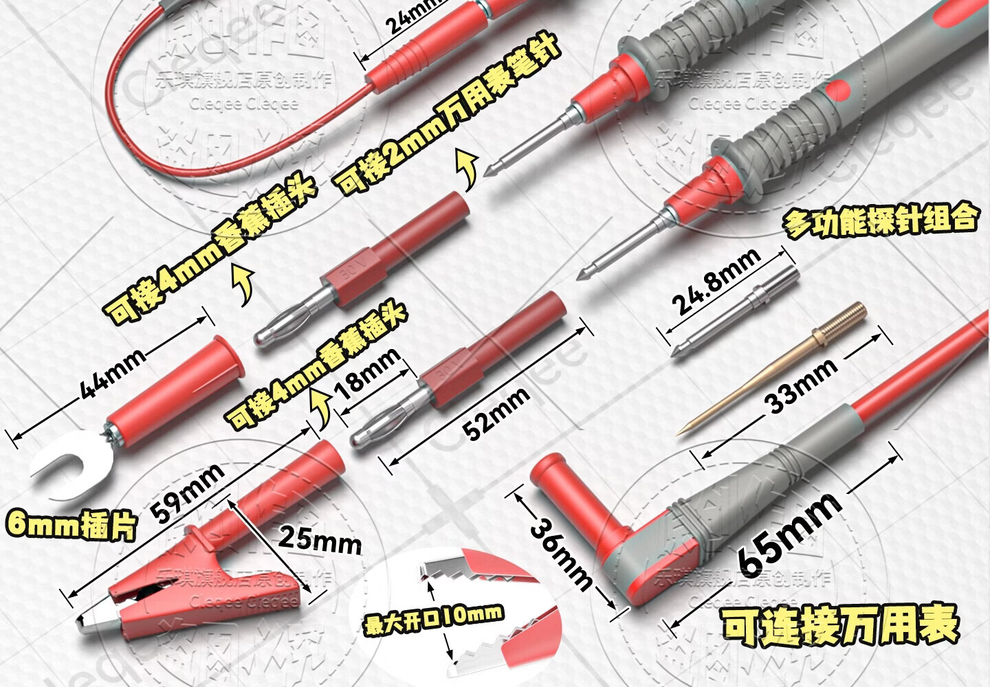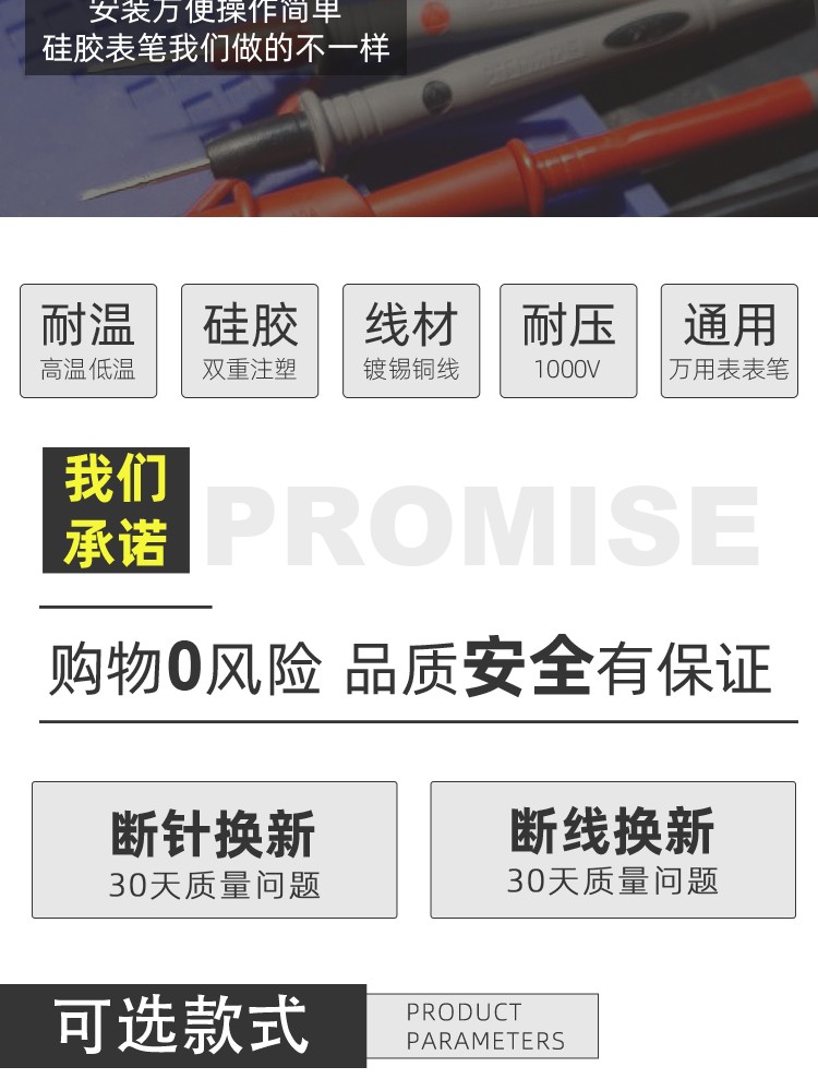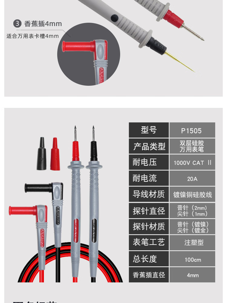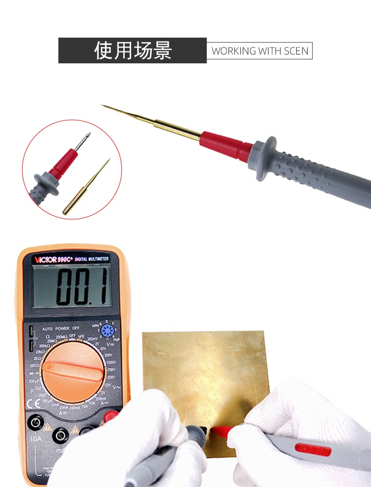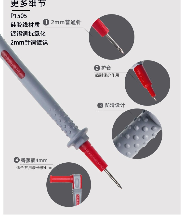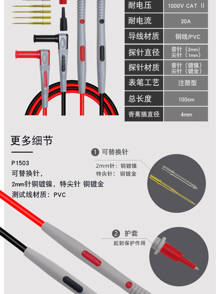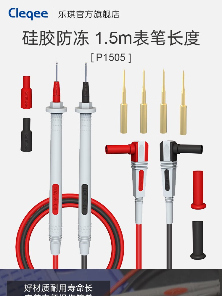 Cleqee multimeter test pens, multifunctional replaceable needle silicone test pens, extra soft, electric pen test lead kit, extra sharp test pens P1503E (replaceable needles + accessories)