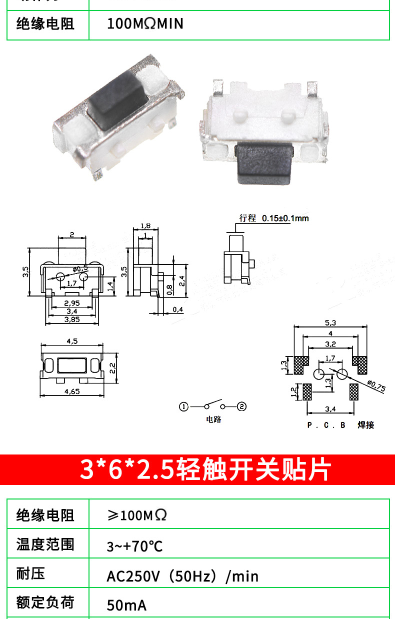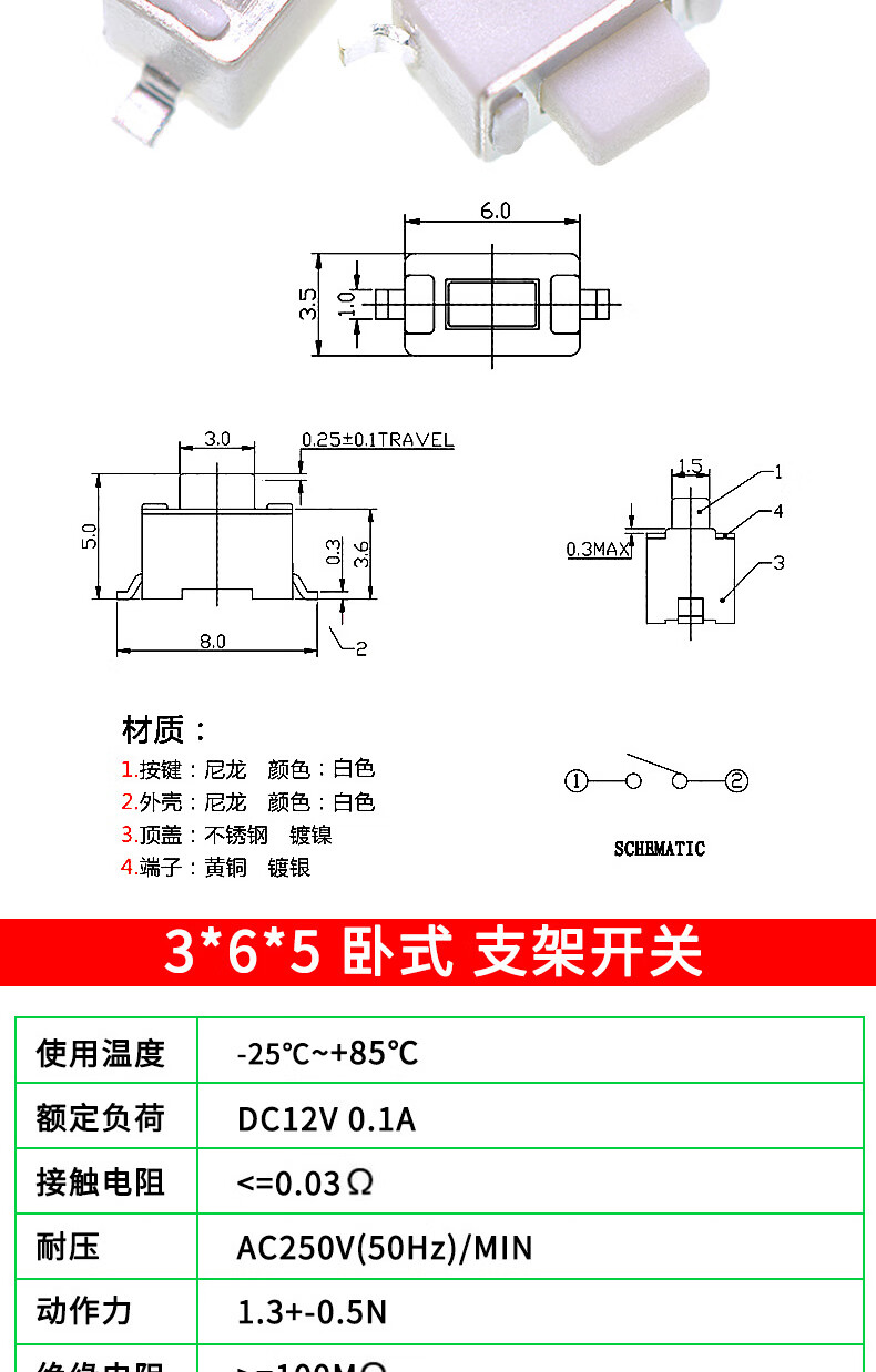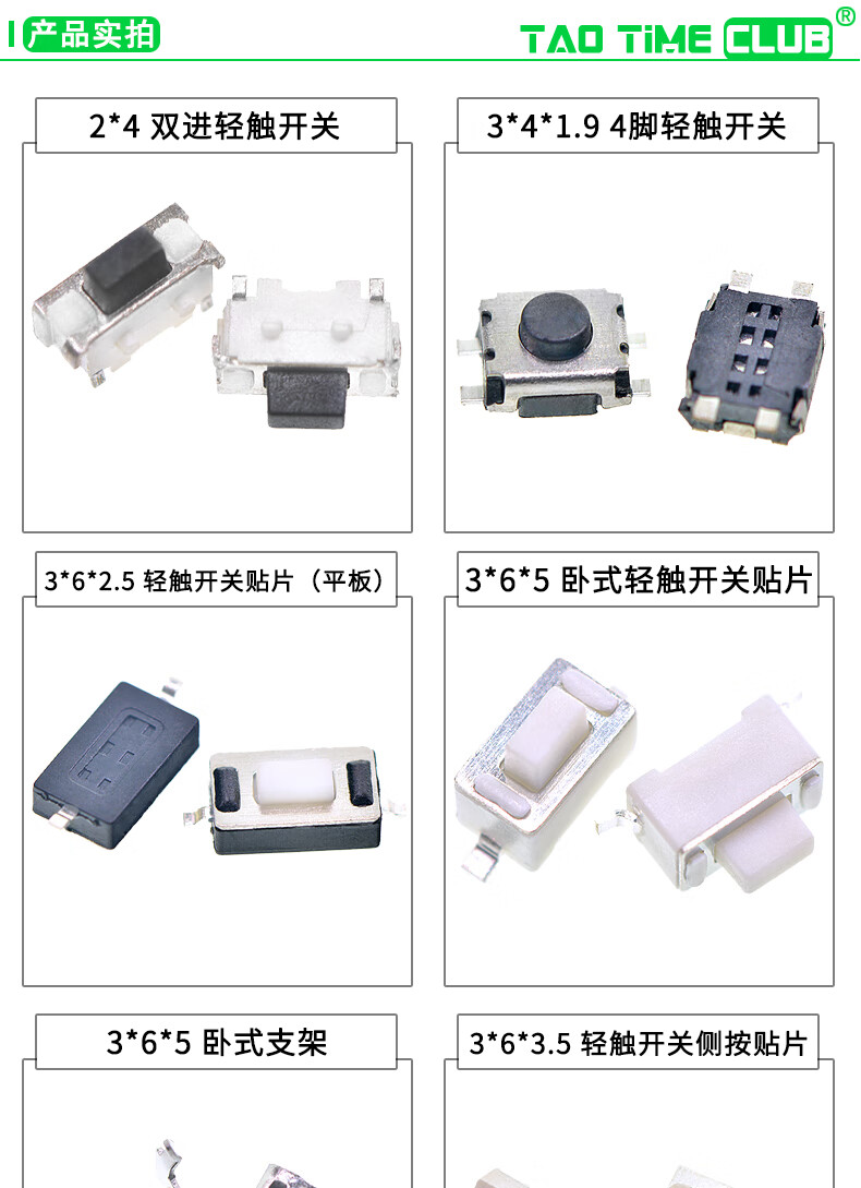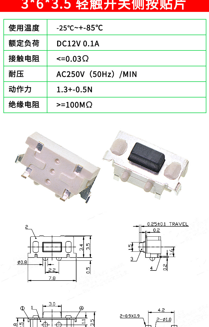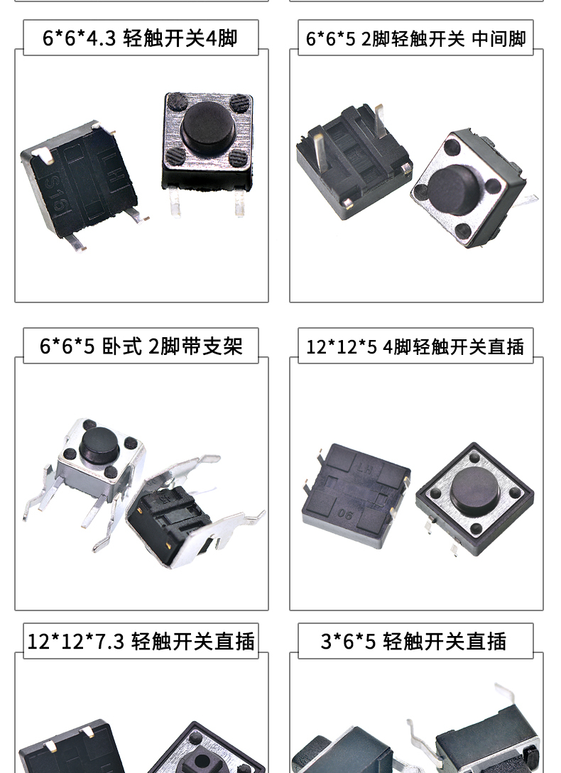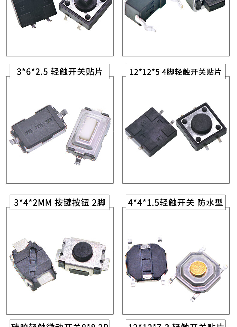 Tactile switch, push button micro switch, 12*12/2*4/3*6/4*4/6*6 bracket/patch plug-in, 3*6*3.5 side push patch switch (20 pcs), no specifications