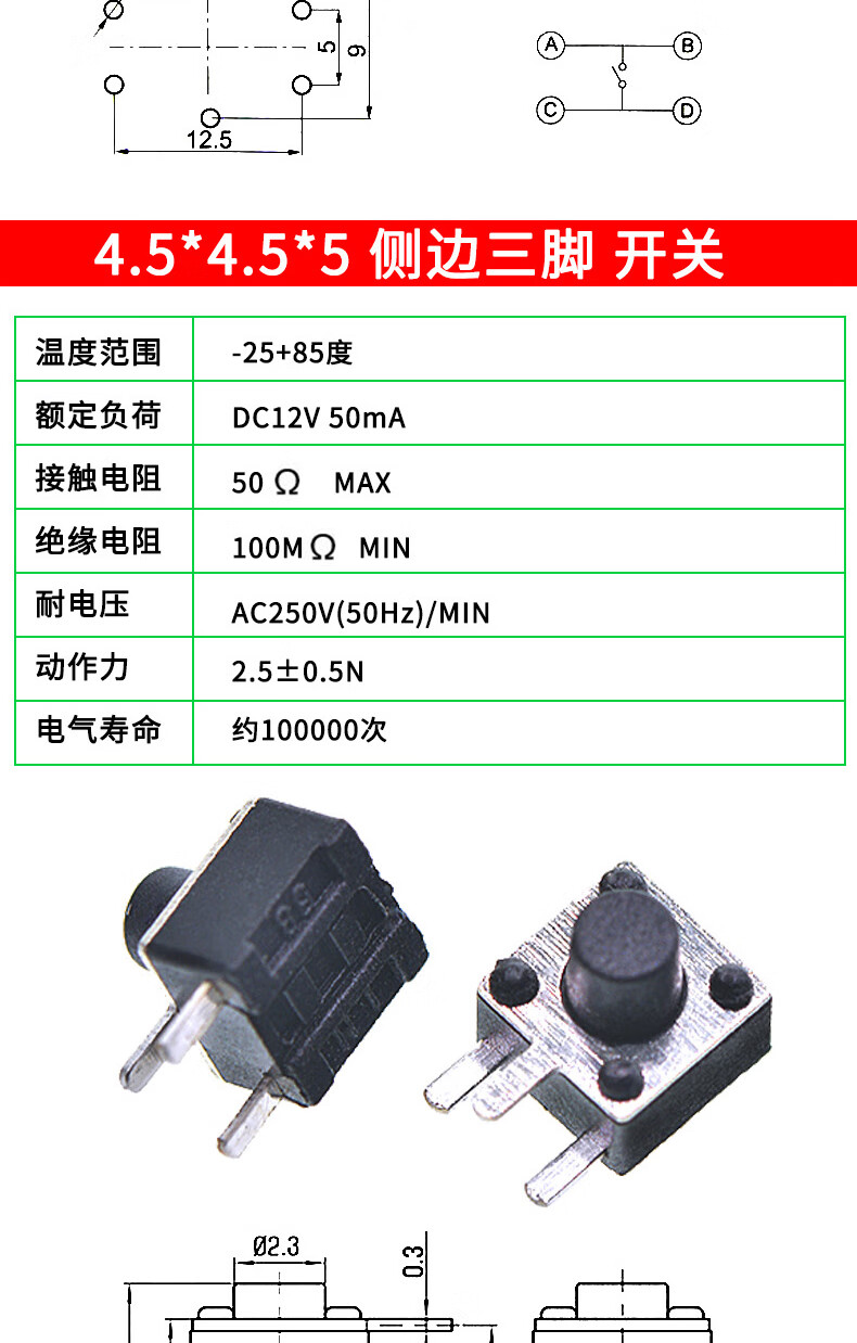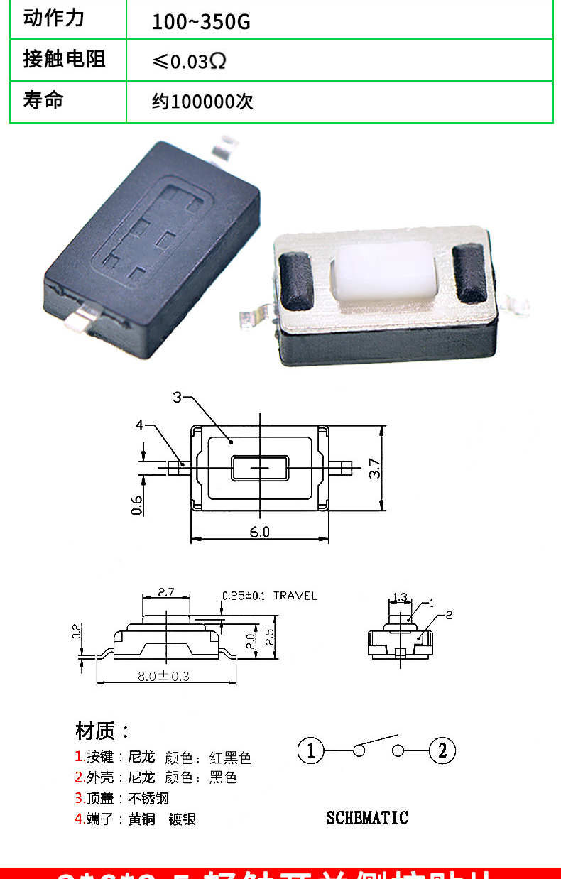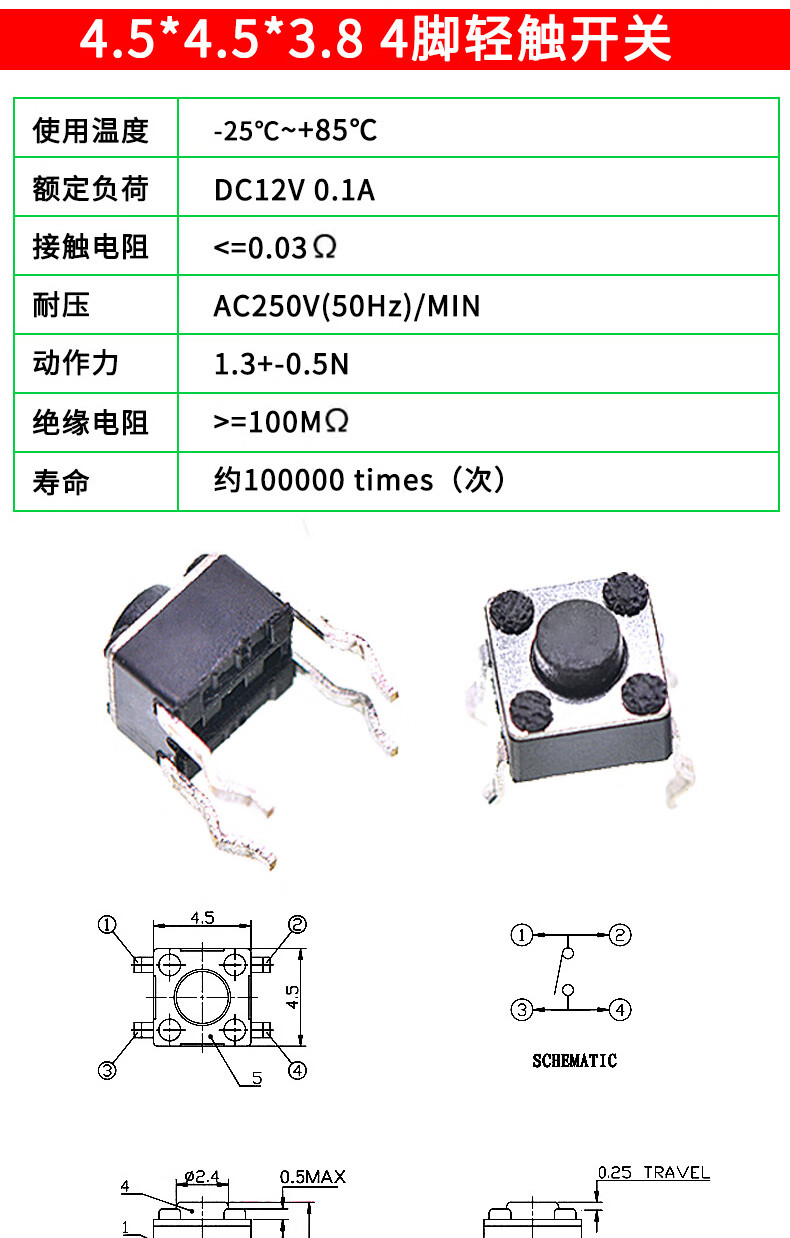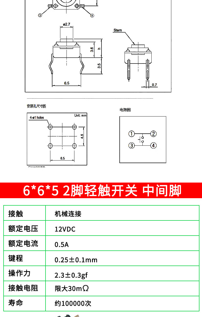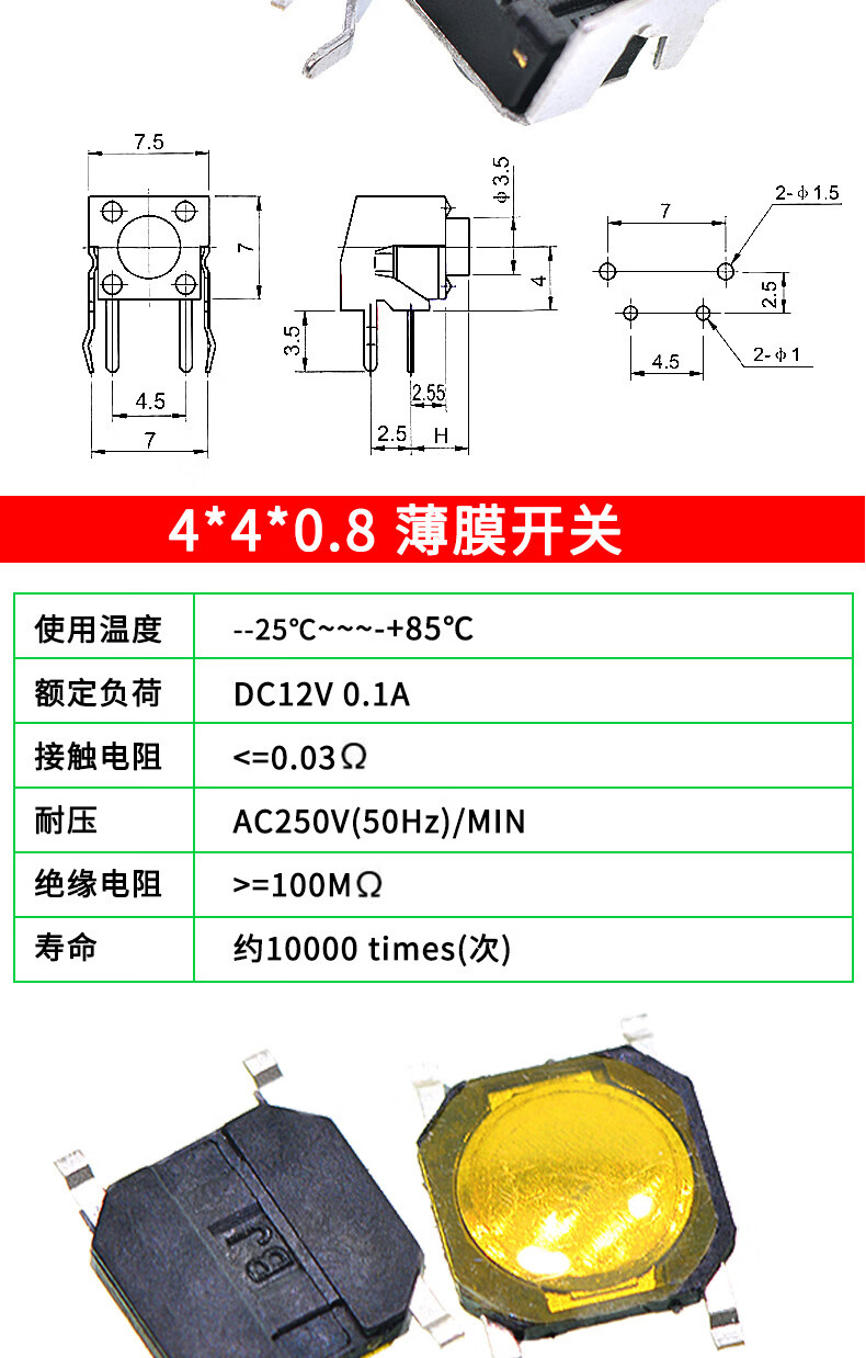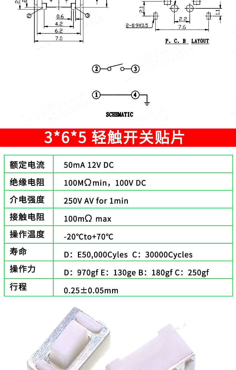 Tactile switch, push button micro switch, 12*12/2*4/3*6/4*4/6*6 bracket/patch plug-in, 3*6*3.5 side push patch switch (20 pcs), no specifications
