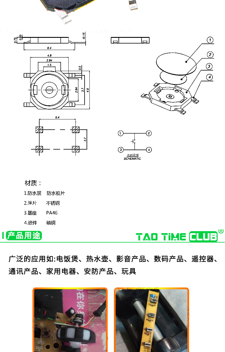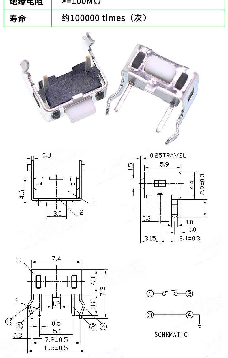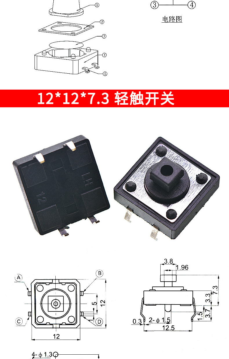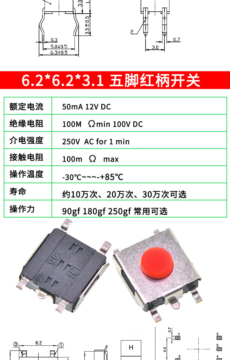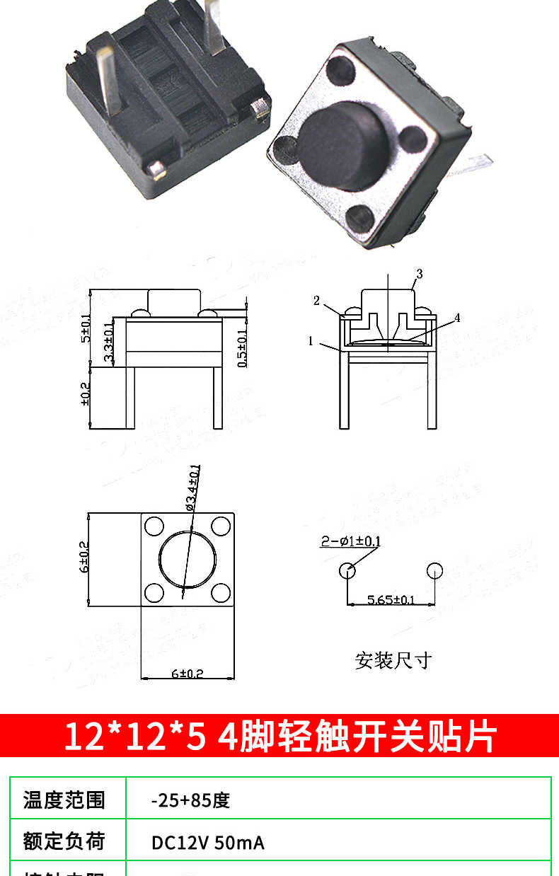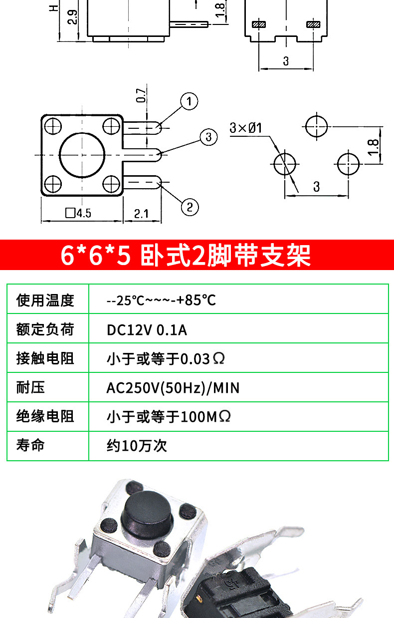 Tactile switch, push button micro switch, 12*12/2*4/3*6/4*4/6*6 bracket/patch plug-in, 3*6*3.5 side push patch switch (20 pcs), no specifications