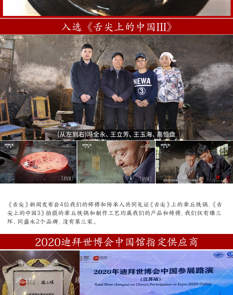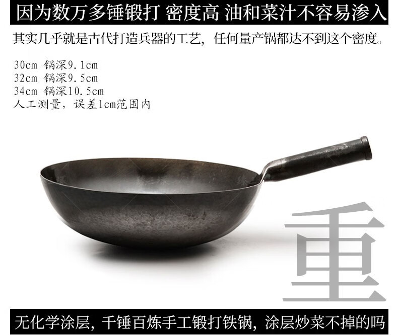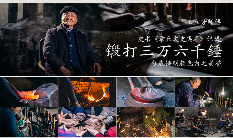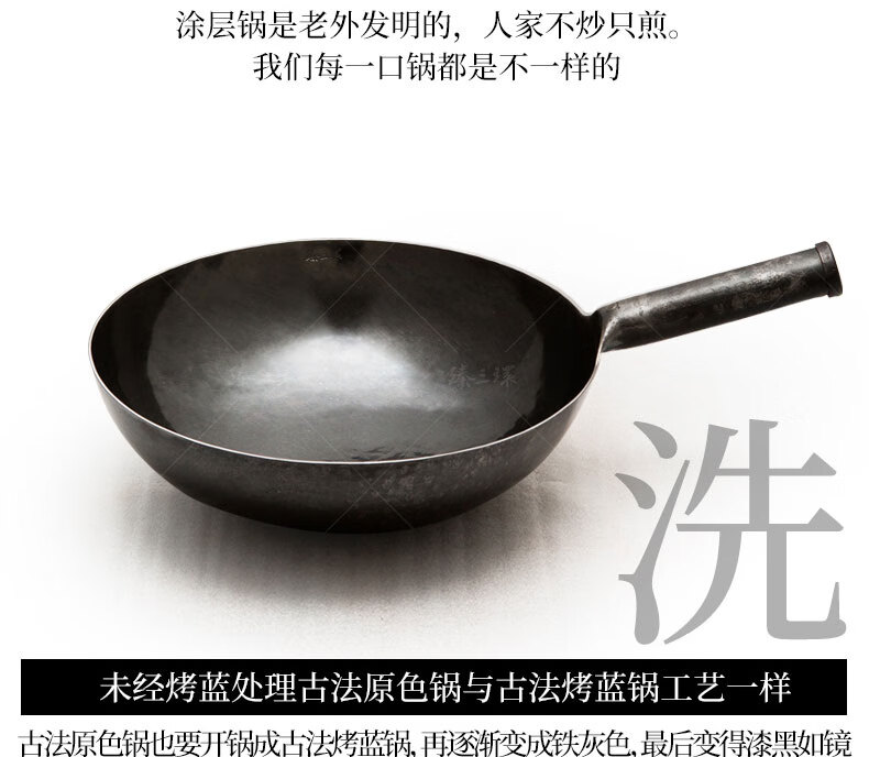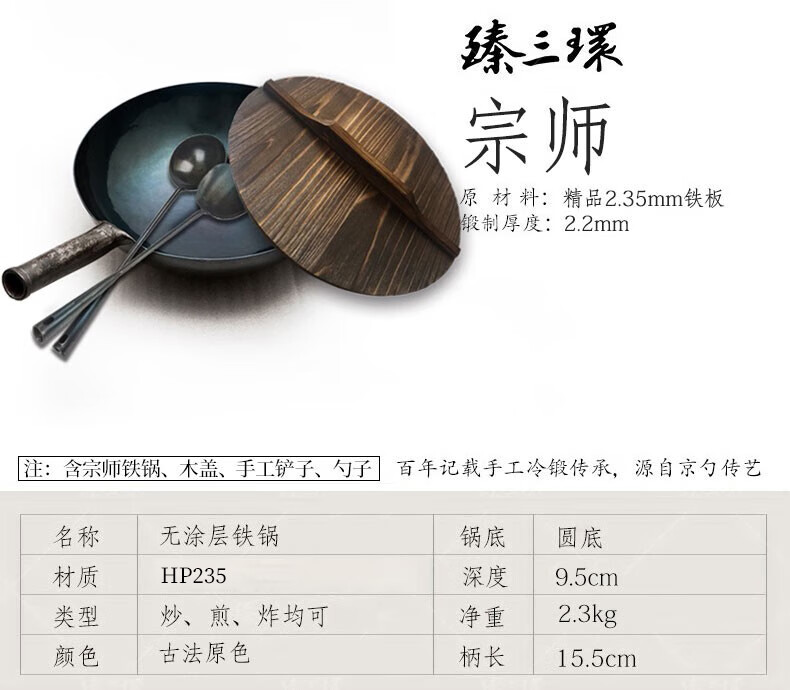 Zhensanhuan Zhangqiu iron pot cooking pot hand-forged pot uncoated physical non-stick pot wrought iron pot Yihuan Grandmaster gift box ancient roasted blue 32cm + spatula + wooden lid 4-piece set