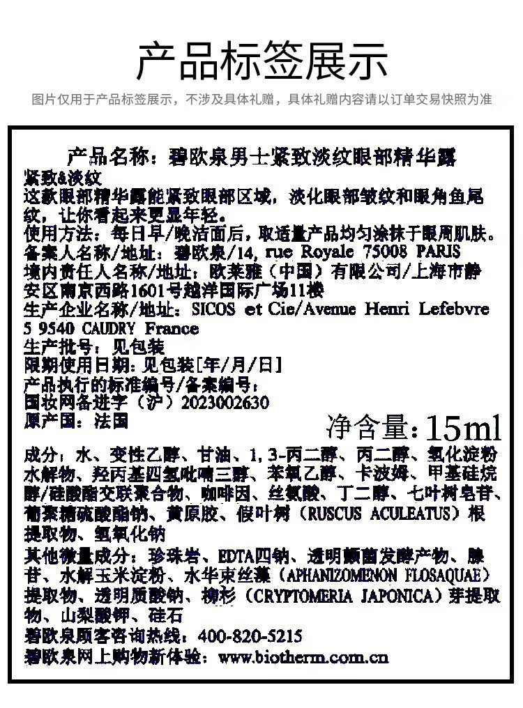 Biotherm Men's Blue Diamond Firming Eye Essence 15ml Bosein Birthday gift New Year's gift for boyfriend