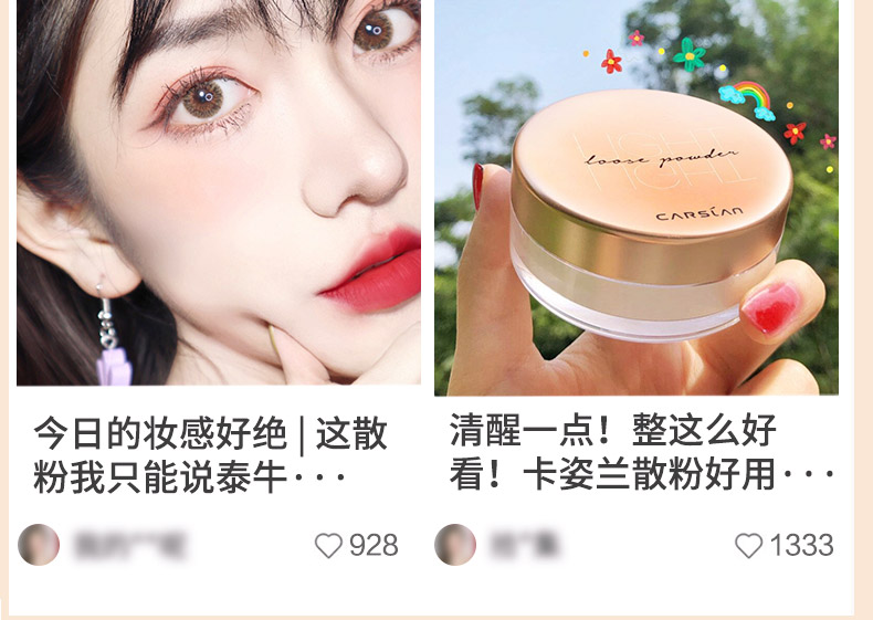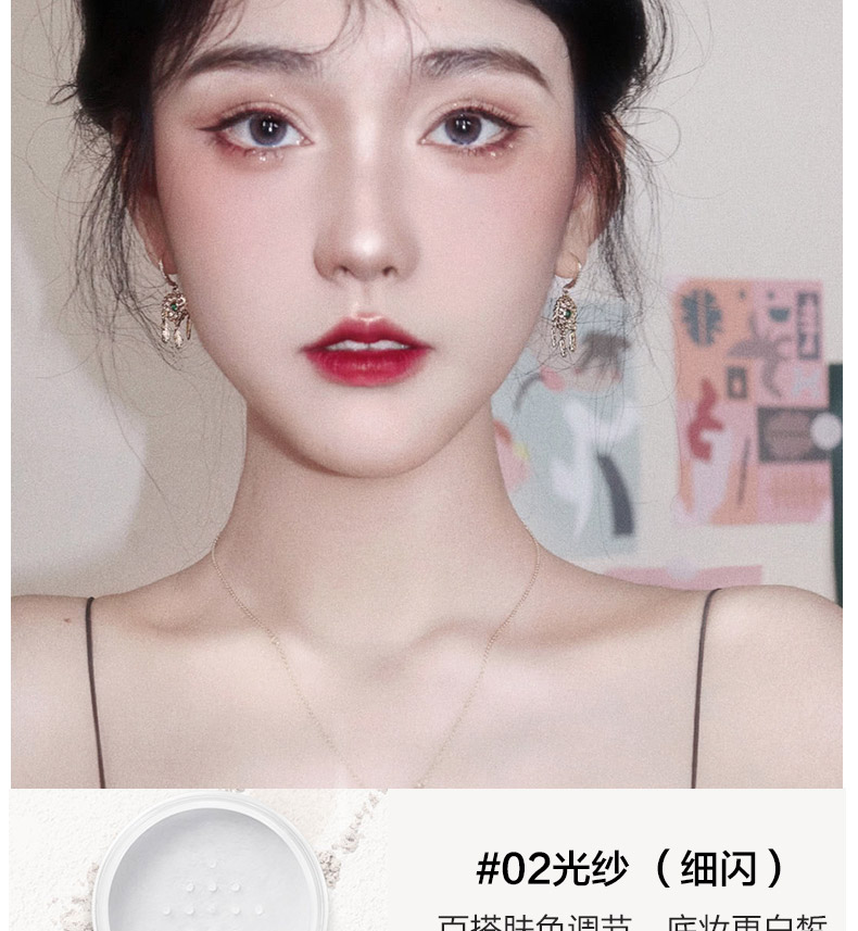 Carslan Loose Powder Setting Powder Oil-Controlling Waterproof and Sweatproof Concealer Long-lasting Non-removing Makeup Invisible Pores Big Brand Touch-up Dry Powder 02# Light Yarn (Three-dimensional Mist and Fine Flash)