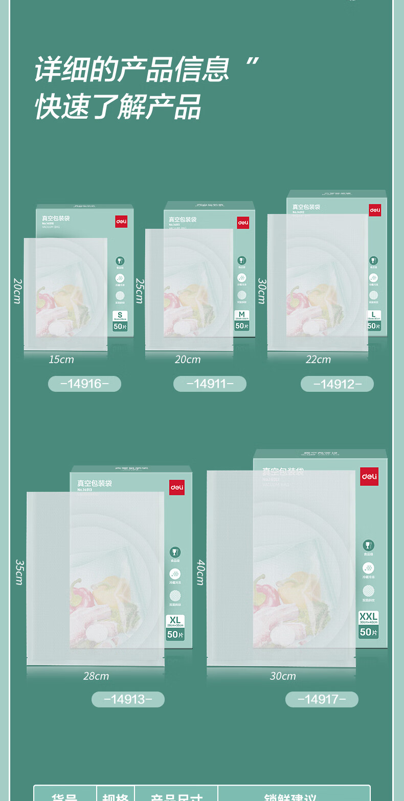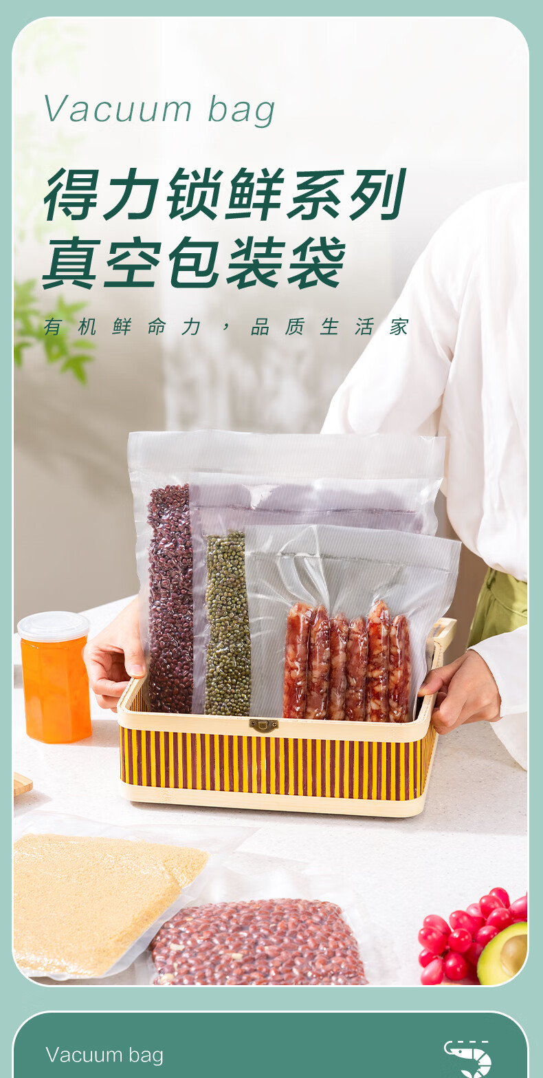 Deli vacuum food packaging bag double-sided texture vacuum seal bag vacuum machine sealing machine bag fresh-keeping bag commercial household food texture vacuum bag double-sided texture 30cm*5m 1 roll