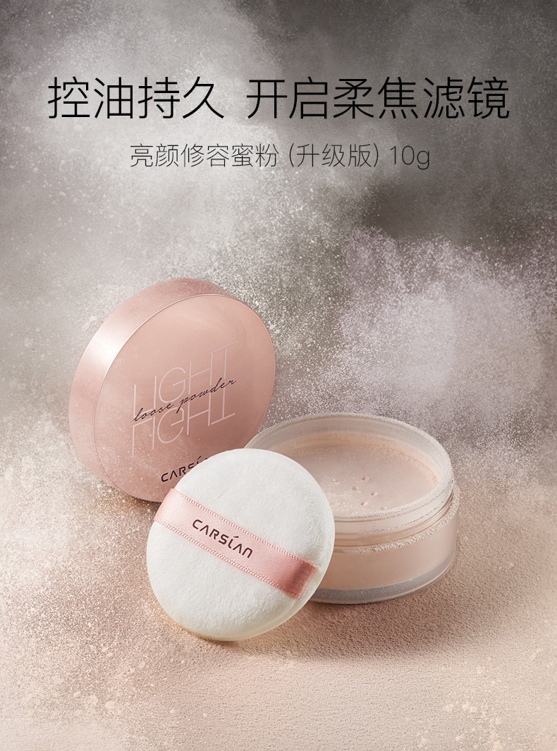 Carslan Loose Powder Setting Powder Oil Control Waterproof and Sweatproof Lightweight Concealer Breathable Powder Women's Cosmetics Authentic 03# Rejuvenation (Natural Skin Color) Free High-End Loose Powder Brush 10g
