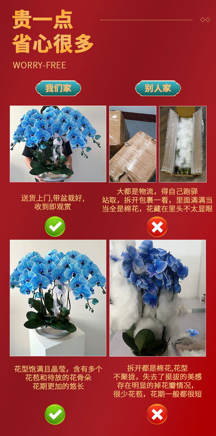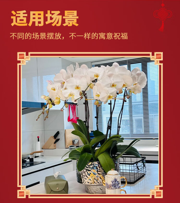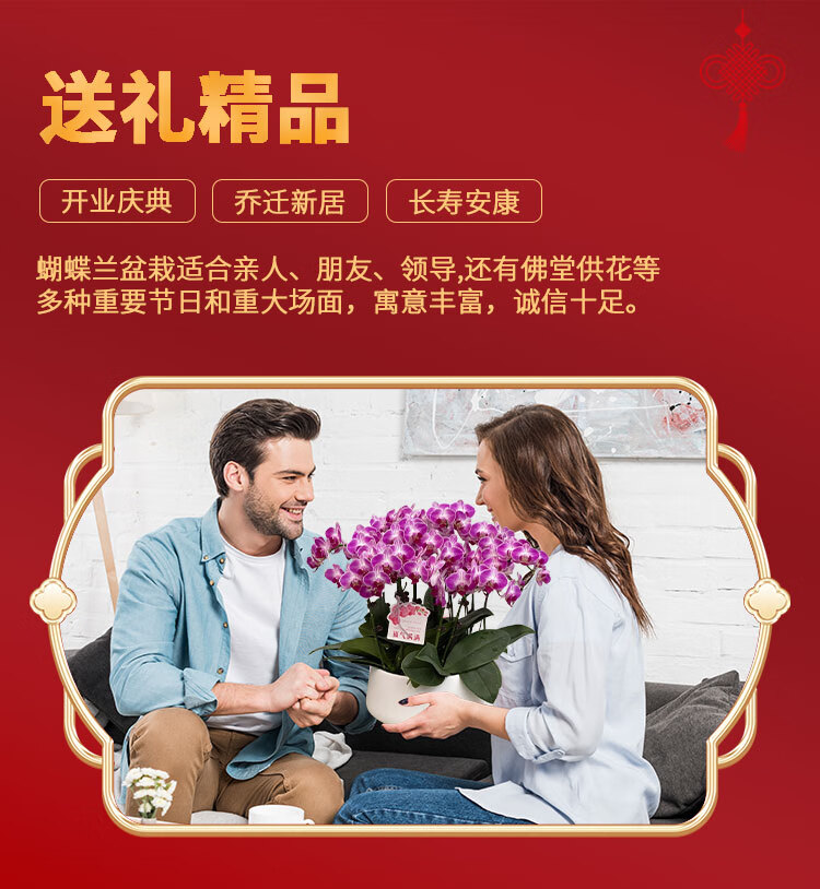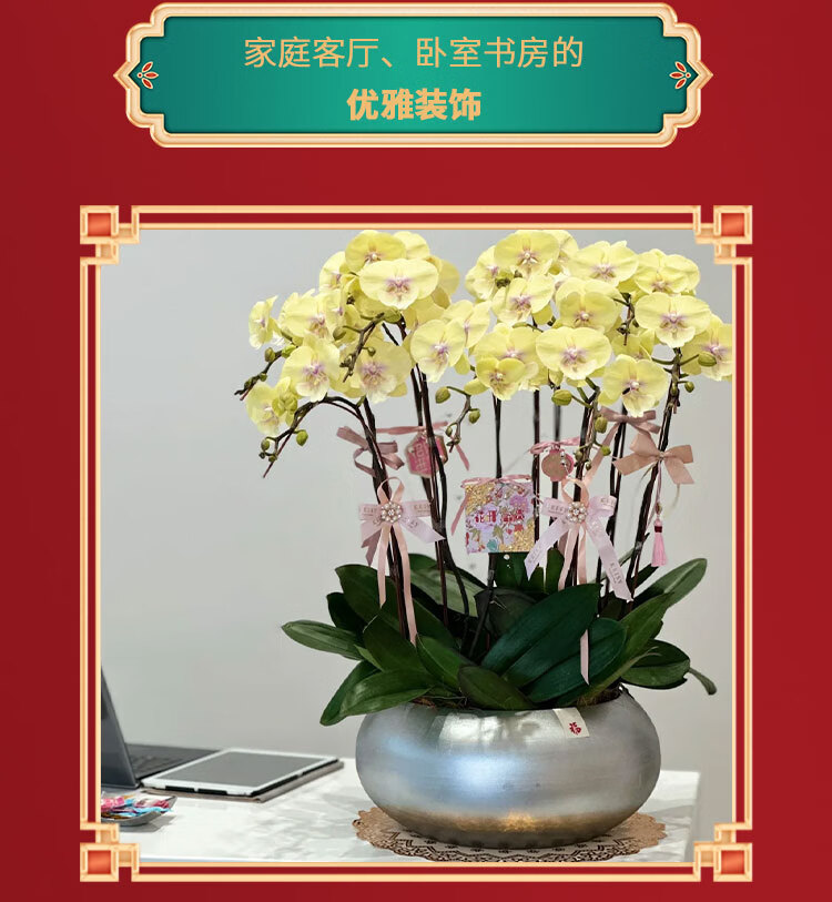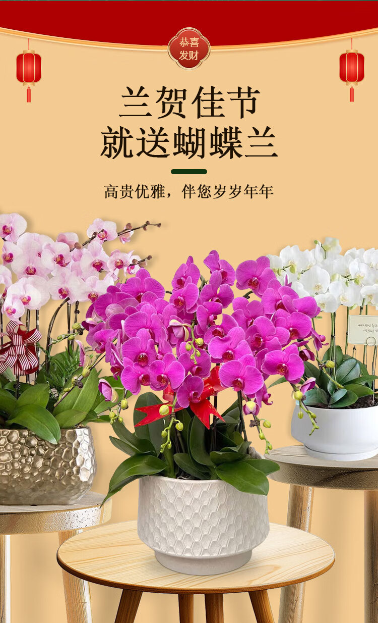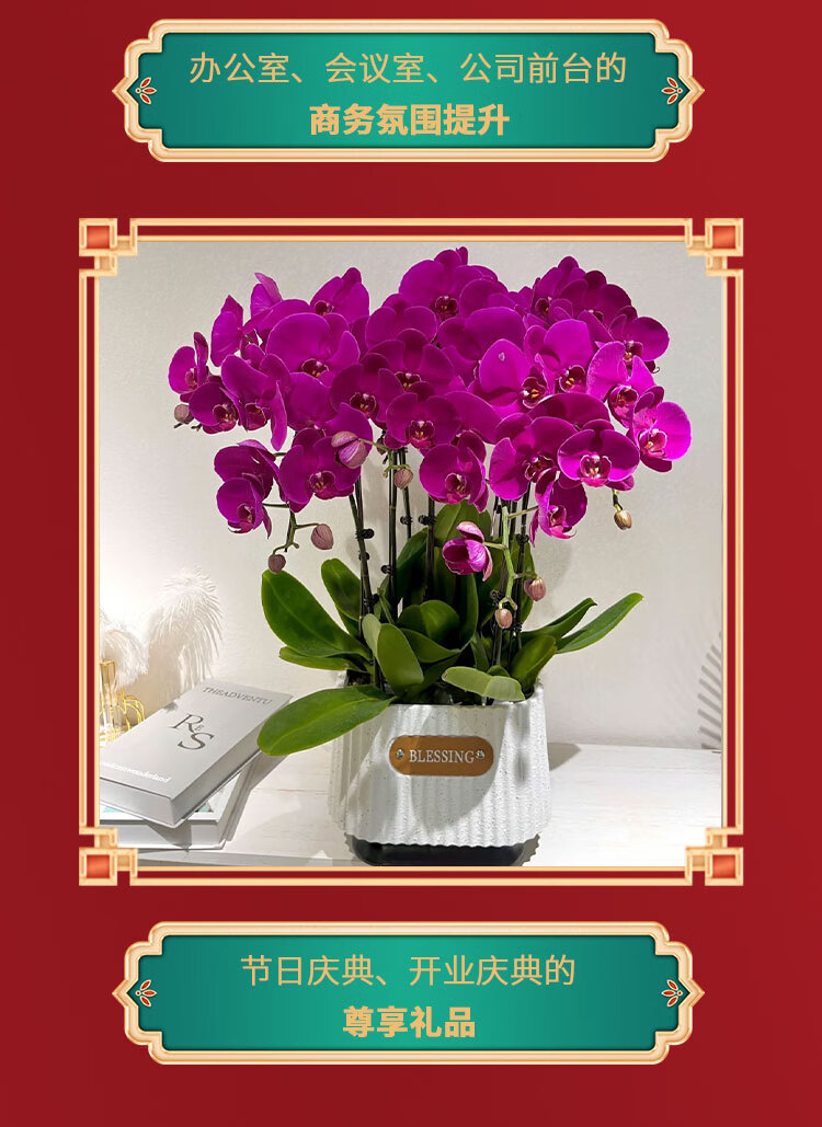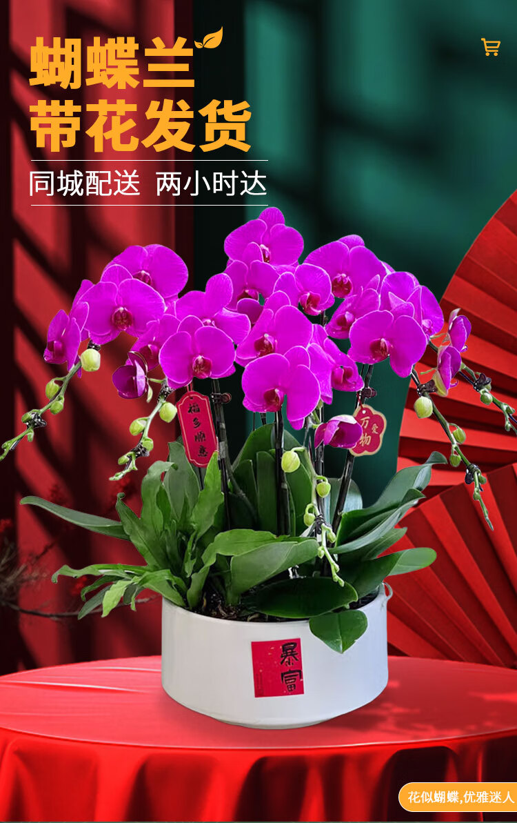 Only you 2 hours' delivery Phalaenopsis with buds and sword flower pots with real flowers orchids potted plants opening housewarming New Year's Eve flowers 8 purple plants (random porcelain pots)