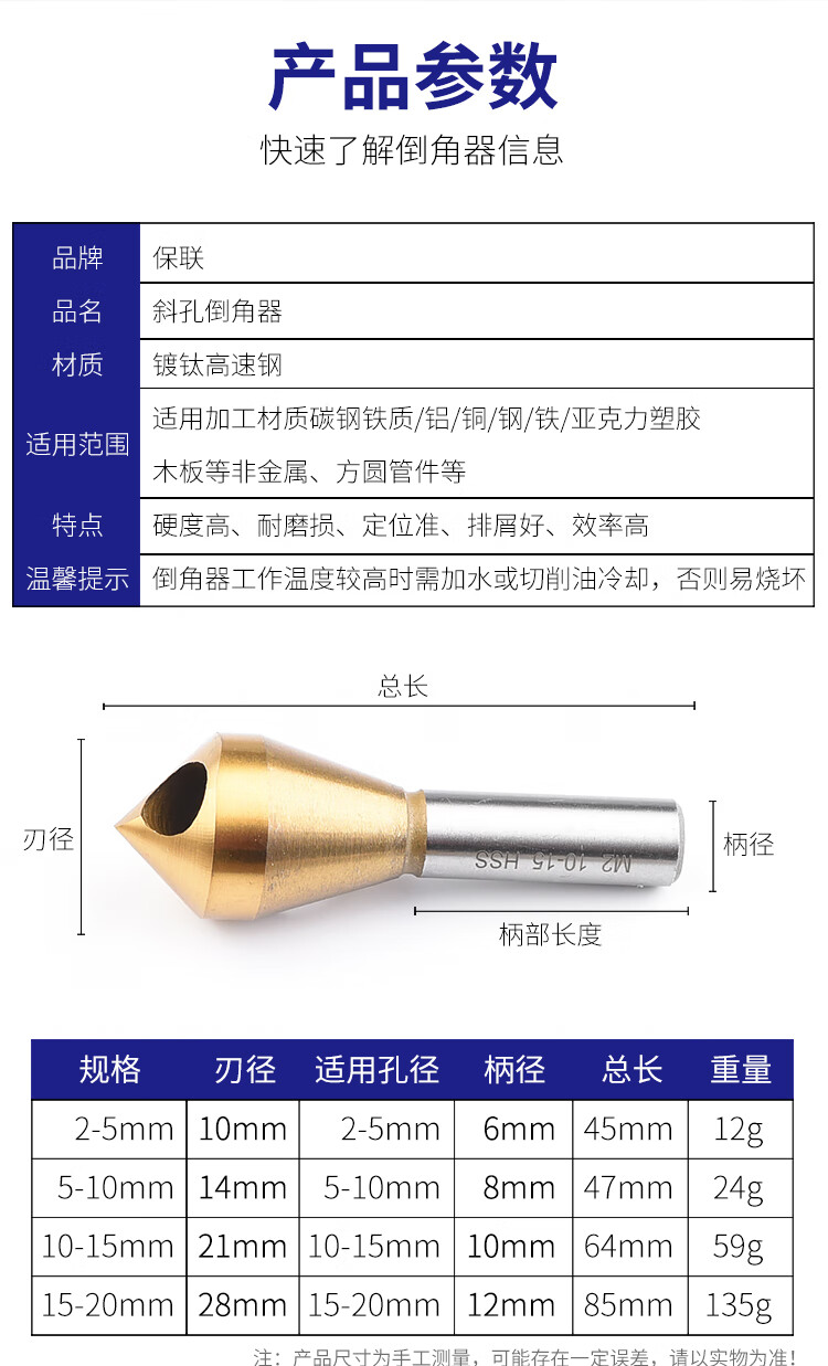 Baolian oblique hole chamferer, inverted taper hole screw countersink, chamfer 90 degree deburring, expanded hole, internal chip removal chamfering drill, high speed steel 6542 5-10mm