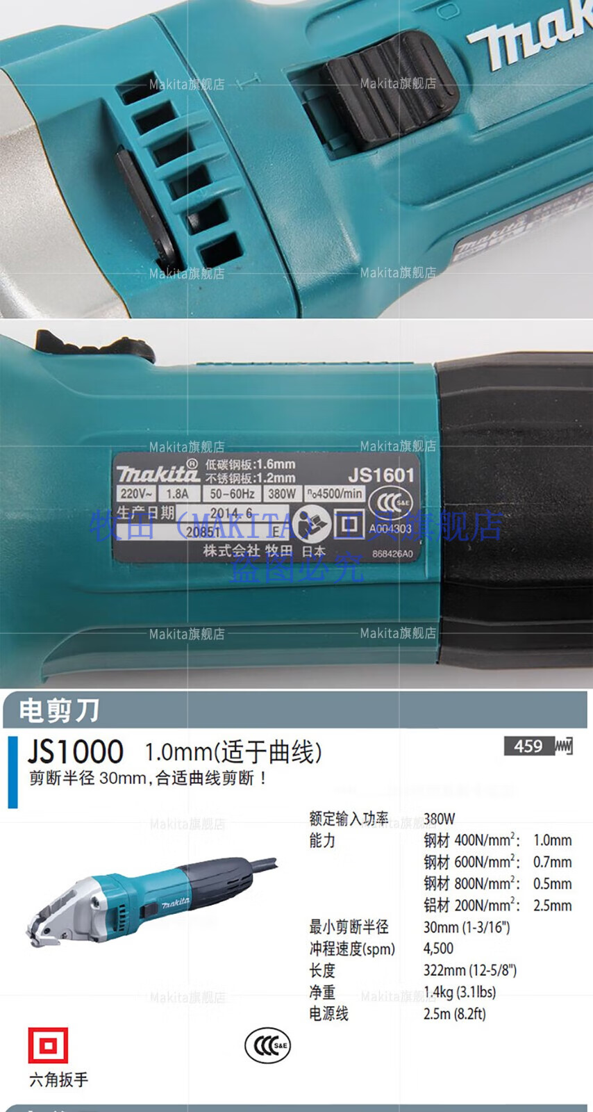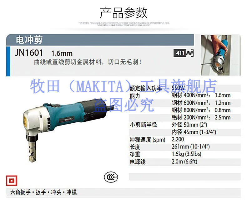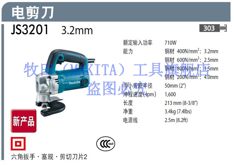 Makita imported from Japan Makita electric scissors electric scissors electric punching shear iron sheet digging hardware power tool JS3201 Makita JS3201 electric scissors 3.2mm