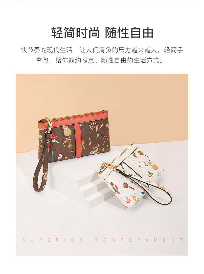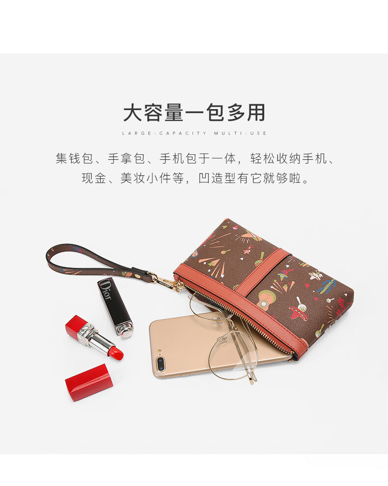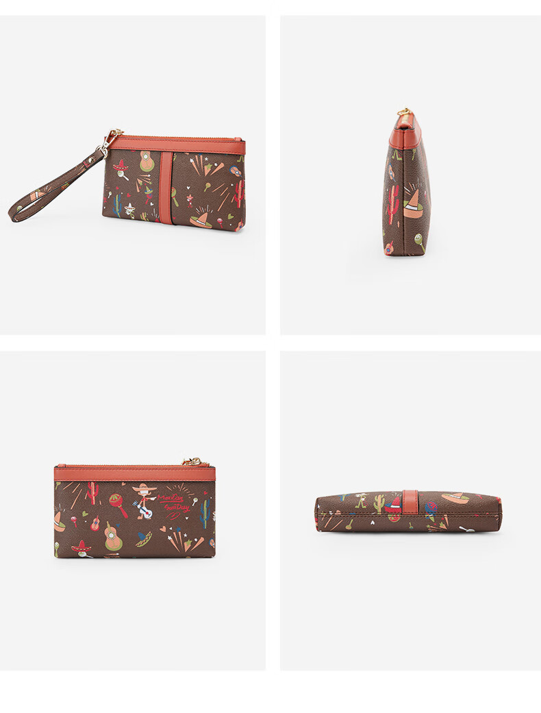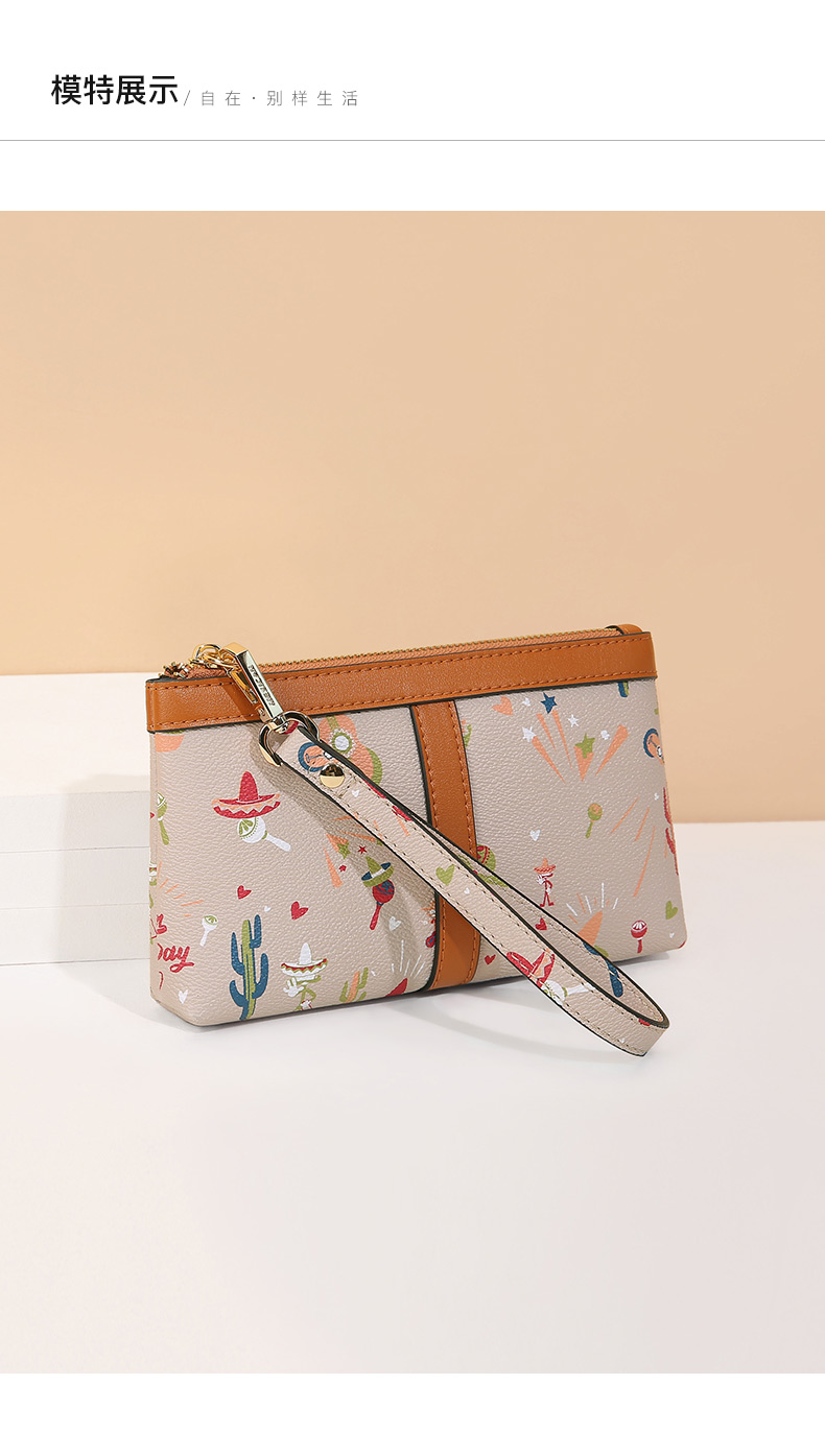 Scarecrow Wallet Women's Long Zipper Mobile Phone Bag Clutch Personalized Women's Handbag Coin Purse Cartoon Print Wallet Khaki