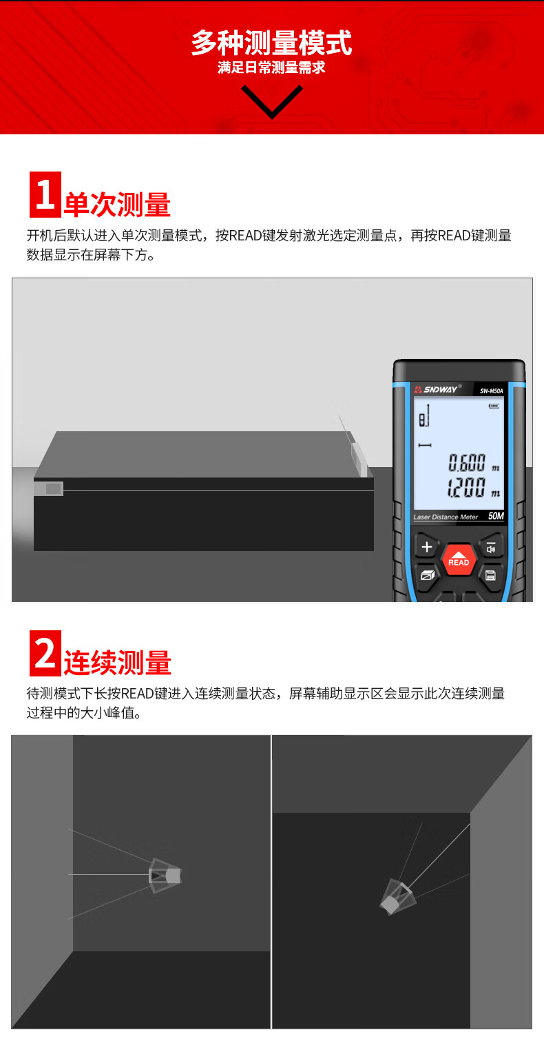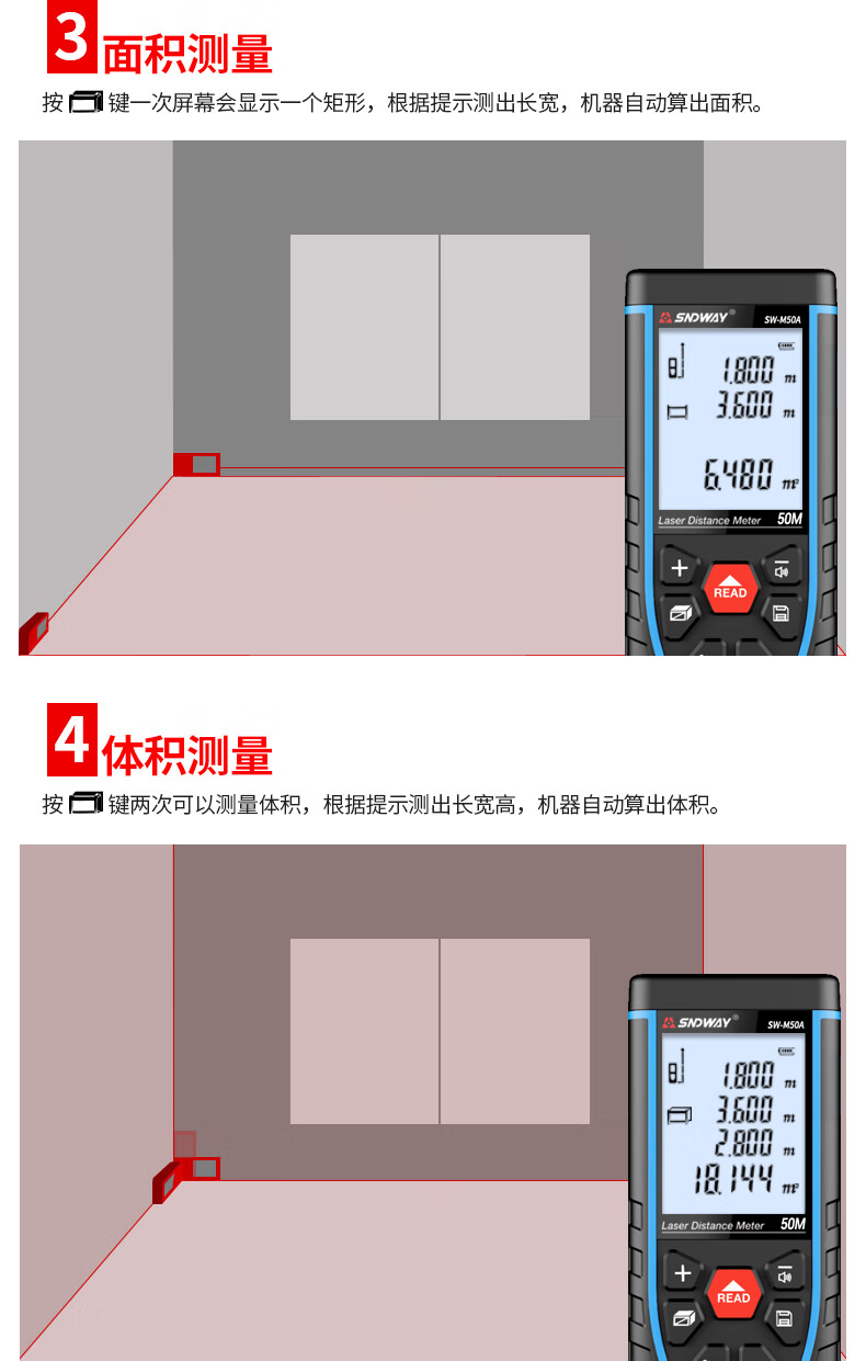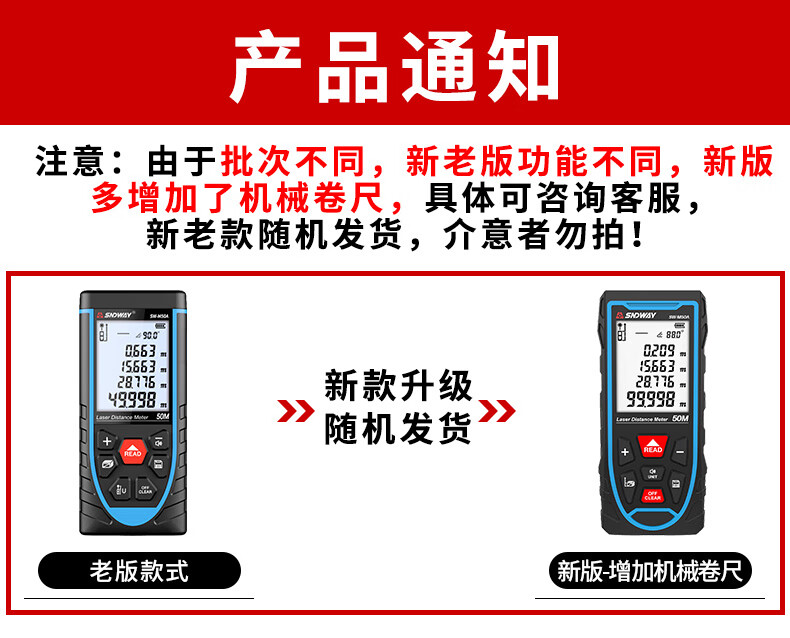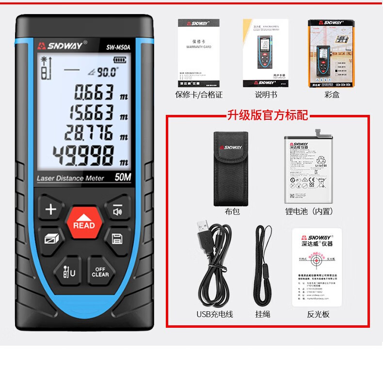 SNDWAY Laser Distance Meter Rechargeable Infrared Room Measurement Household Electronic Ruler Measurement Tool Indoor Distance Meter SW-M70A (Indoor Model, Rechargeable Voice Model)