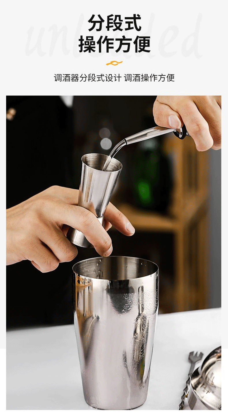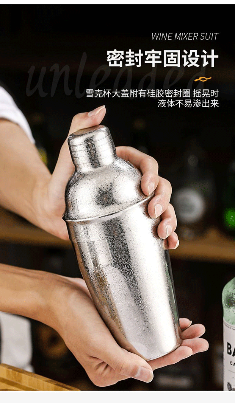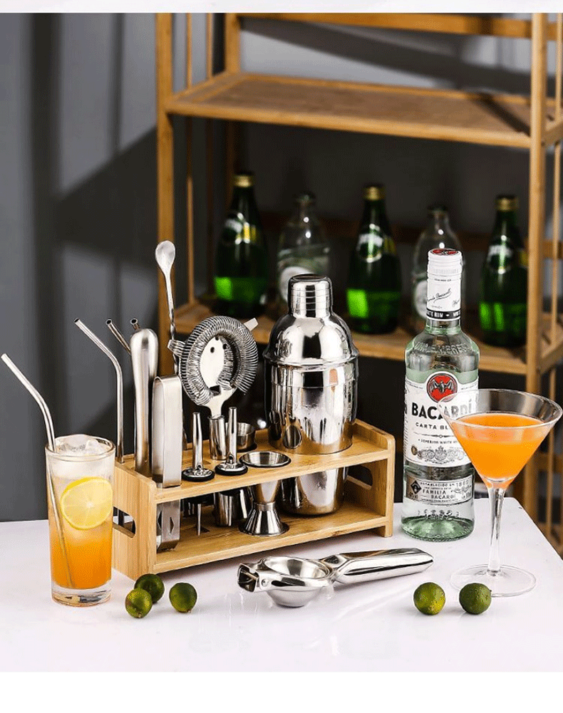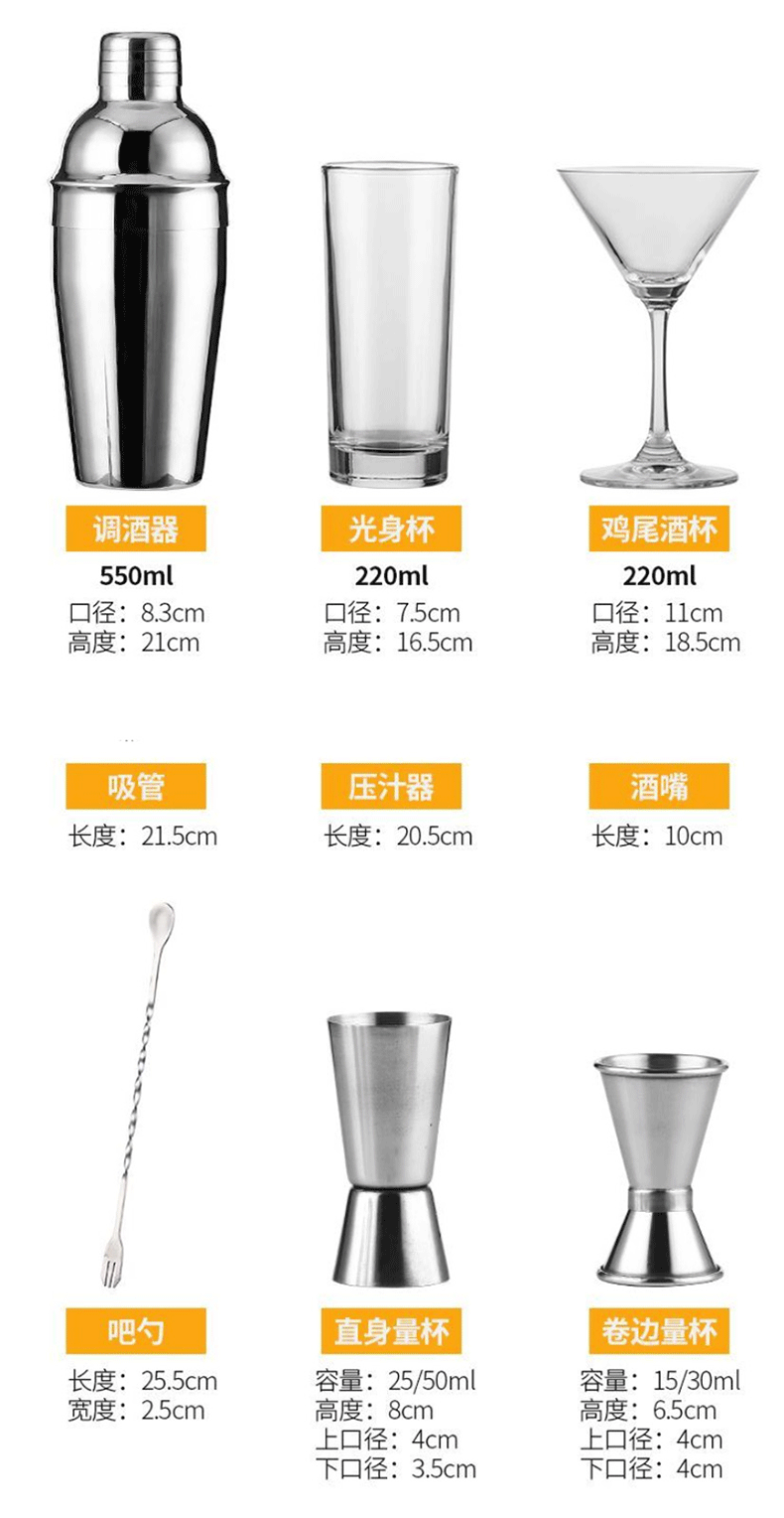 Belushi stainless steel mixer set cocktail shaker shaker glass bartending tool hand-made lemon tea milk tea tool Japanese shaker 15-piece set (wooden frame)