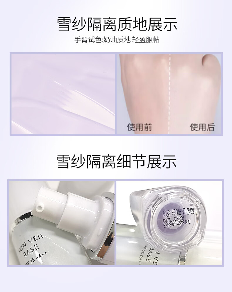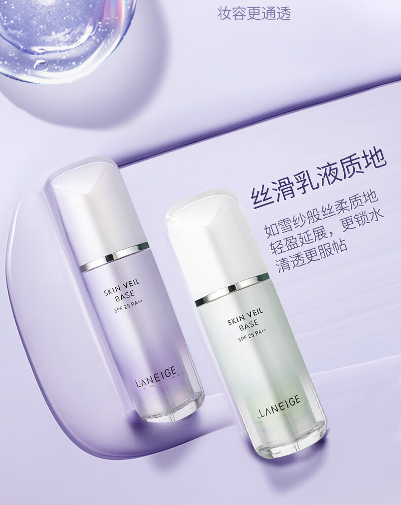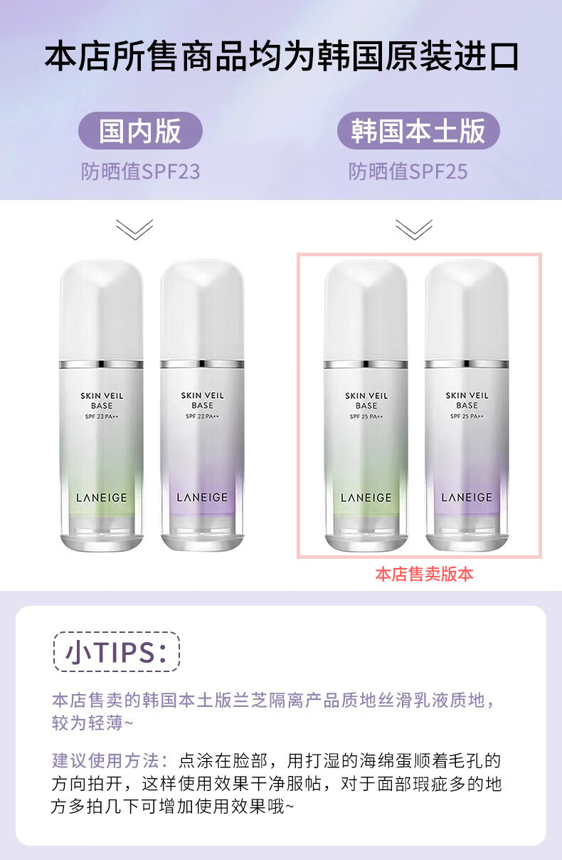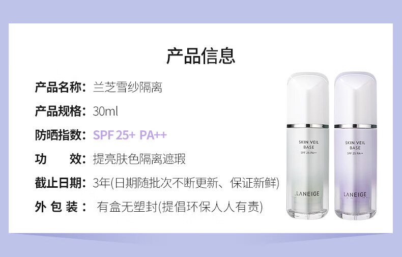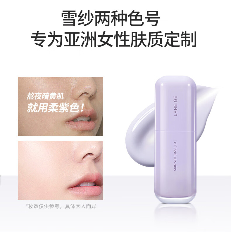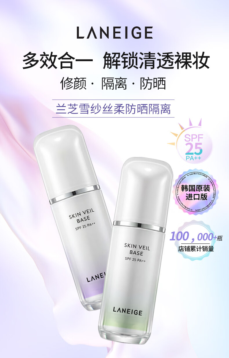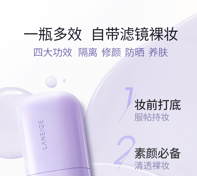 LANEIGE Isolation Cream Snow Silky Sunscreen Isolation Milk for Men and Women before Makeup to Brighten Skin Color New Year's Gift No. 40 Purple 30ml Yellowish Skin SPF25PA++