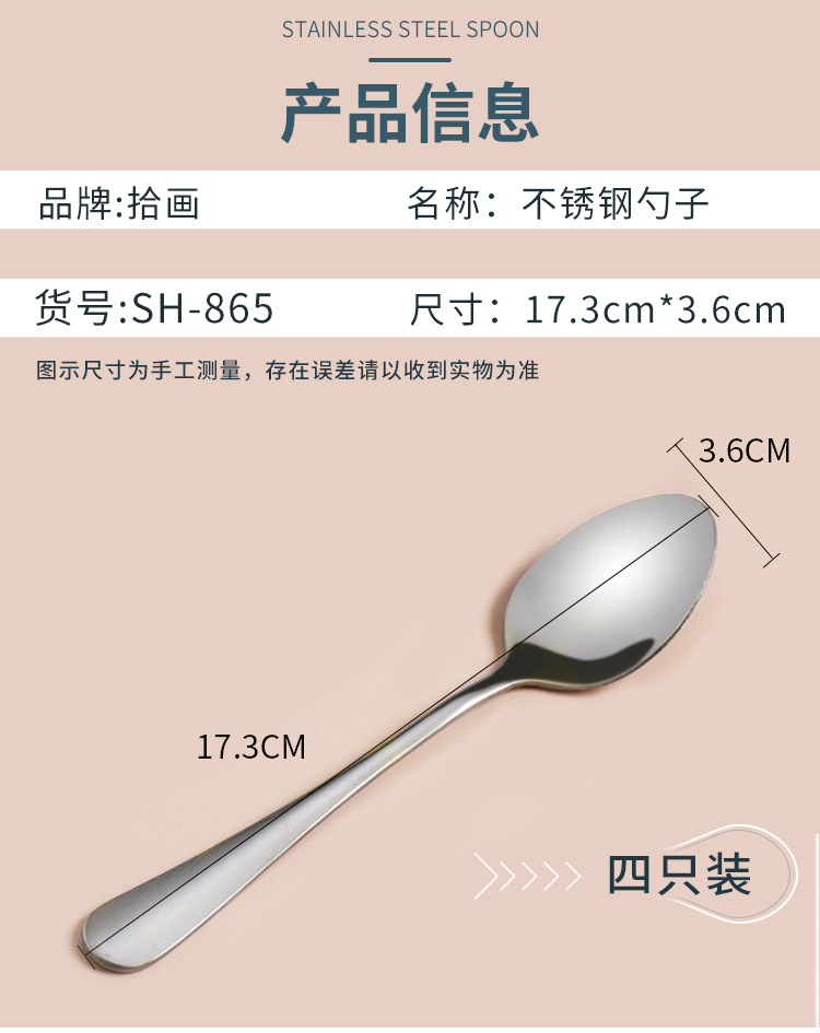 Pick-up painting stainless steel spoon Western food spoon ice cream spoon main meal spoon rice spoon 4 pieces SH-865