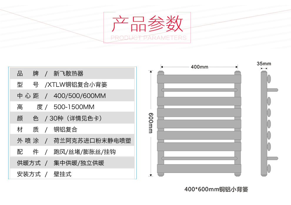 Xinfei small basket radiator bathroom copper-aluminum composite centralized household water heating radiator XTLW 400X500 400x600