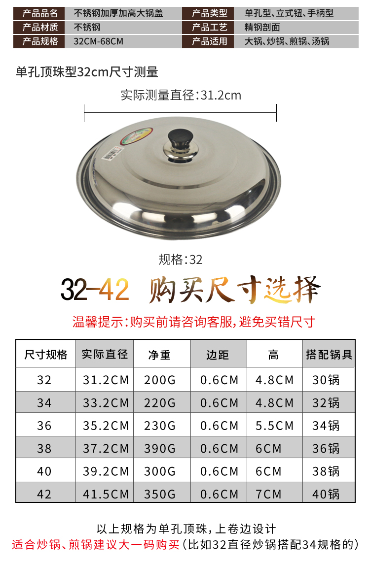 Star Emperor Yueting Steamer Large Iron Pot Lid Stainless Steel Heightened Lid Vertical High Arch Cauldron Lid 34 38 40 42 44 Diameter 31cm