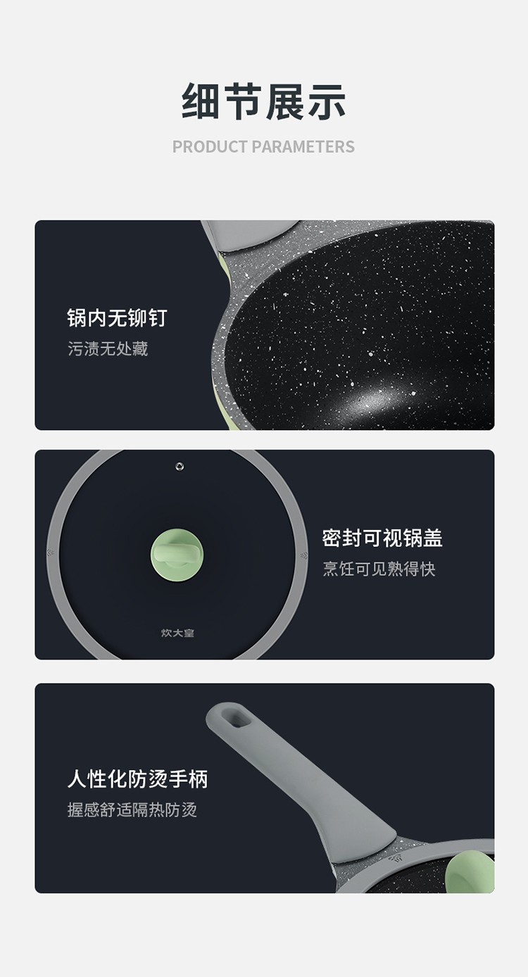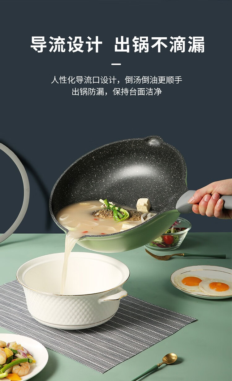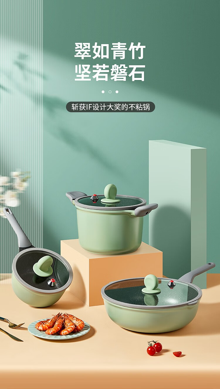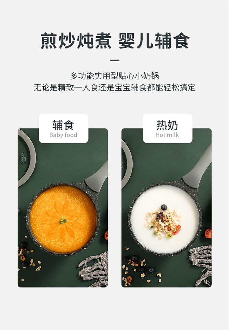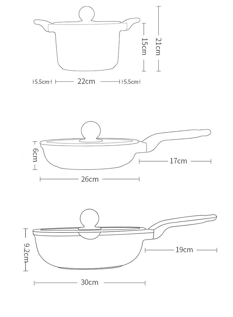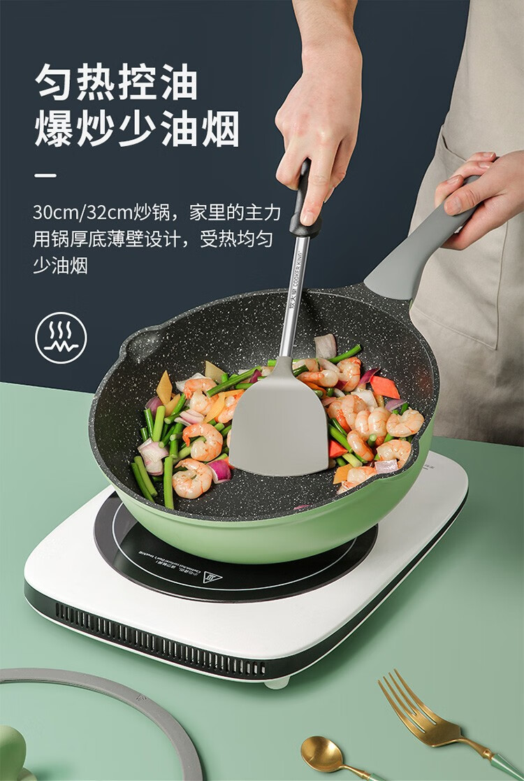 COOKER KING non-stick pot set, medical stone color wok and pan, special wok for gas induction cooker, wok, frying pan, milk pot combination, 3-piece set