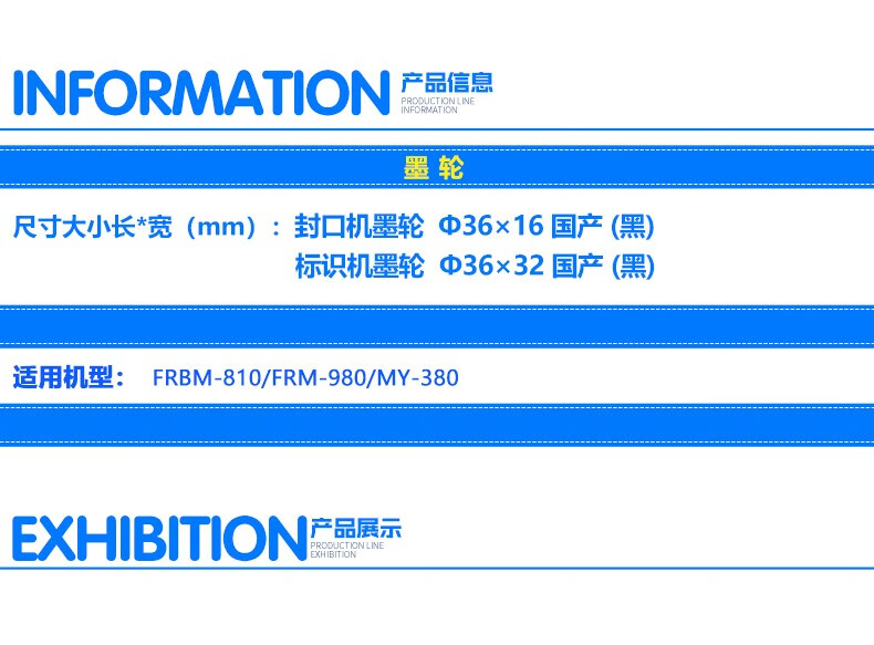 Sealing machine original ink wheel accessories 810/980/1010/1120/1370 marking machine MY-380 series 36 16MM (black sealing machine) 10 pieces