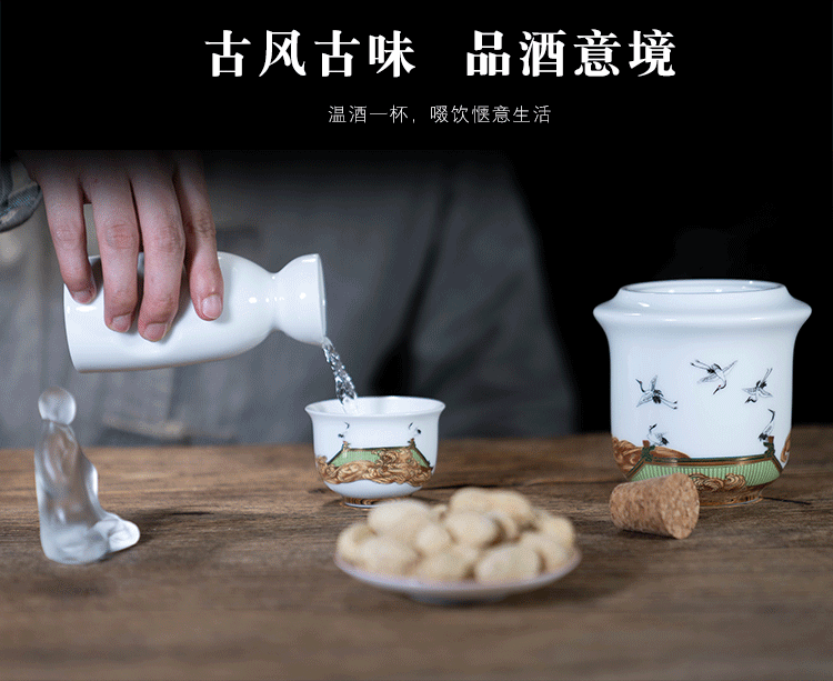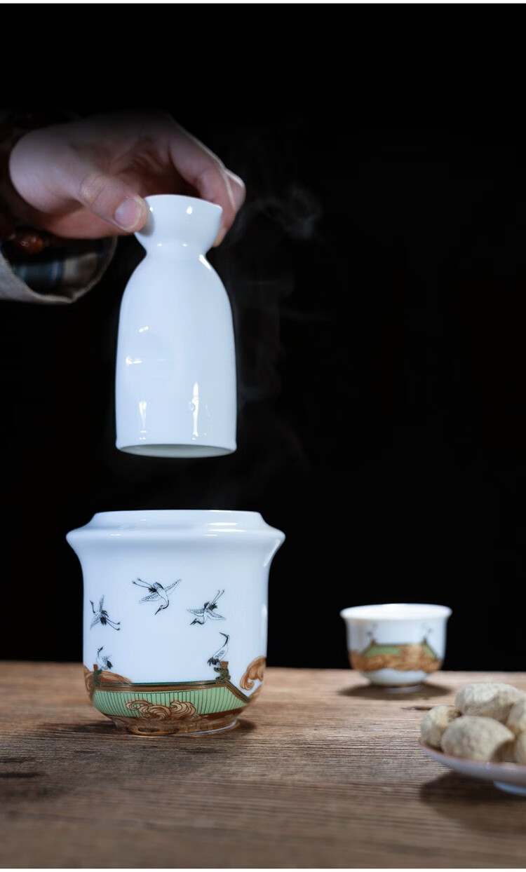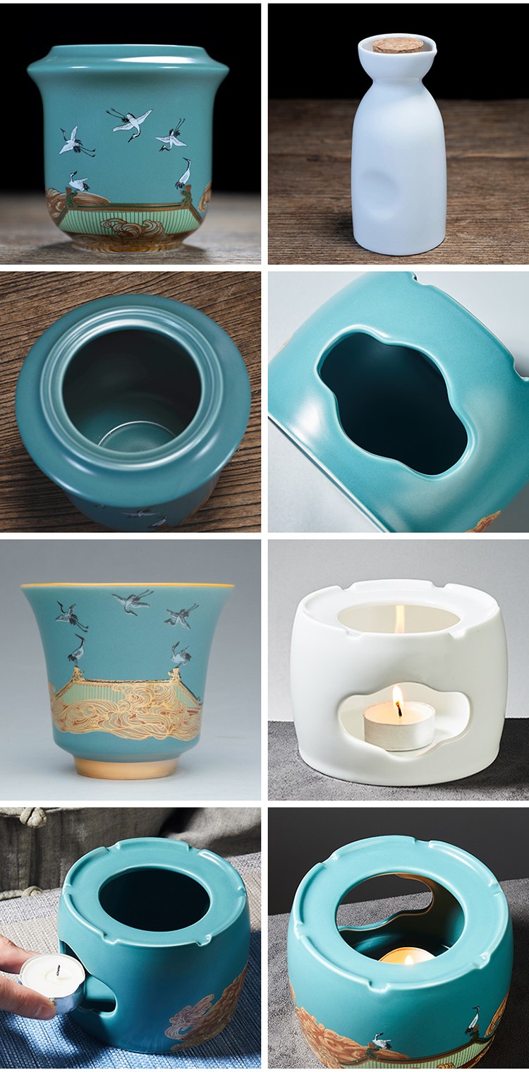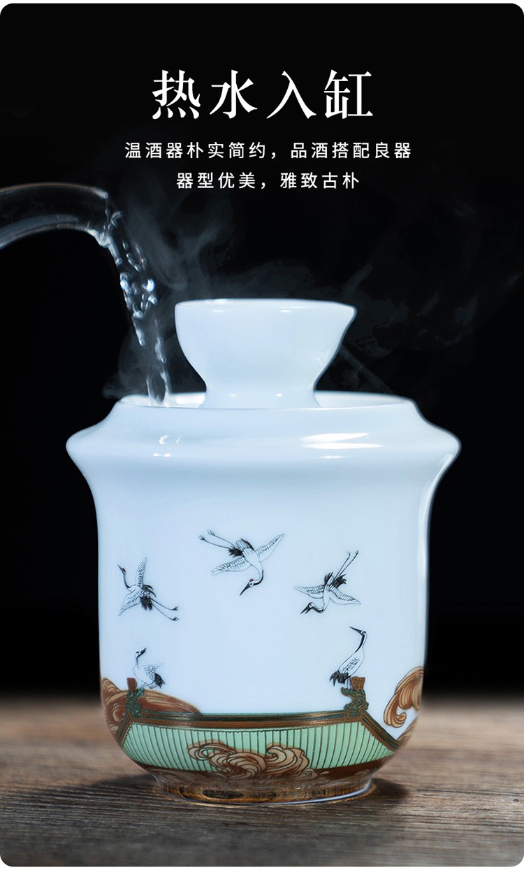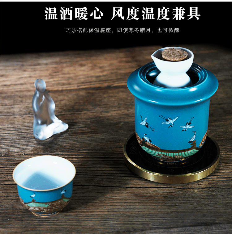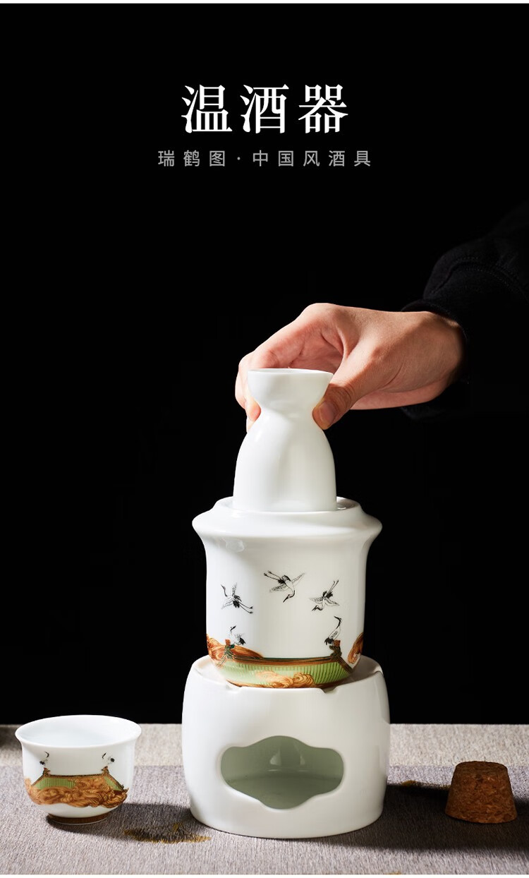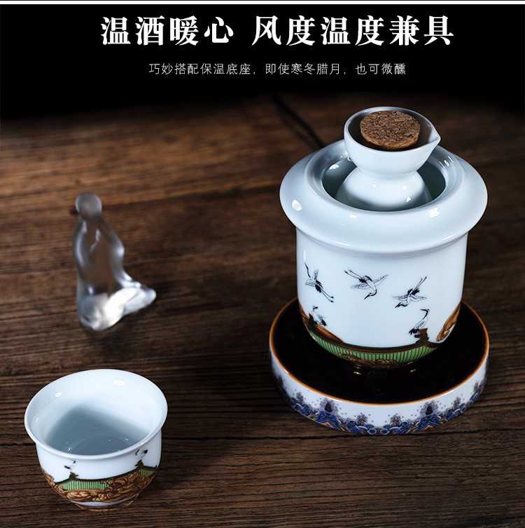Rongshantang Ruihetu wine warmer, old-fashioned Chinese ceramic electric heating kettle, white wine cup, Chinese style wine set, wine cup, white bottom Ruihetu cup - set of four