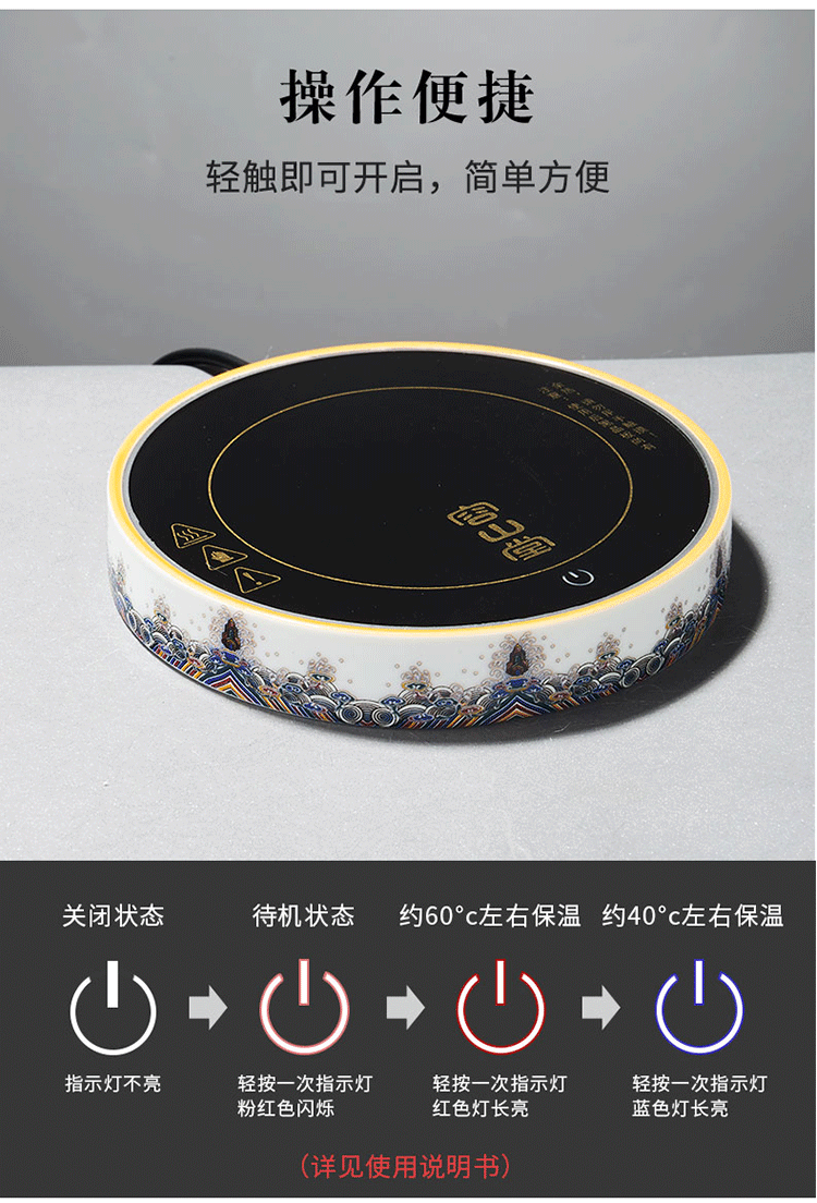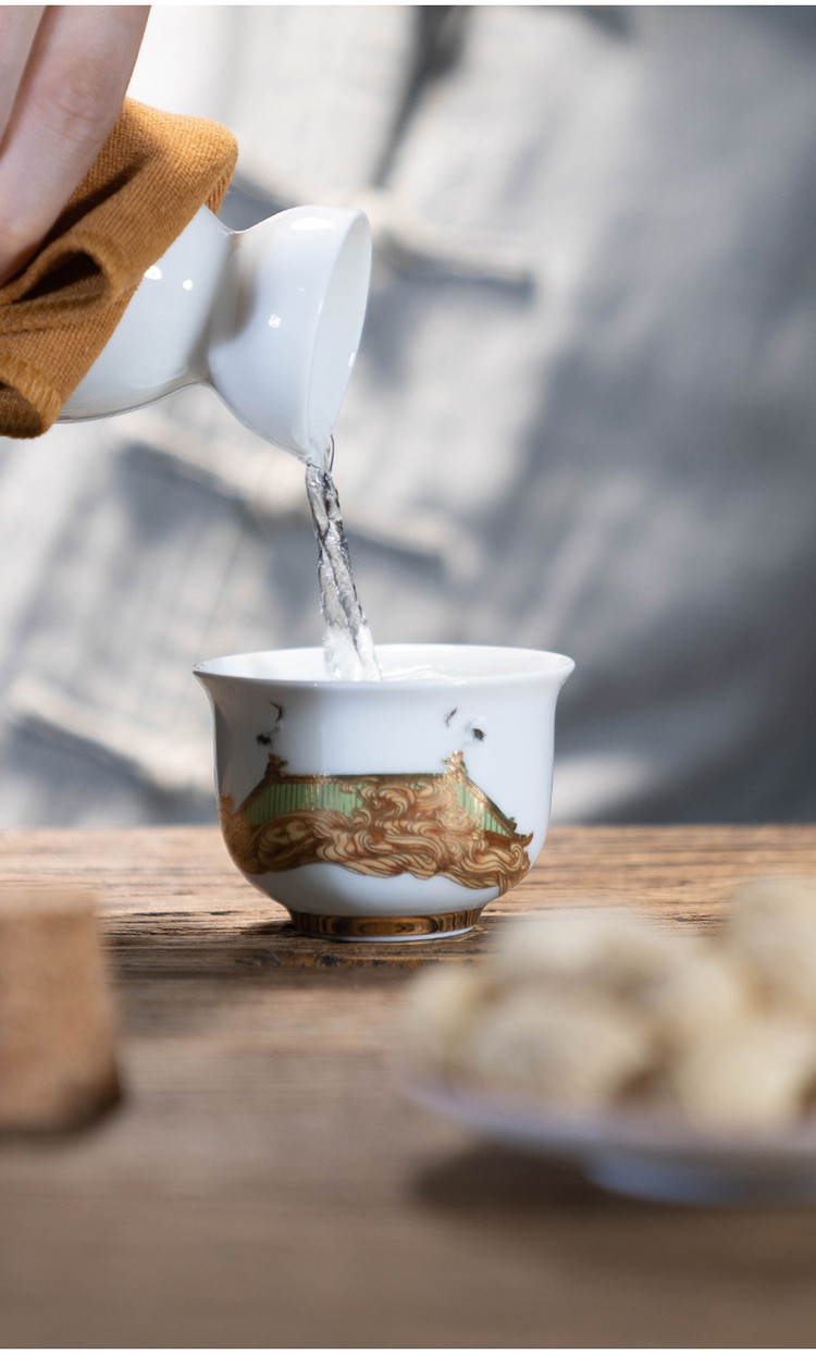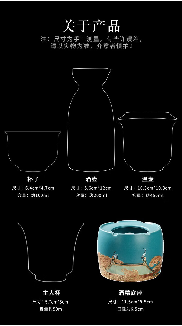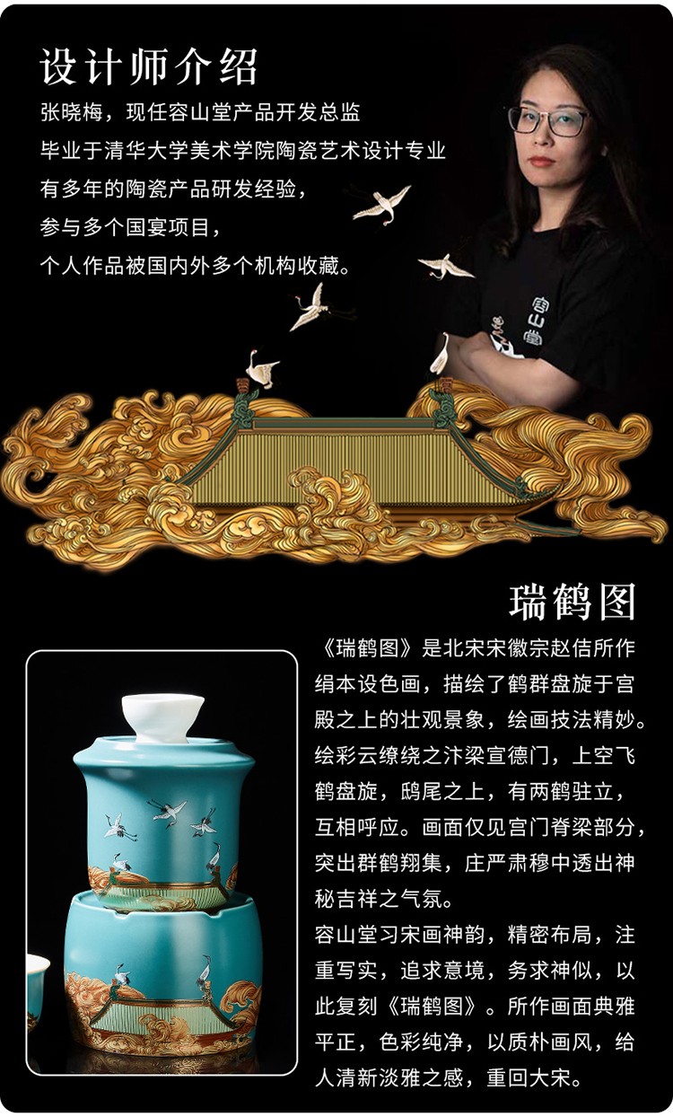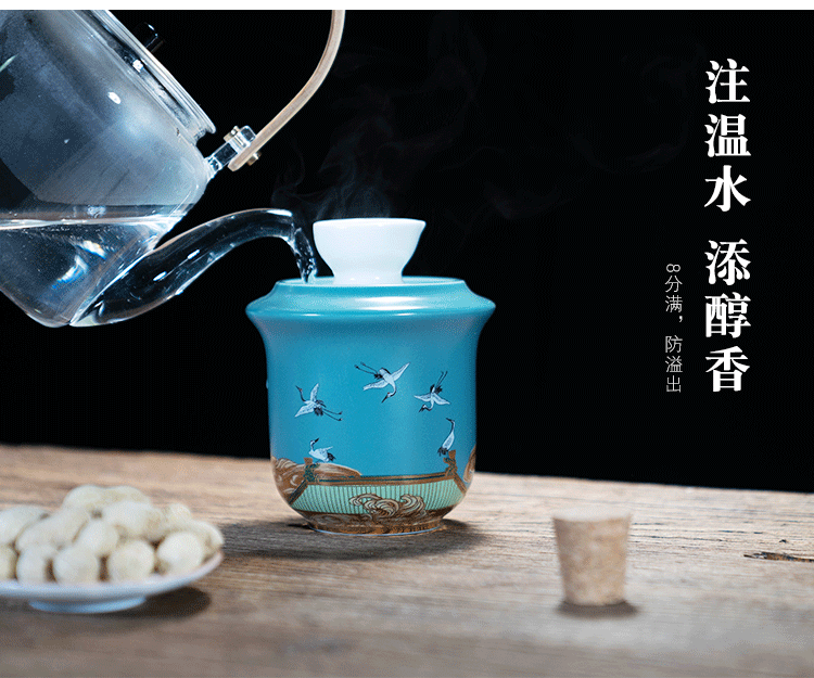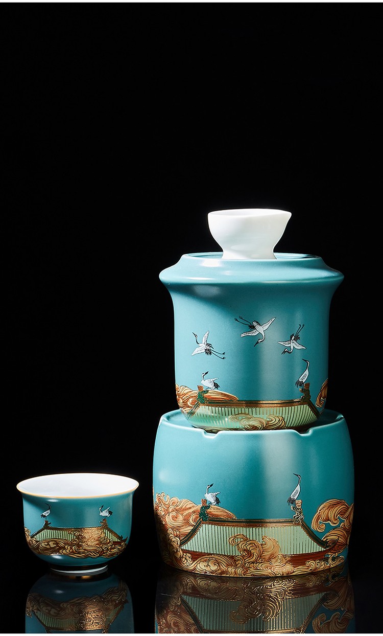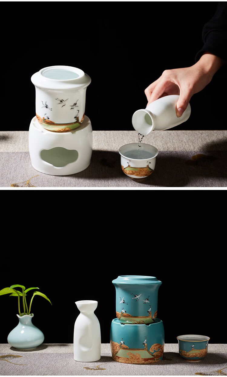 Rongshantang Ruihetu wine warmer, old-fashioned Chinese ceramic electric heating kettle, white wine cup, Chinese style wine set, wine cup, white bottom Ruihetu cup - set of four