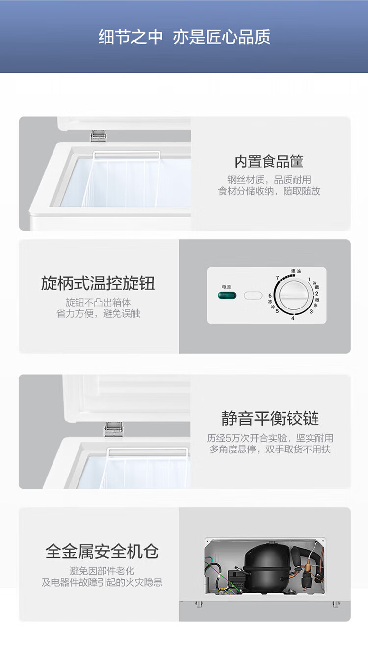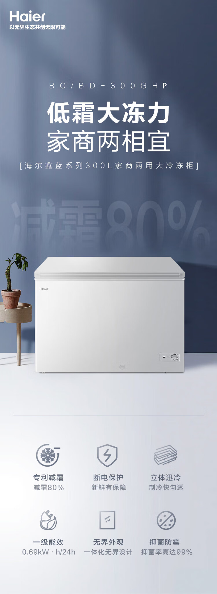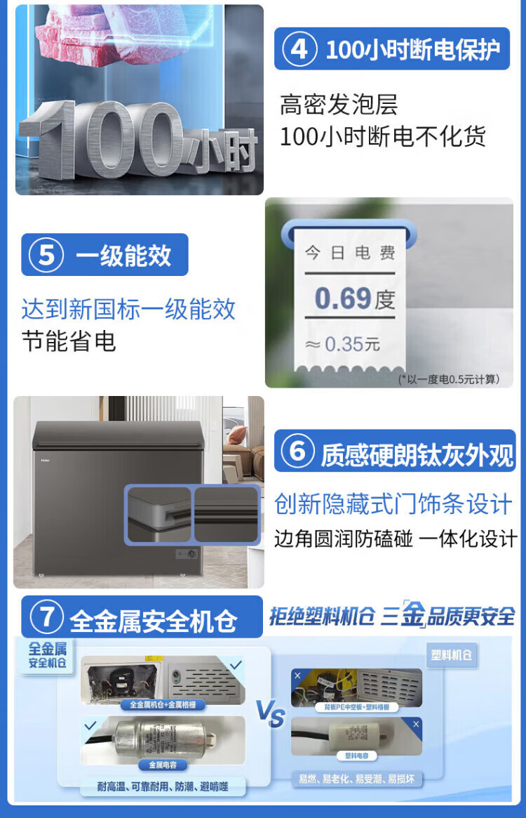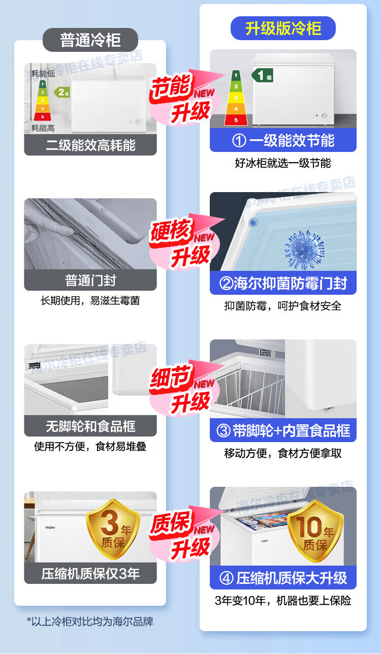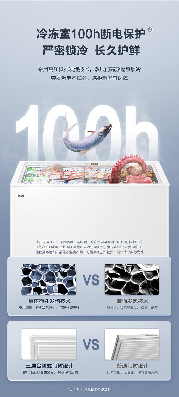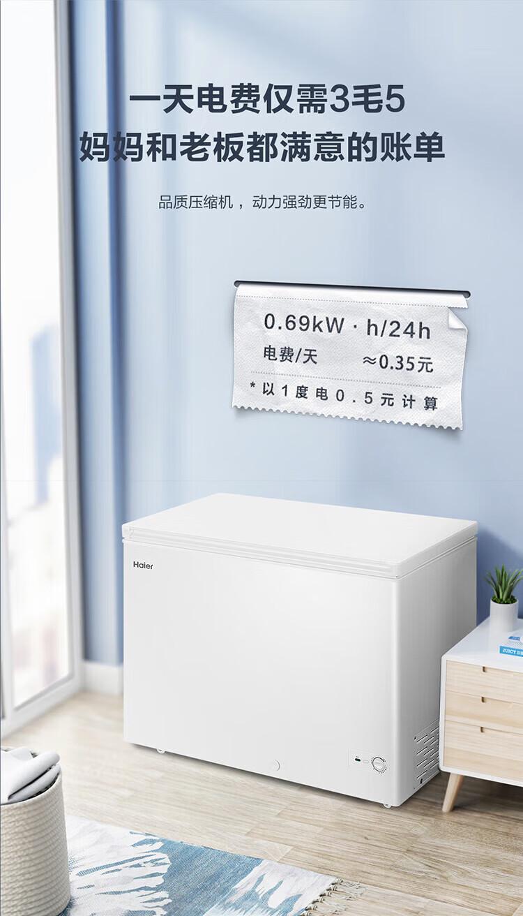 Haier Freezer Household Single Temperature Frozen Meat Horizontal Small Freezer Refrigerated Freezer Level 1 Energy Efficiency Freezer Freezer Freezer Commercial Freezer Freezer Large Capacity Refrigerator Refrigerator 201L | Level 1 Energy Saving | Seven-speed Variable Temperature | Ice and Snow White 201L