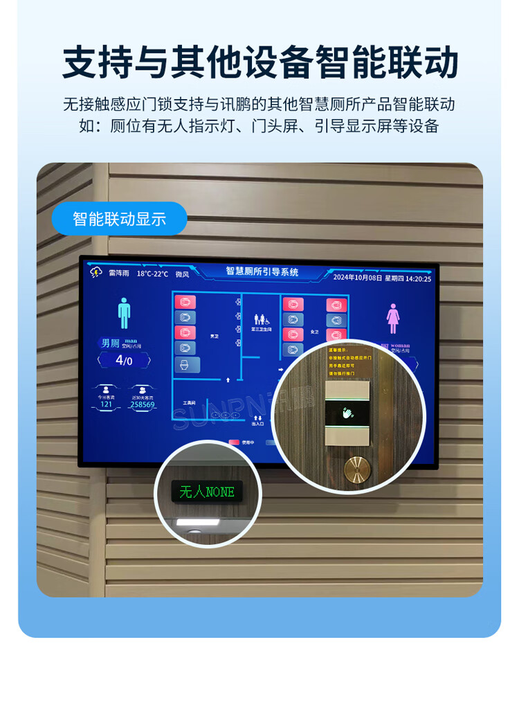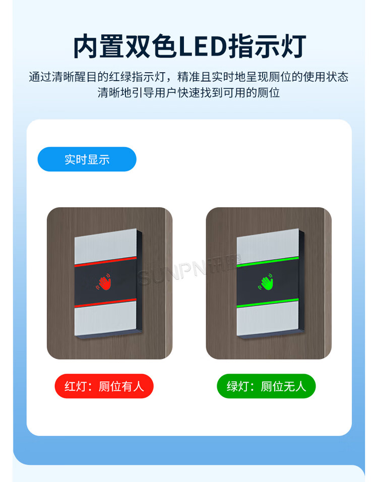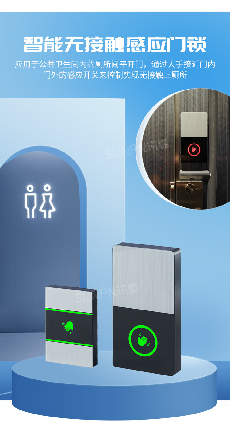 SUNPN Xunpeng toilet seat non-contact smart sensor door lock squatting position occupied or unoccupied door lock door bolt sensor switch signal output control indicator light partition stainless steel lock buckle non-contact sensor door lock