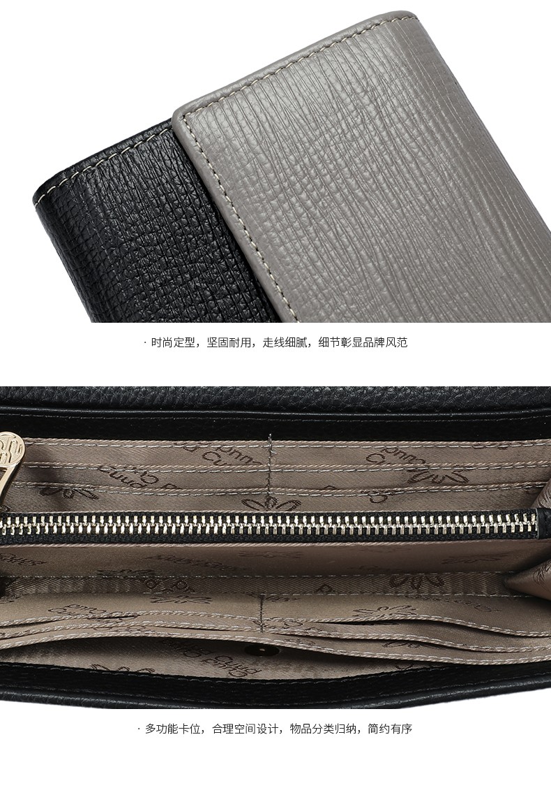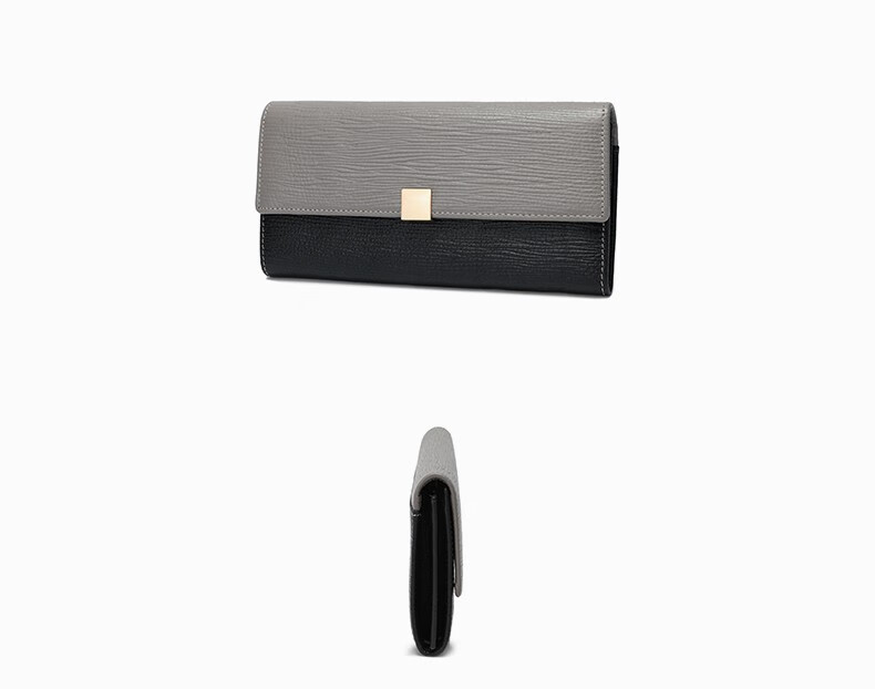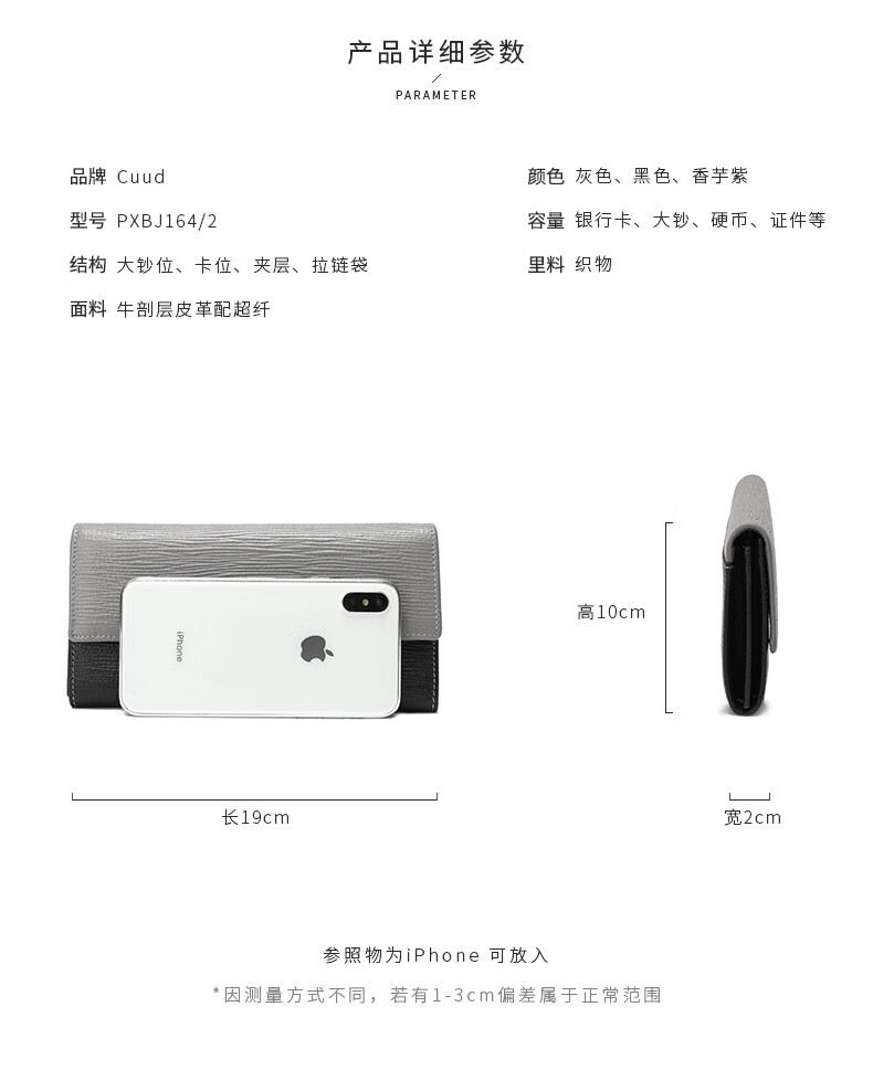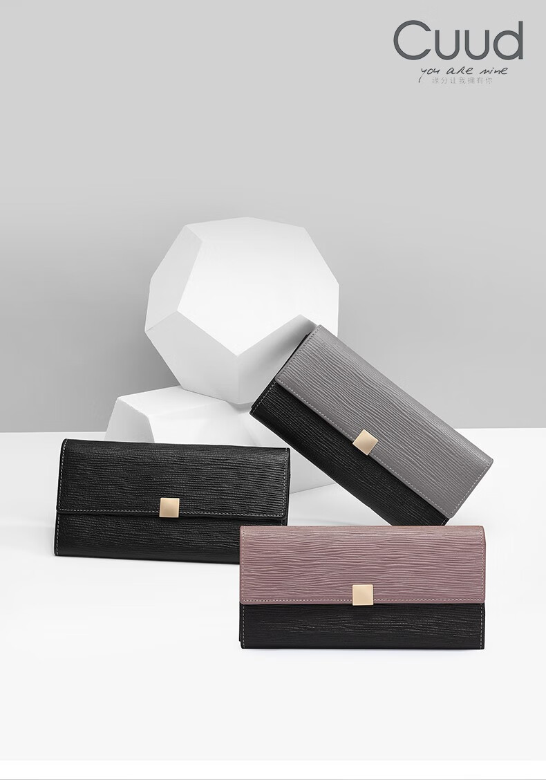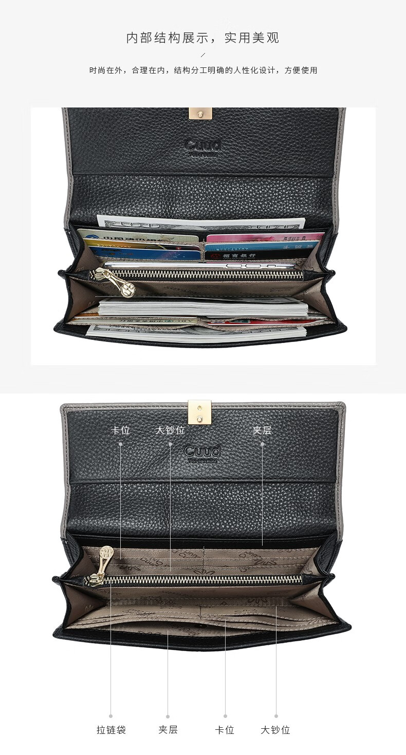 Cuud brand wallet women's long handbag coin purse large capacity clutch leather wallet birthday gift for girlfriend gray